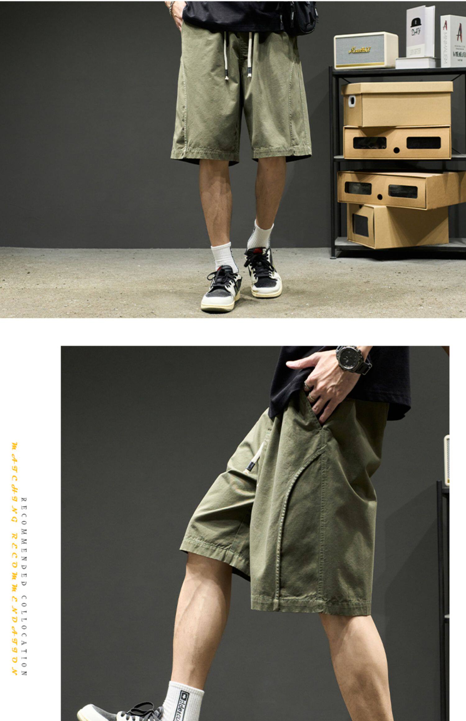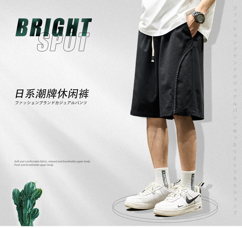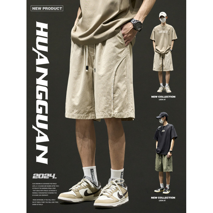 山系短褲男生夏季新款純色工裝五分褲美式潮牌簡約日系休閒褲子男