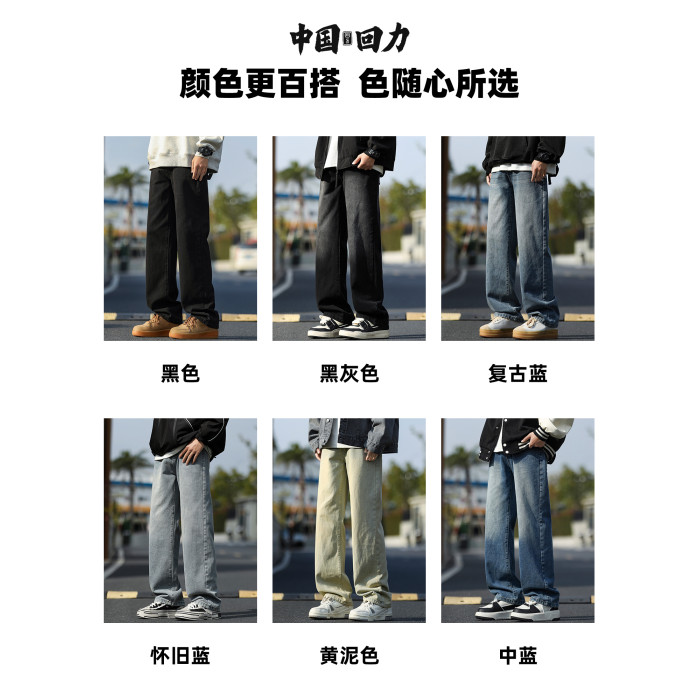 廻力加絨加厚黑色牛仔褲男士秋冬季寬鬆直筒男生褲子濶腿休閒長褲