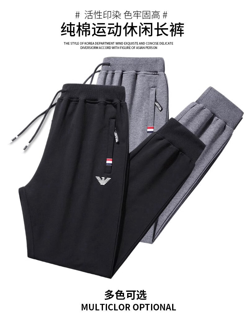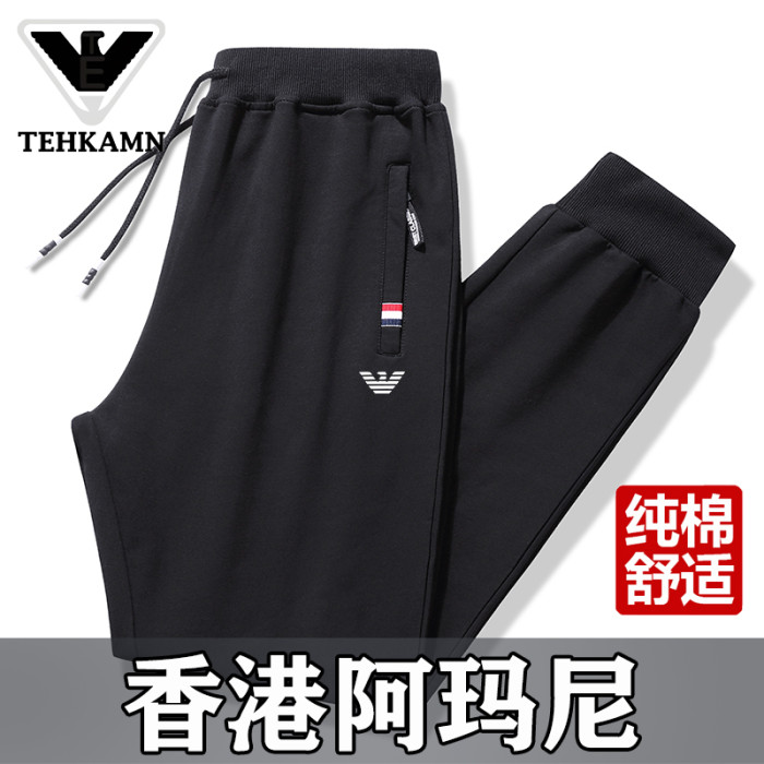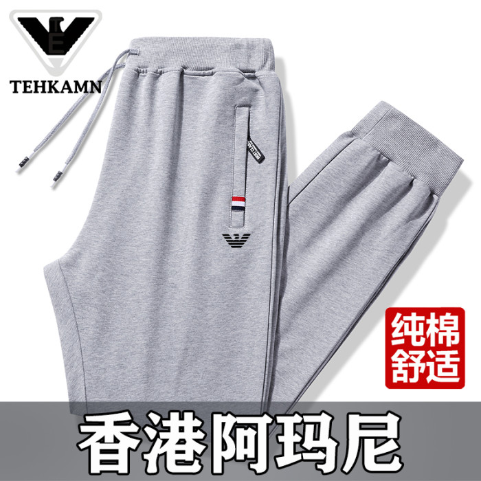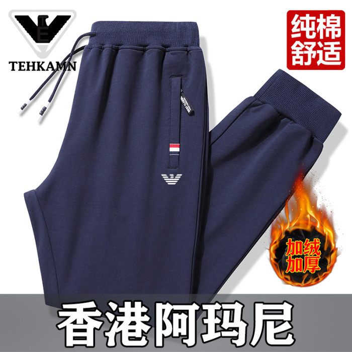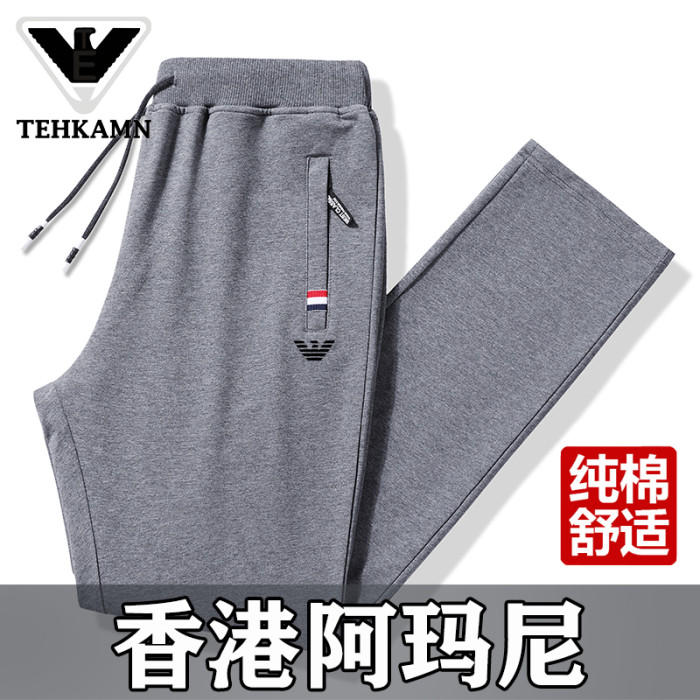 AMN品牌純棉運動休閒褲男秋冬天新款爸爸寬鬆大碼直筒束腳長褲子