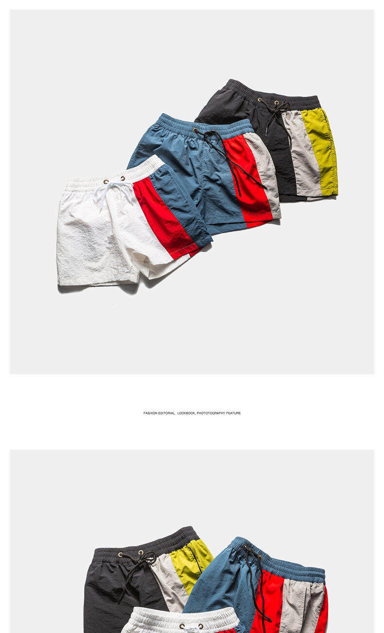 高級感撞色情侶三分短褲男款帶內襯家居休閒輕薄速乾運動沙灘泳褲