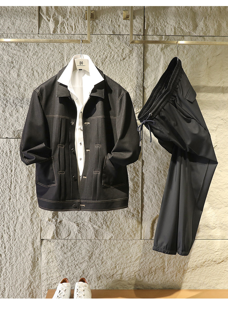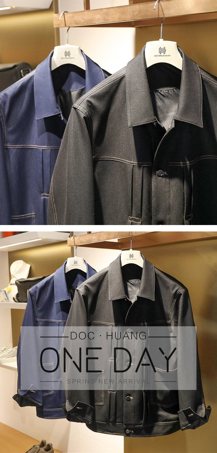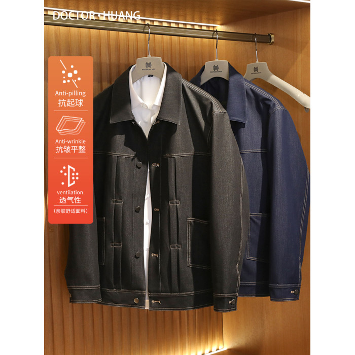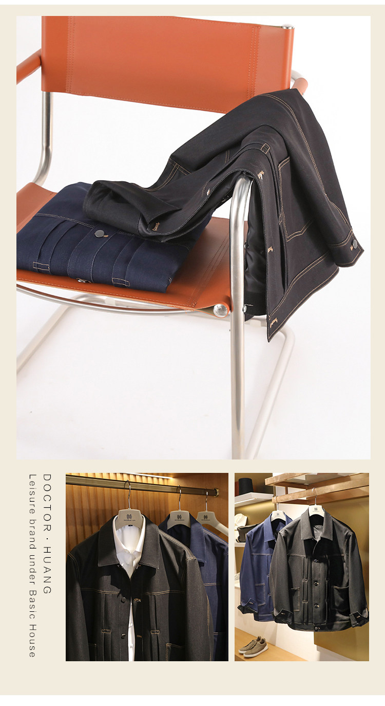 設計師限定2025早春新款男士商務休閒明輯線水洗彈力牛仔外套9767