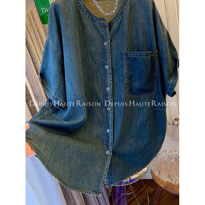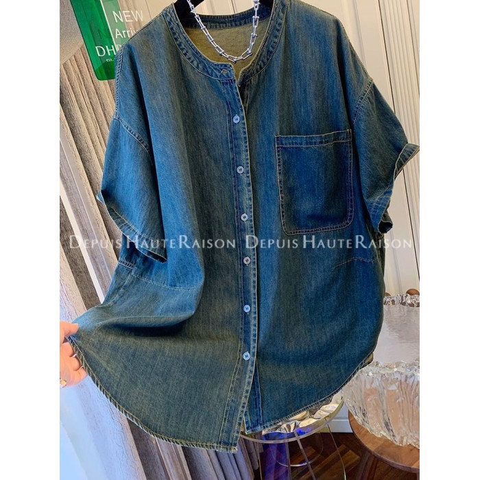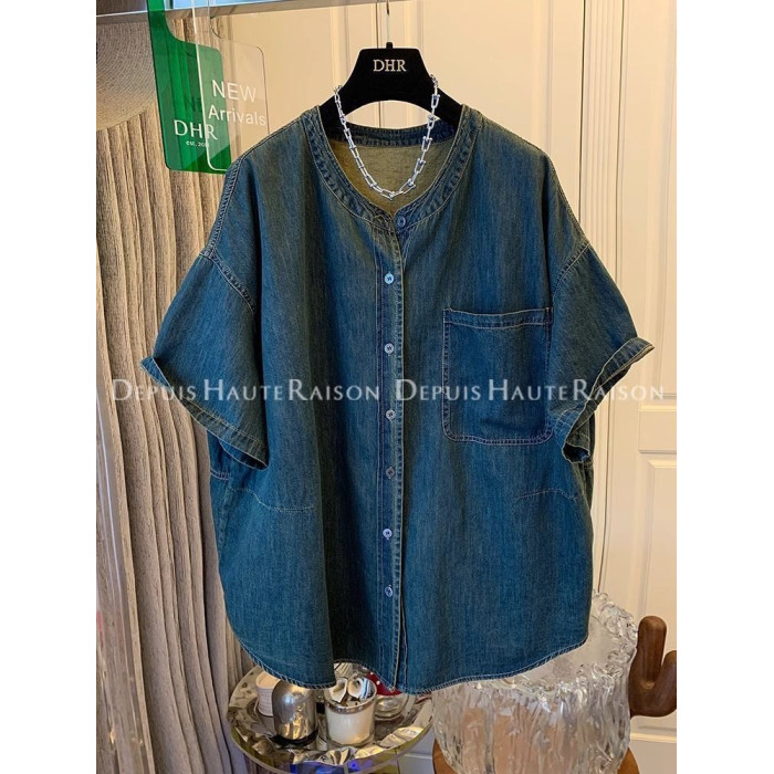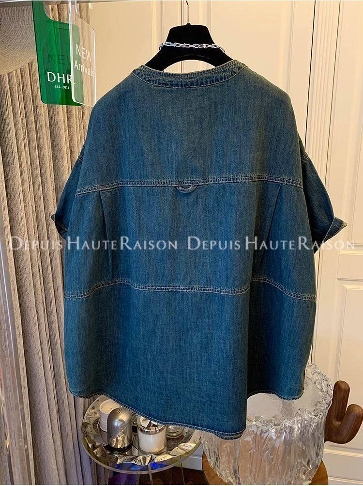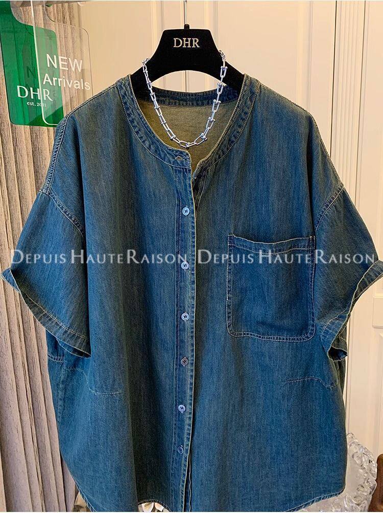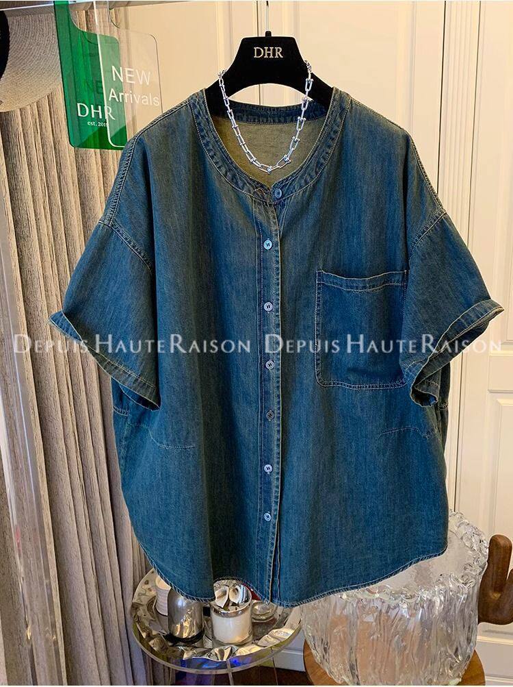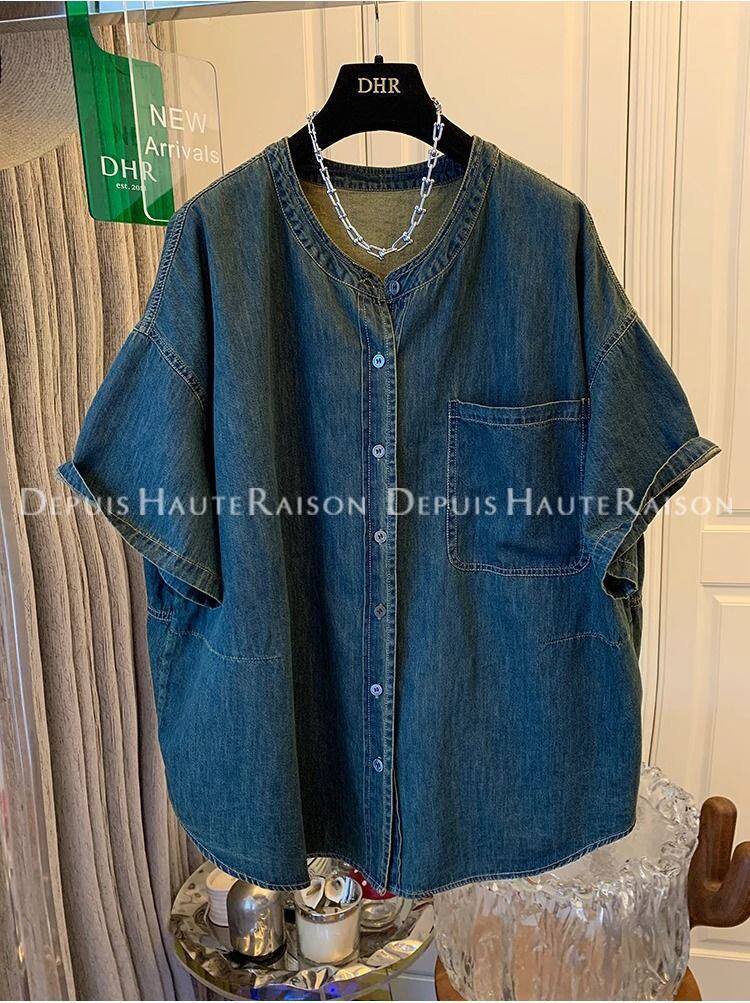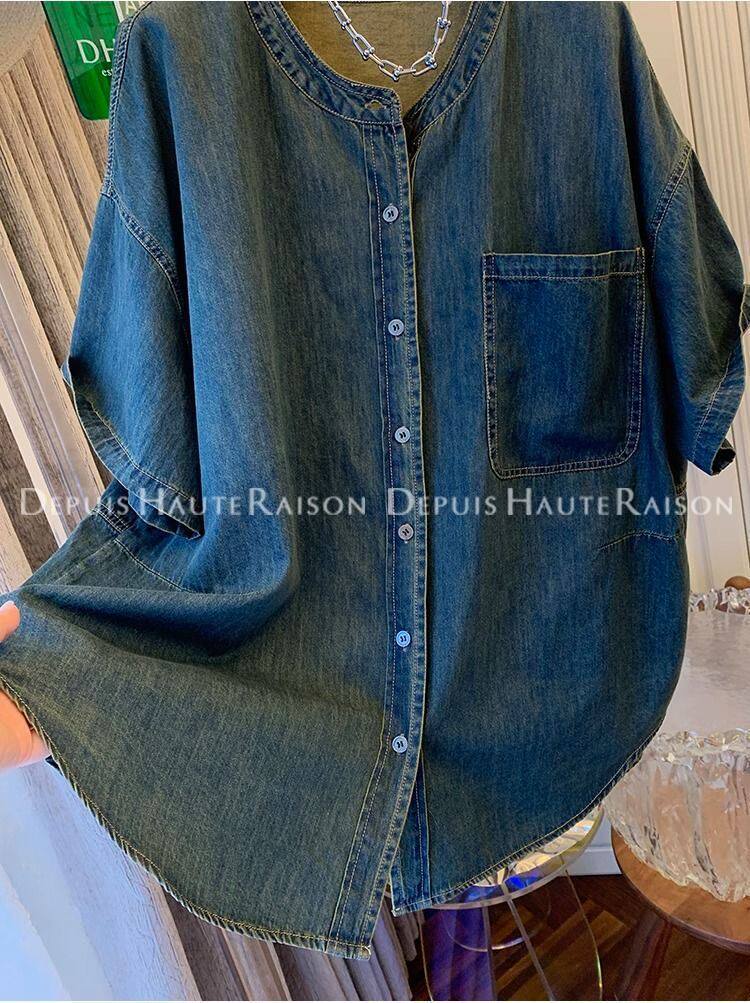 300斤大碼超好看獨特復古襯衫t恤男女夏季寬鬆氣質2024牛仔外套潮