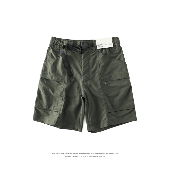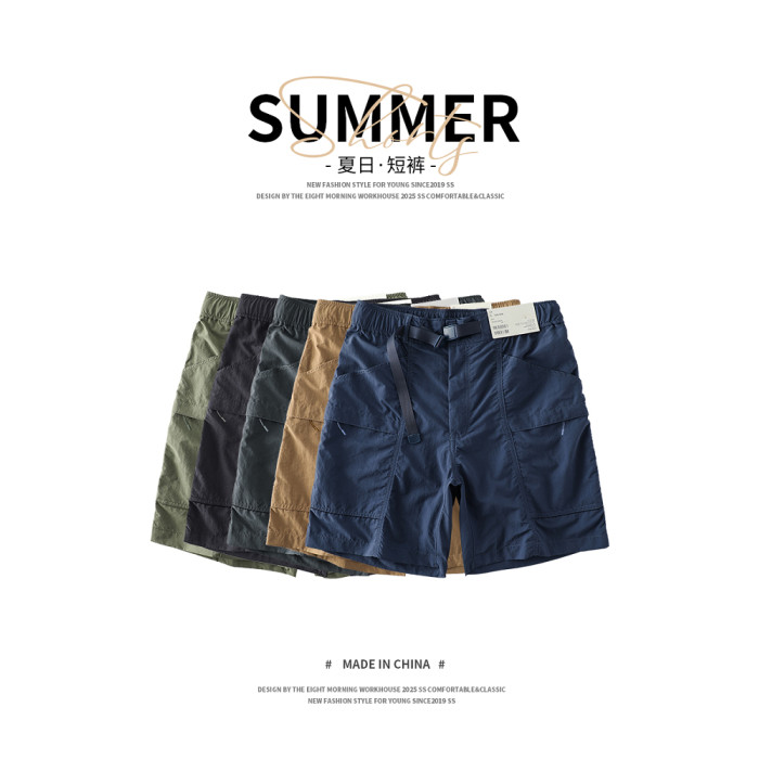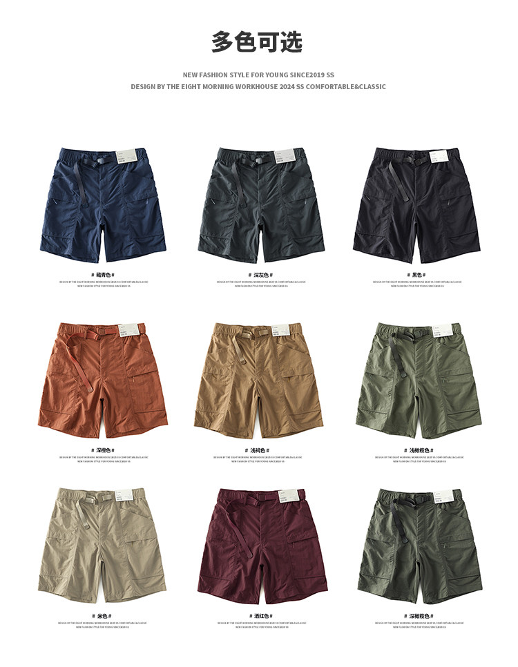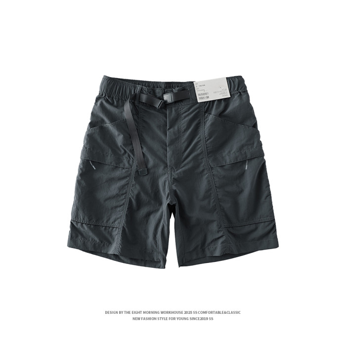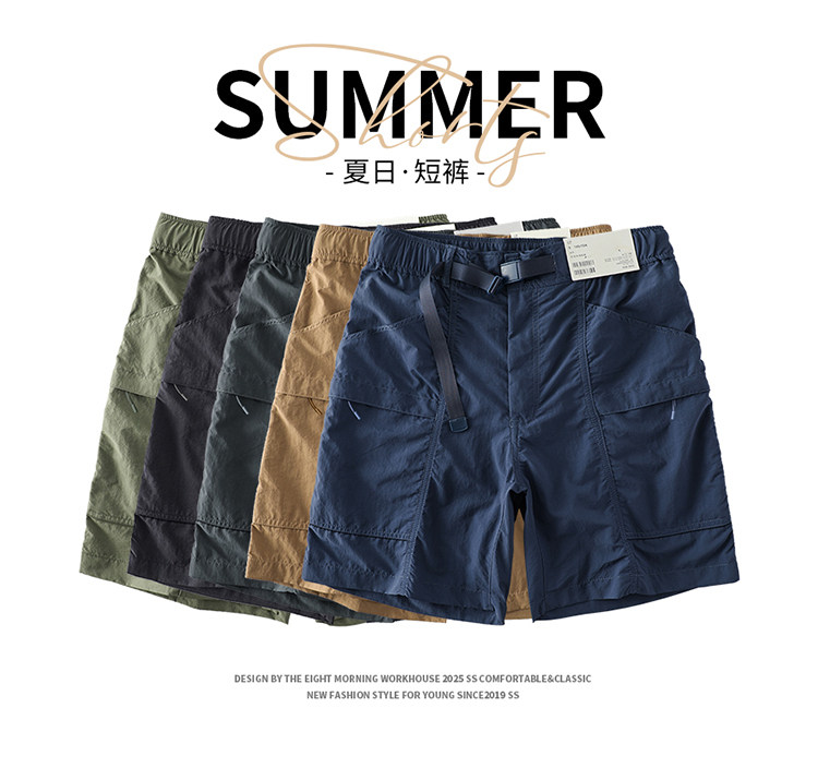 夏季戶外工裝機能短褲男沙灘褲速乾輕薄中褲女寬鬆五分直筒休閒褲