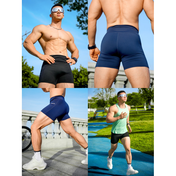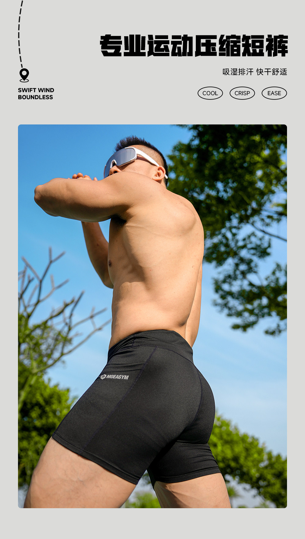 墨立方馬拉松跑步深蹲短褲健身訓練男2026年夏緊身速乾三分壓縮褲