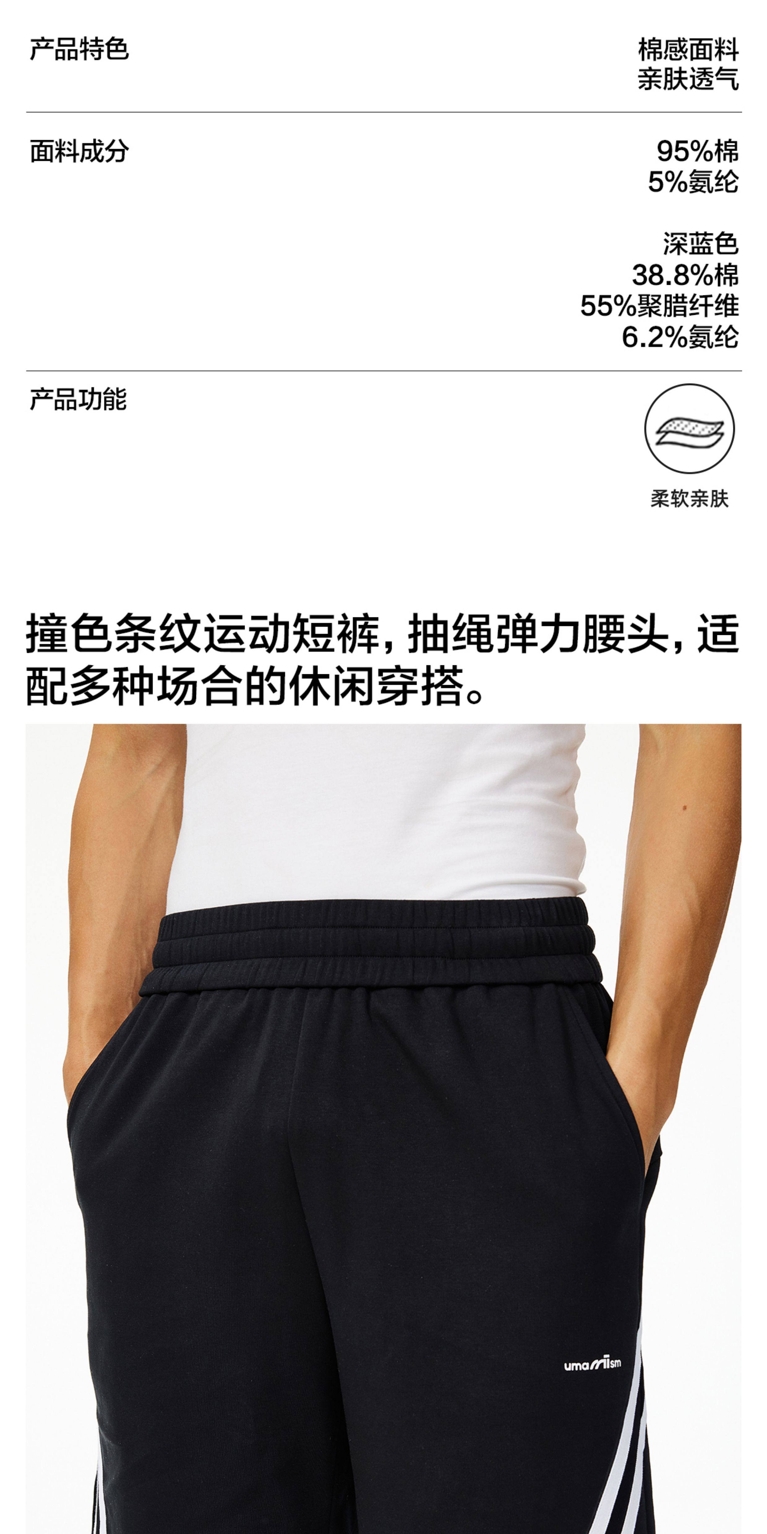 UMAMIISM 有茂密聲 25SS 復古撞色條紋抽繩彈力親膚運動休閒短褲