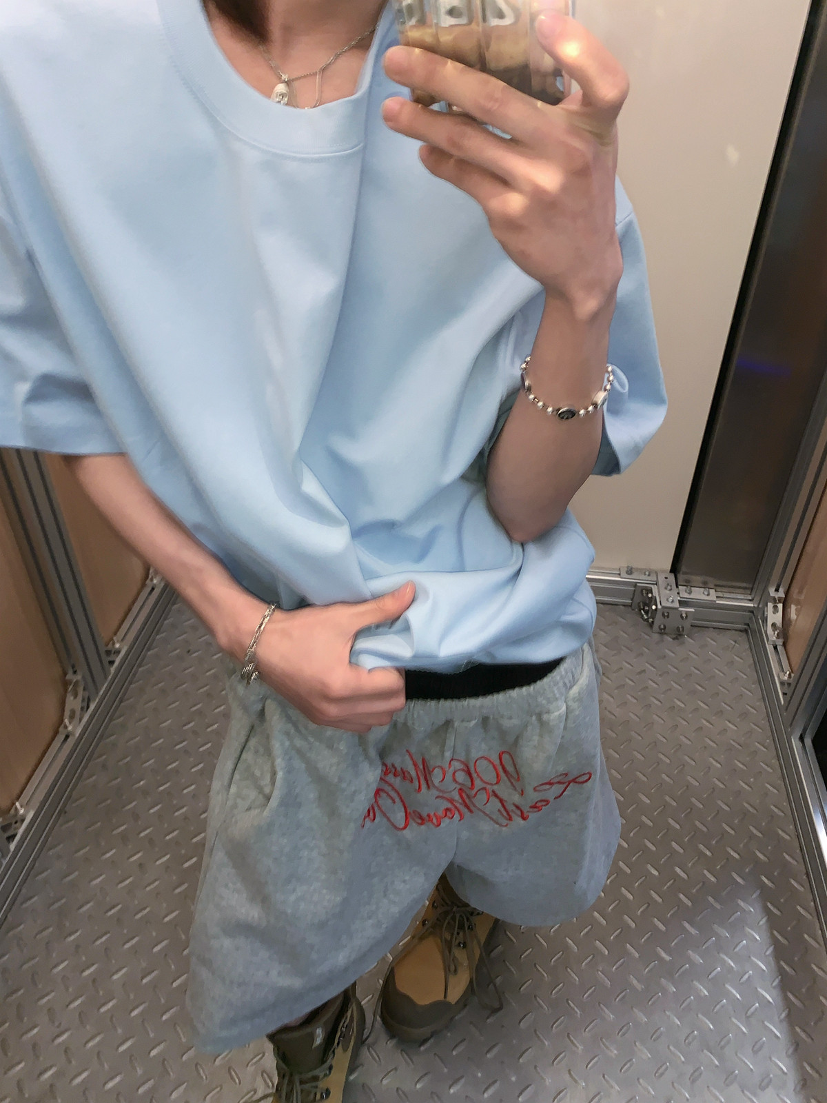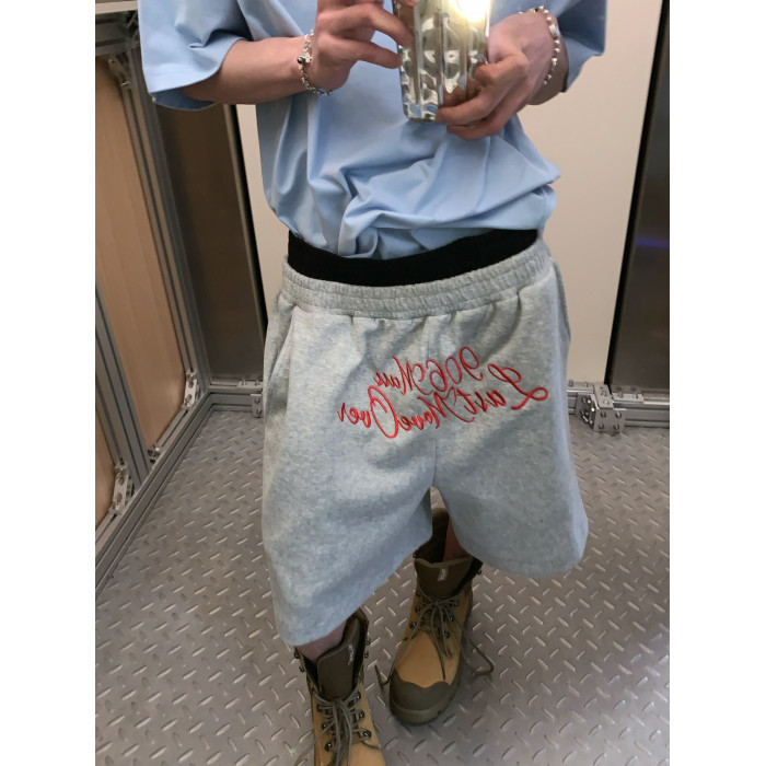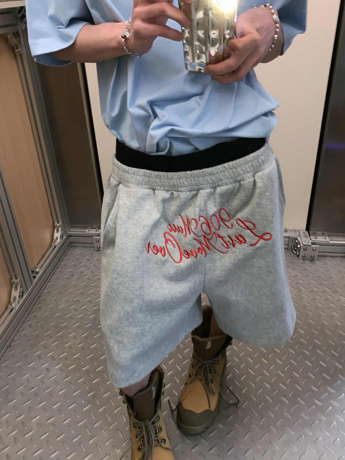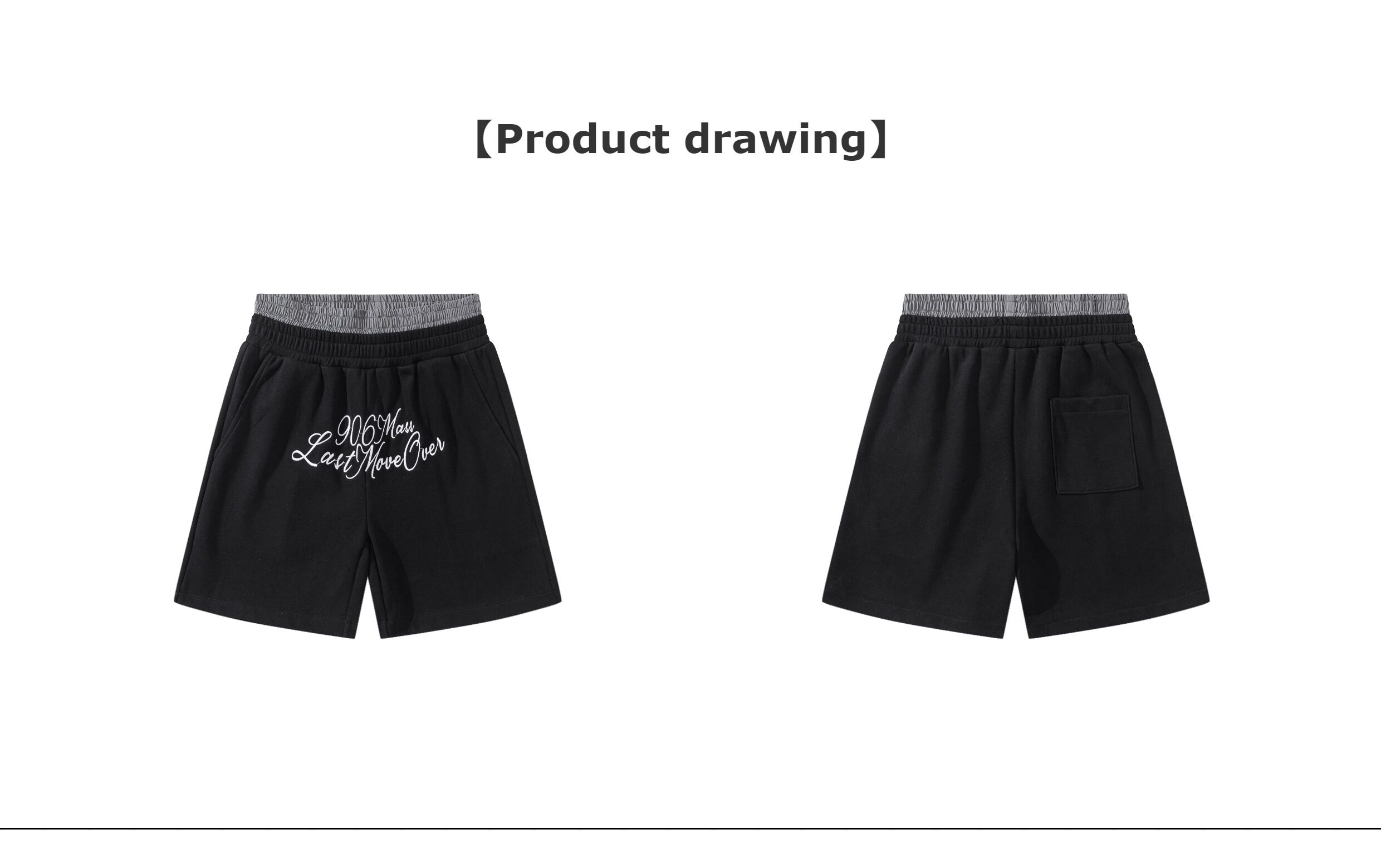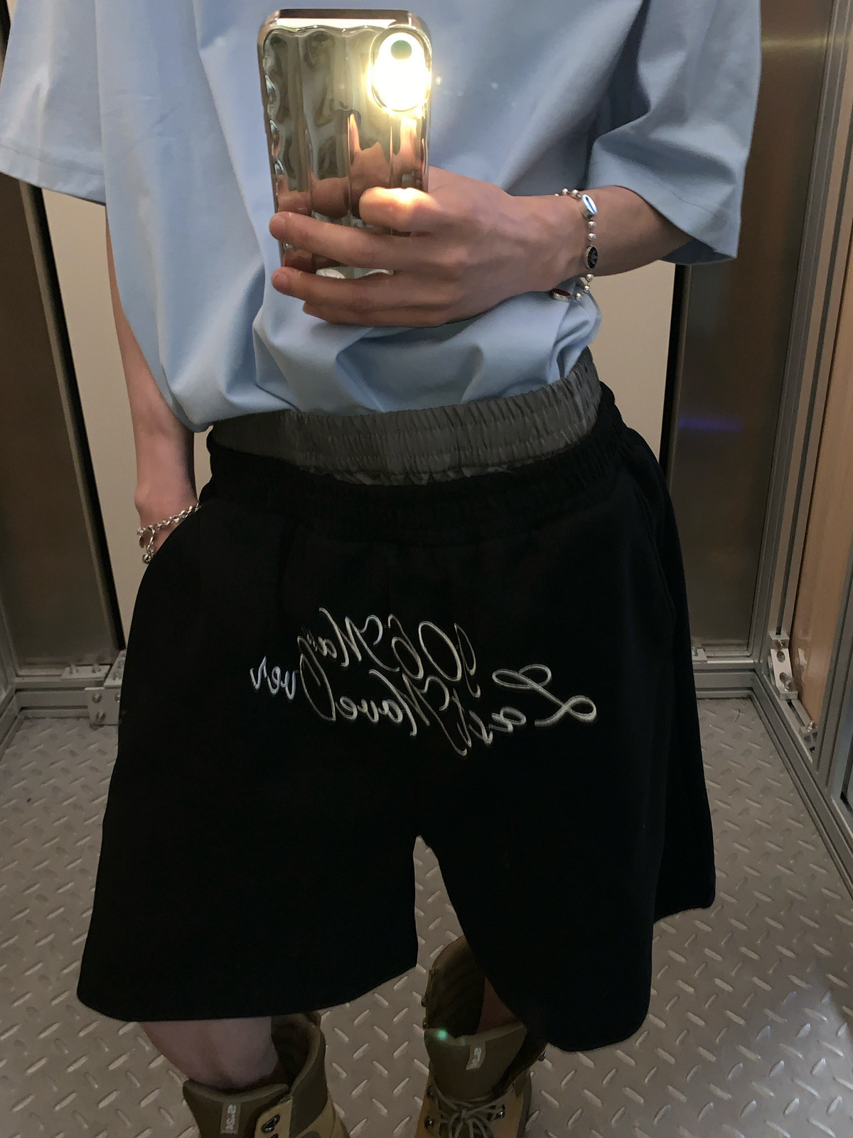 阿荒與阿鹵韓國復古松緊腰運動休閒男女短褲五分褲設計感日常情侶
