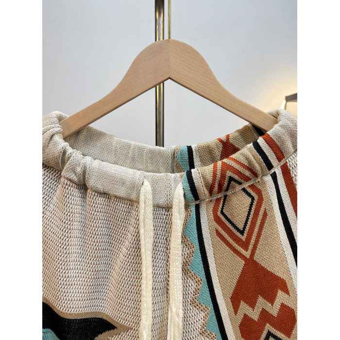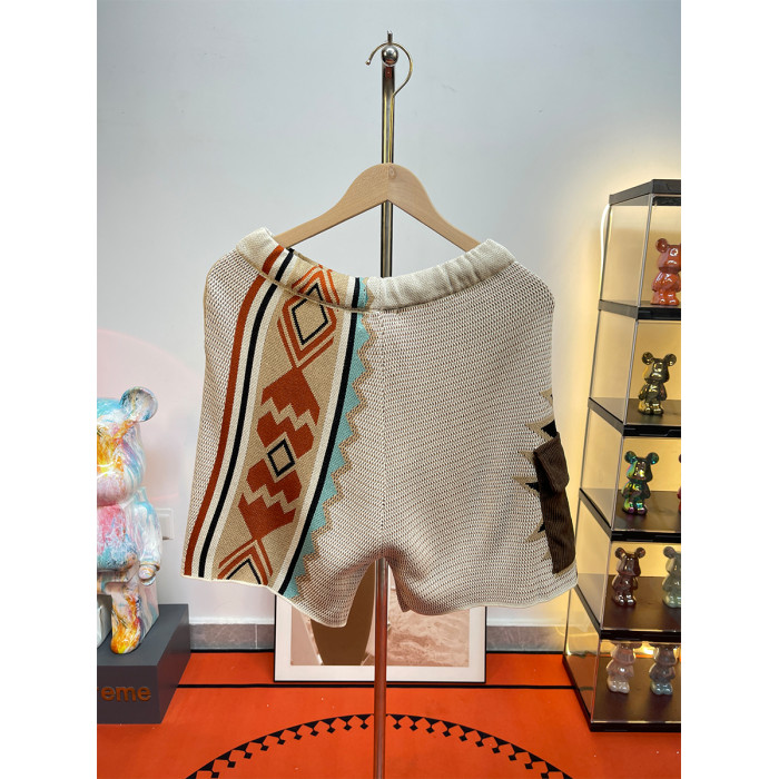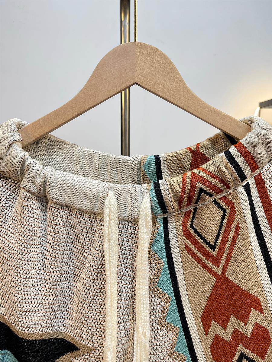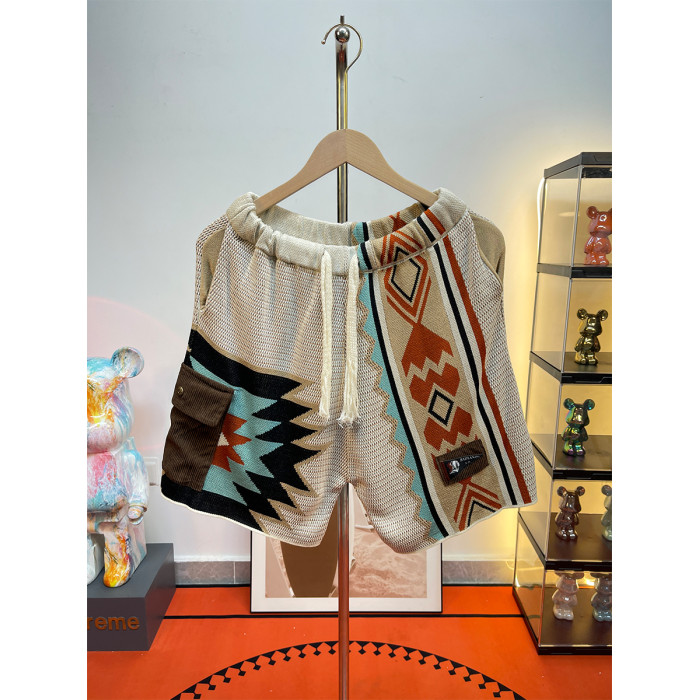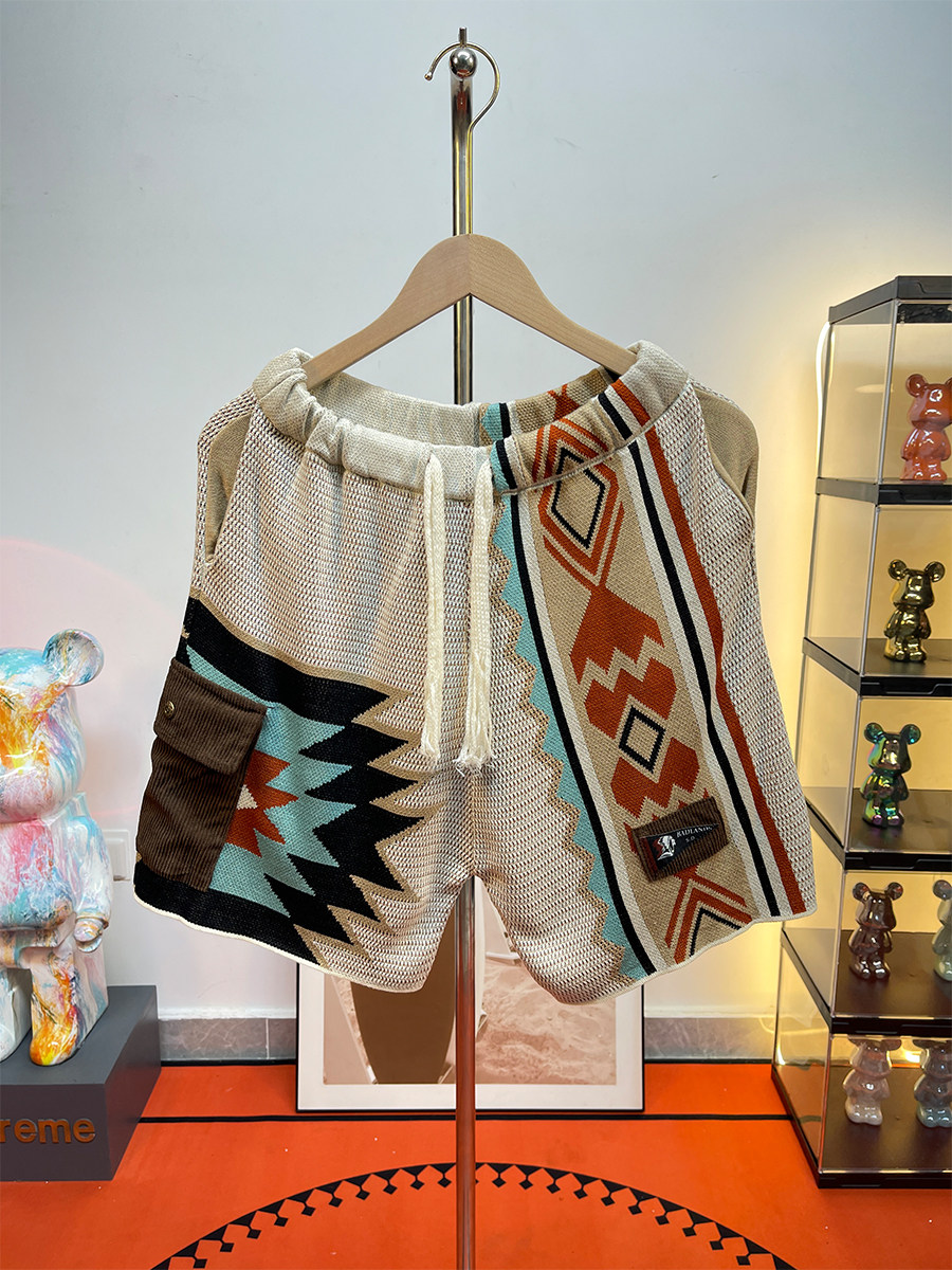 馬登美式復古納瓦霍針織短褲男款夏季網眼五分褲撞色刺綉休閒褲子