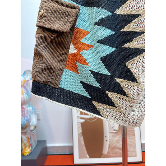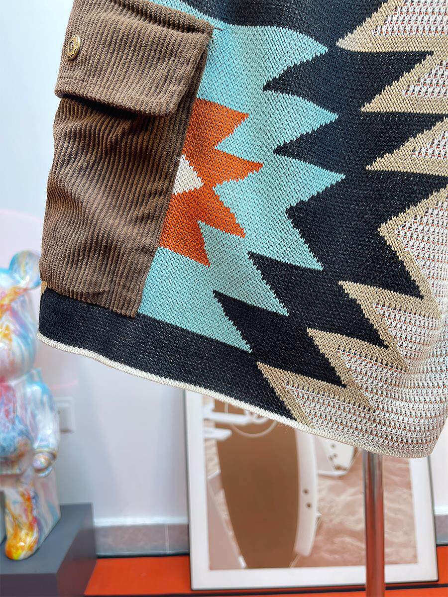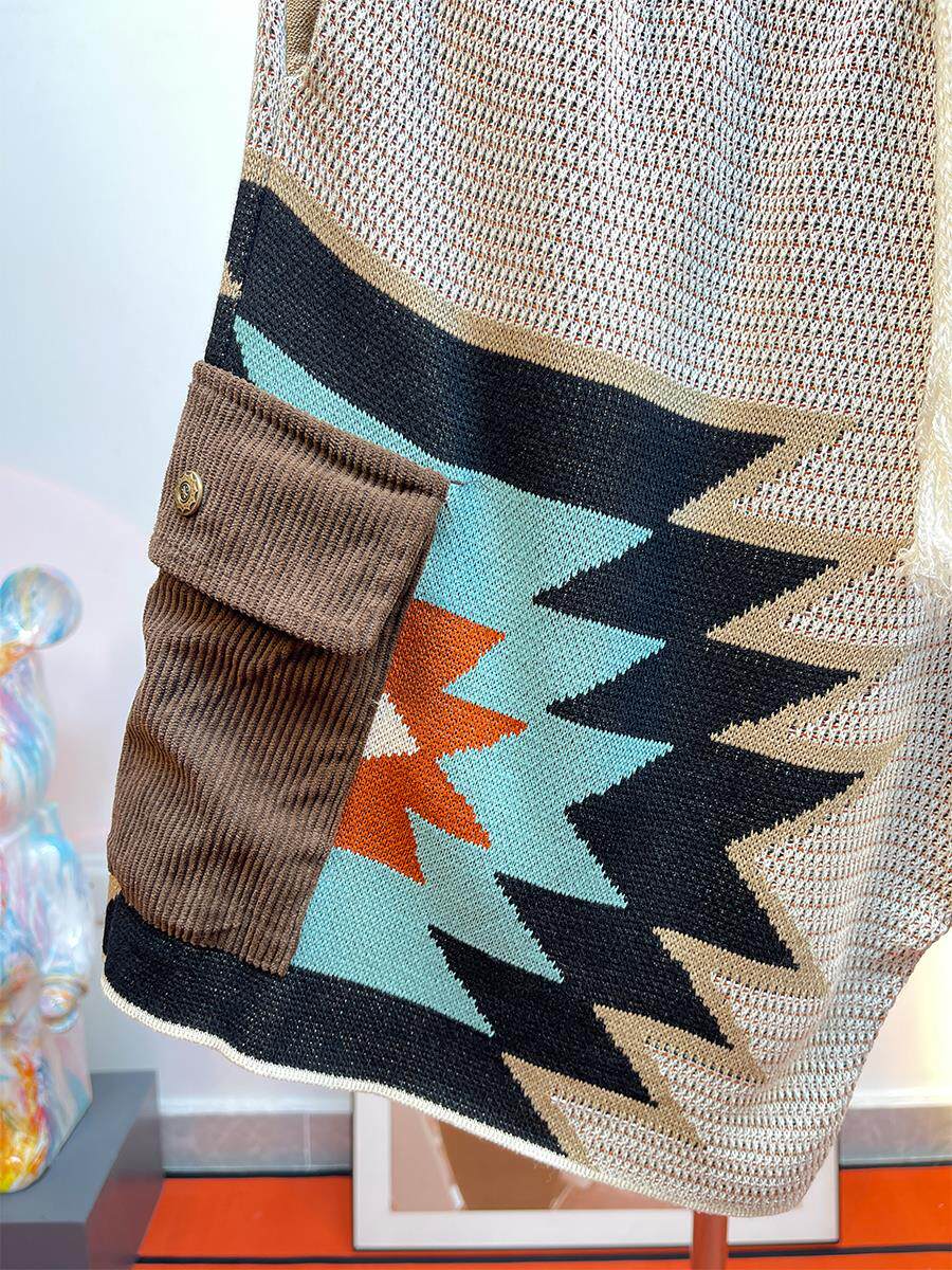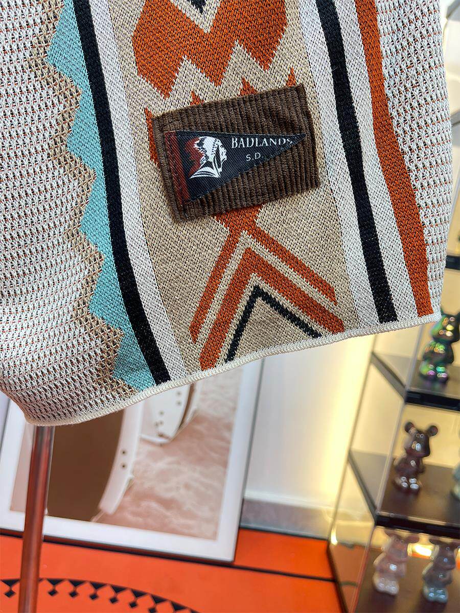 馬登美式復古納瓦霍針織短褲男款夏季網眼五分褲撞色刺綉休閒褲子