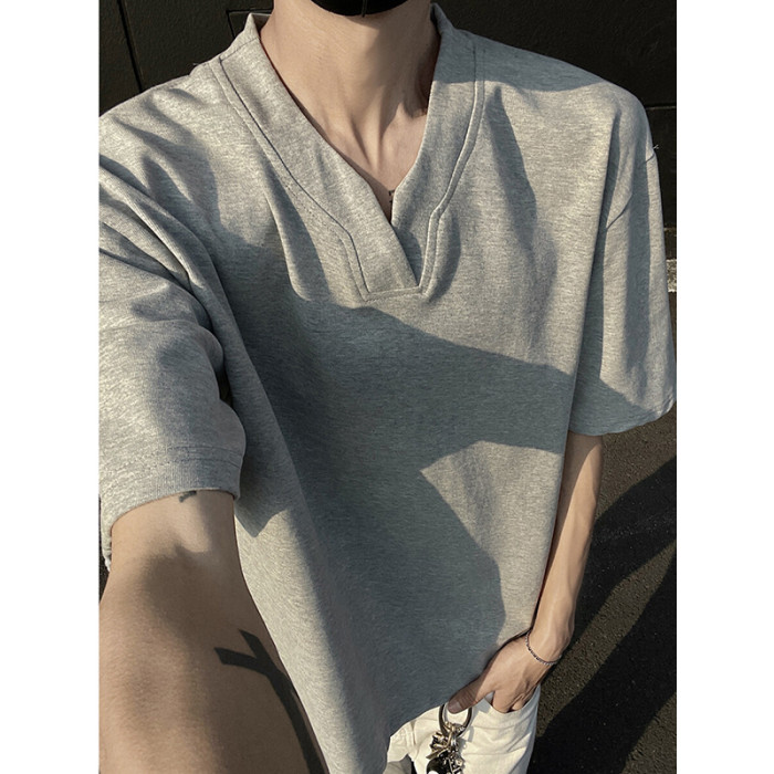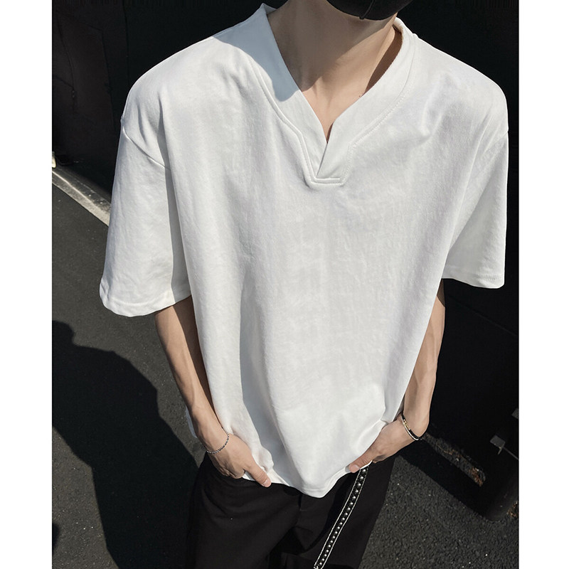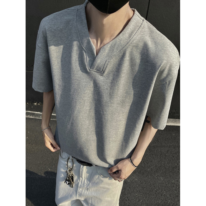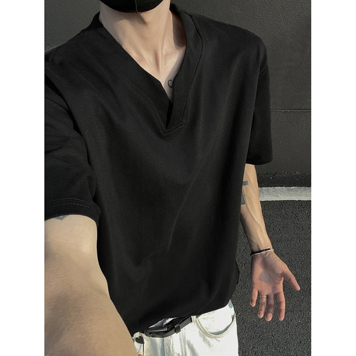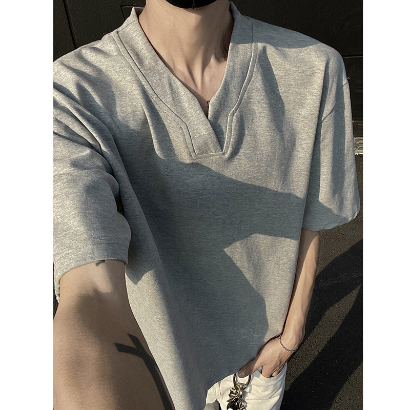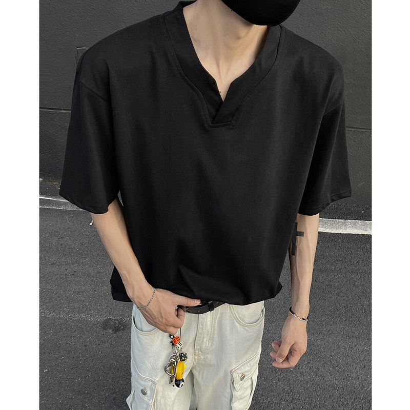 黑色重磅索羅娜t恤男款夏季cleanfit亨利V領短袖美式高街正肩半袖