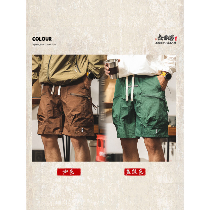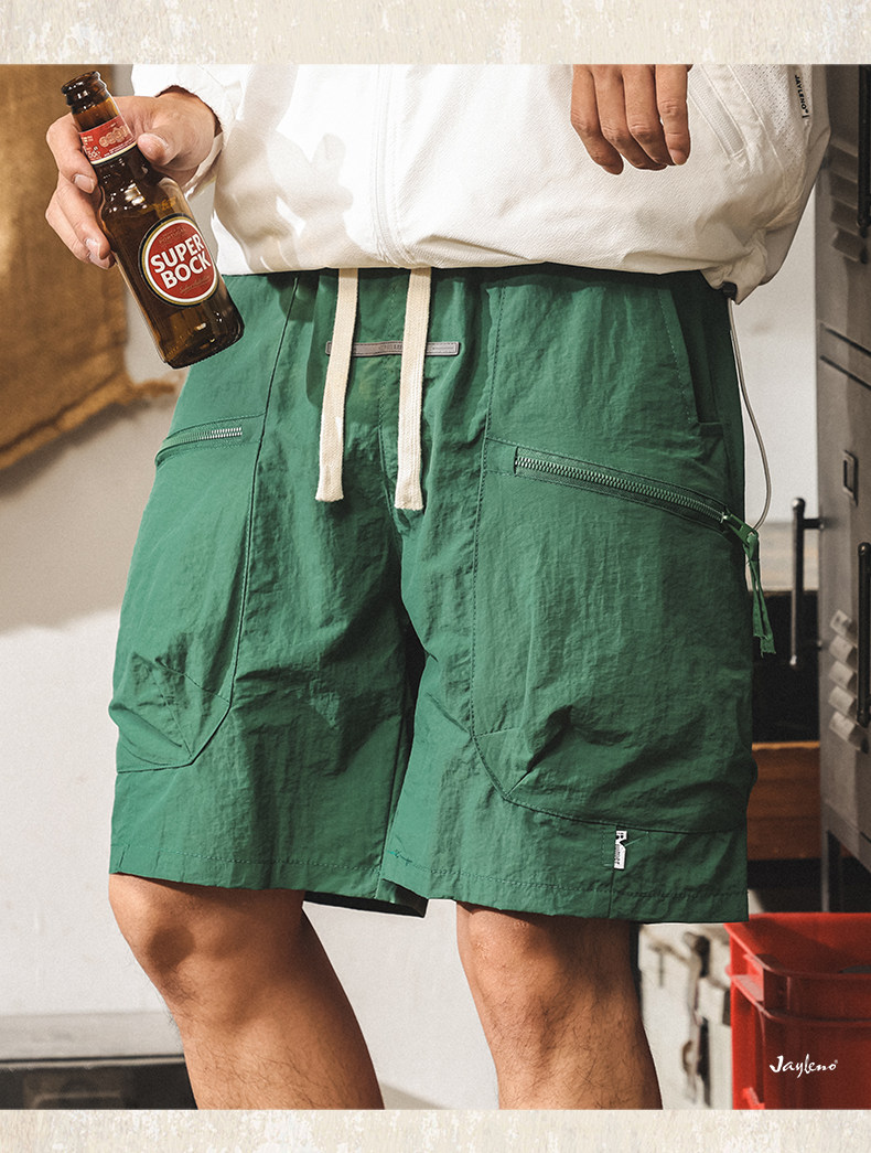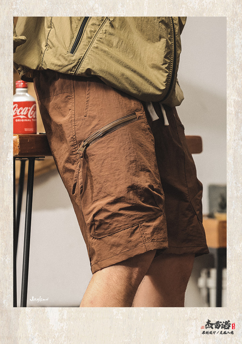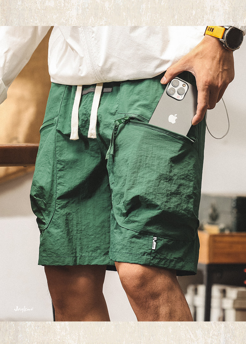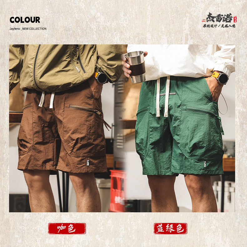 美式山系冰絲短褲男士2025新款夏季薄款潮牌寬鬆大碼休閒五分褲男