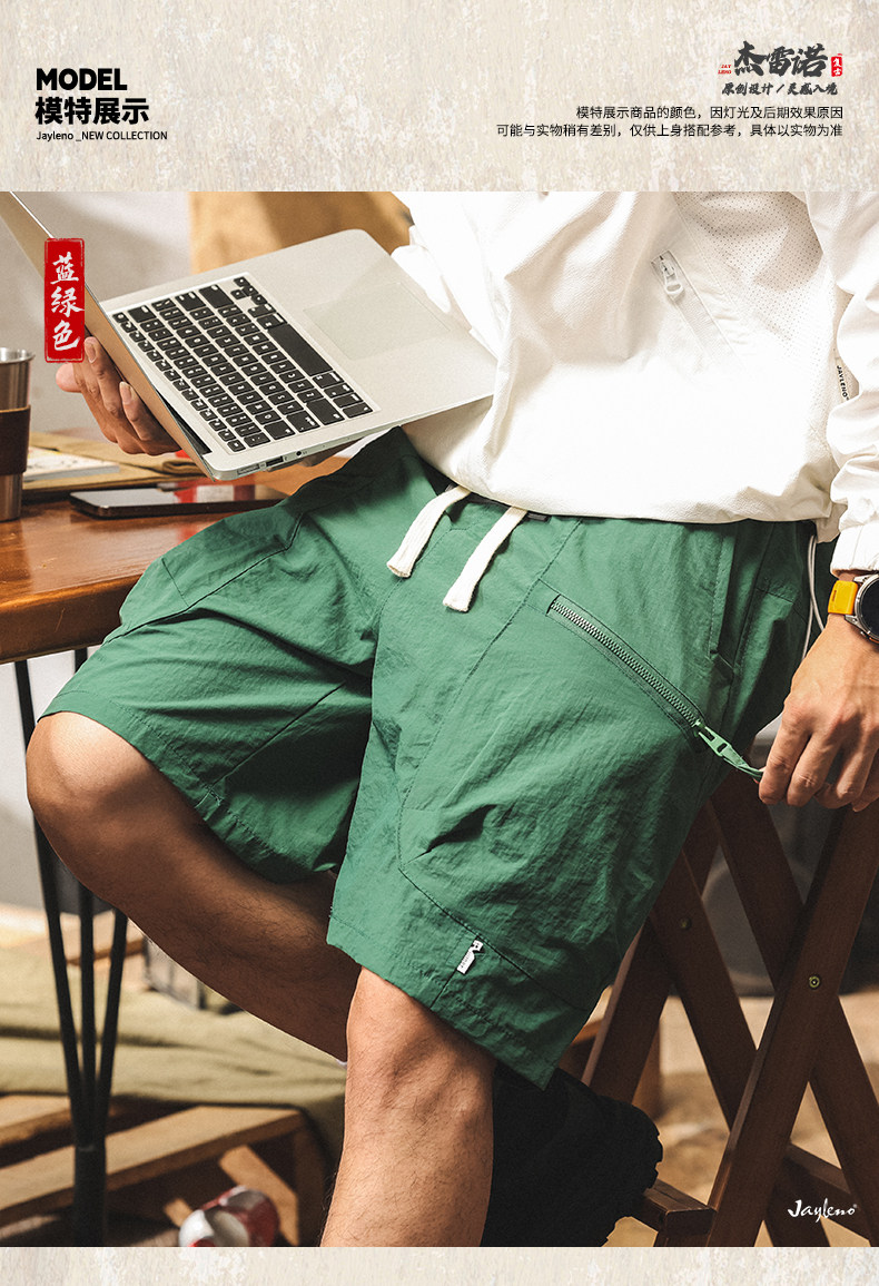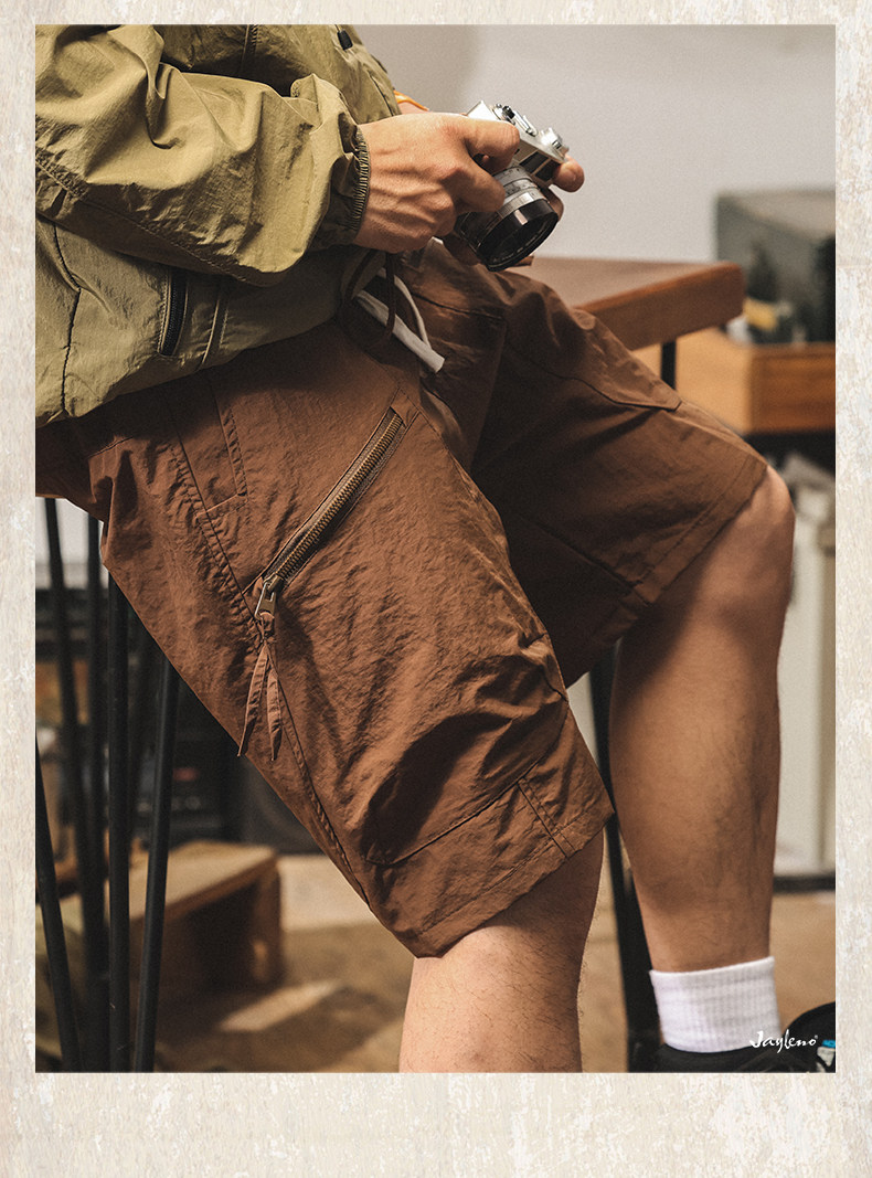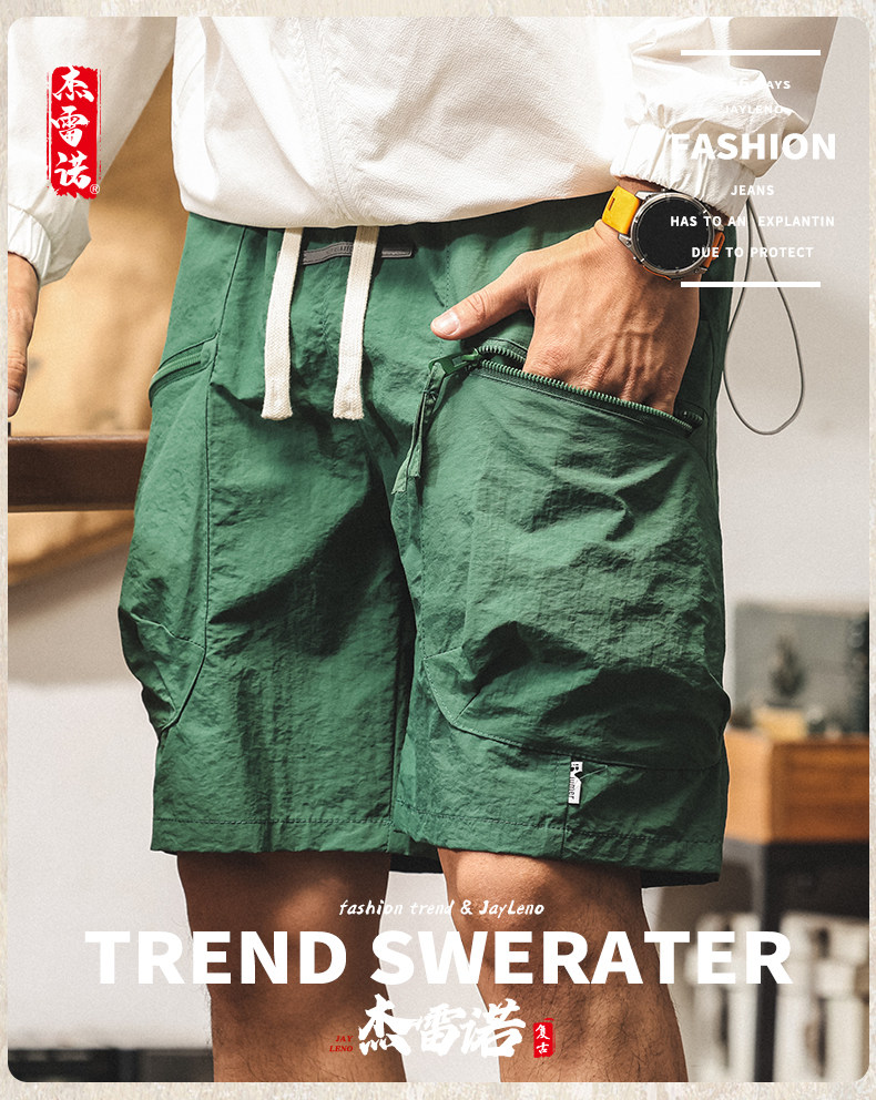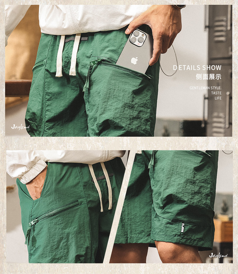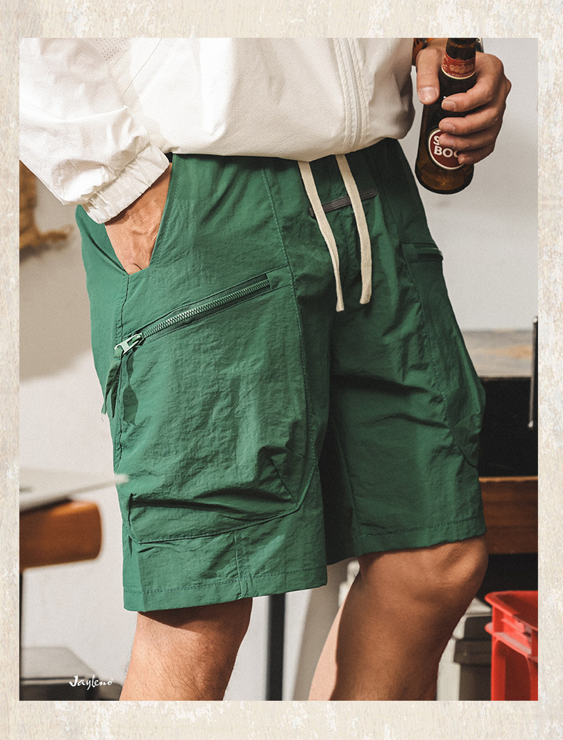 美式山系冰絲短褲男士2025新款夏季薄款潮牌寬鬆大碼休閒五分褲男