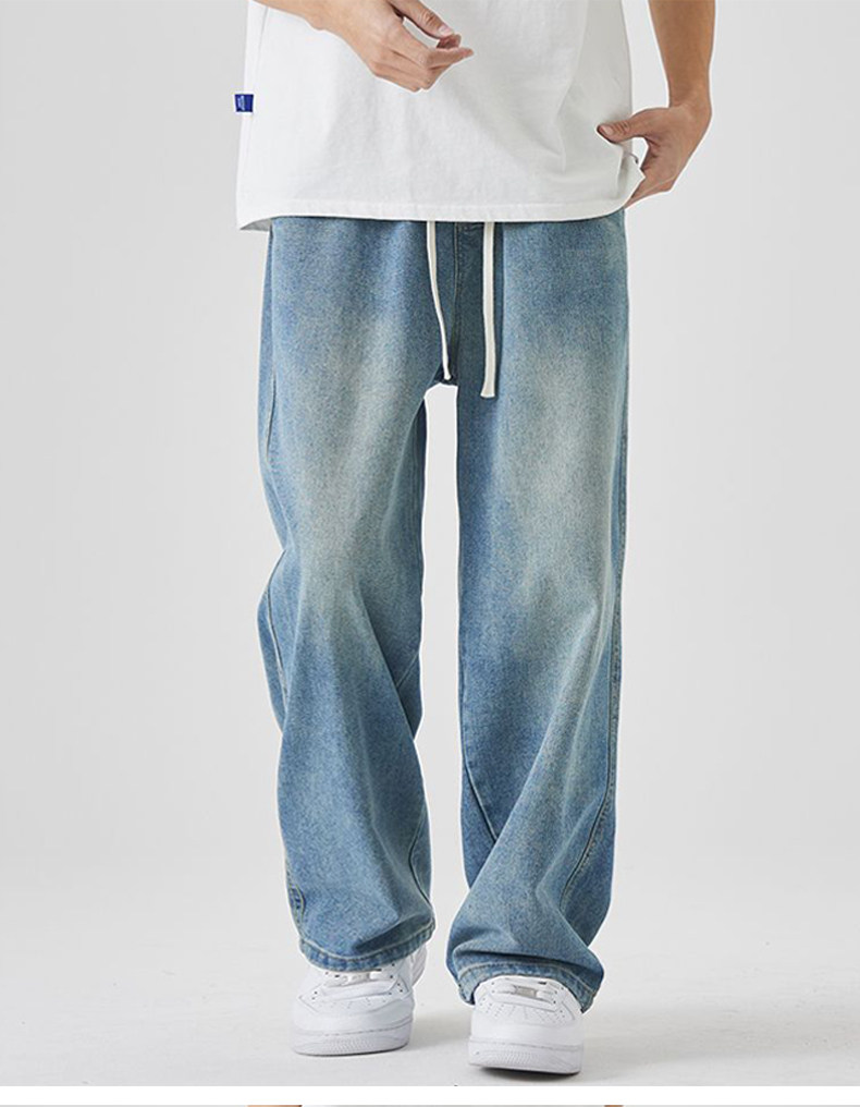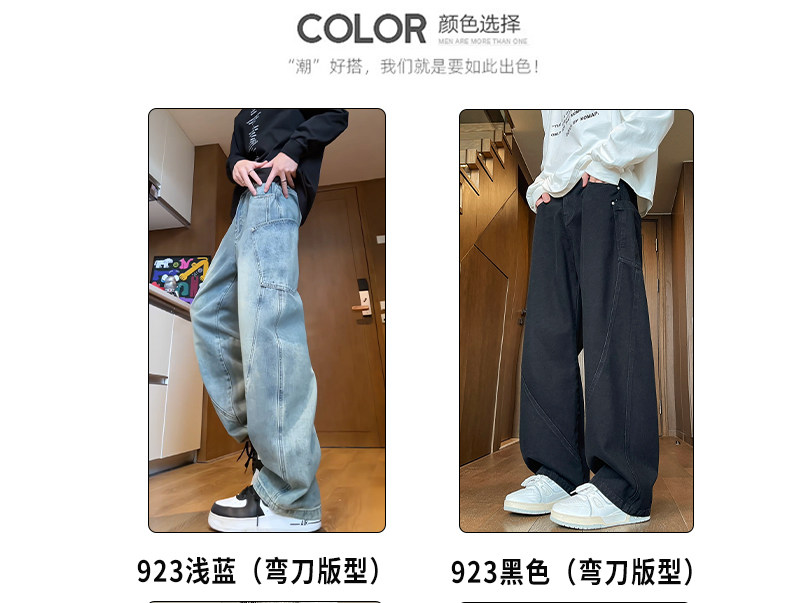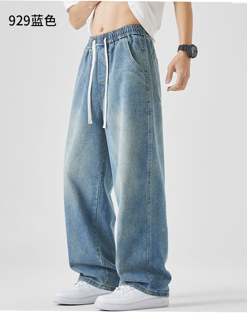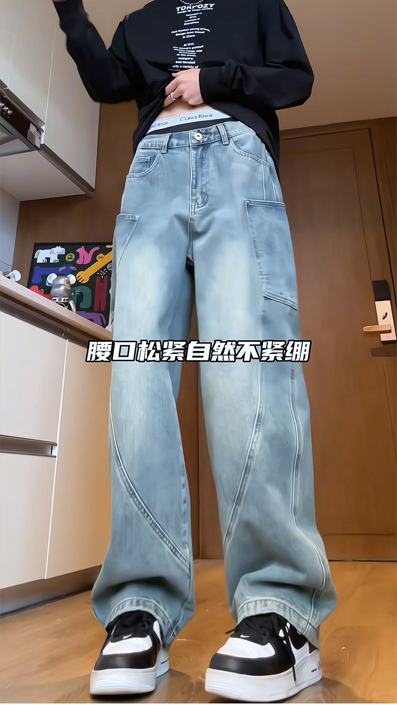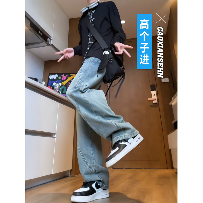 高個子加長彎刀牛仔褲男生2025秋季新款美式寬鬆濶腿休閒褲子加絨
