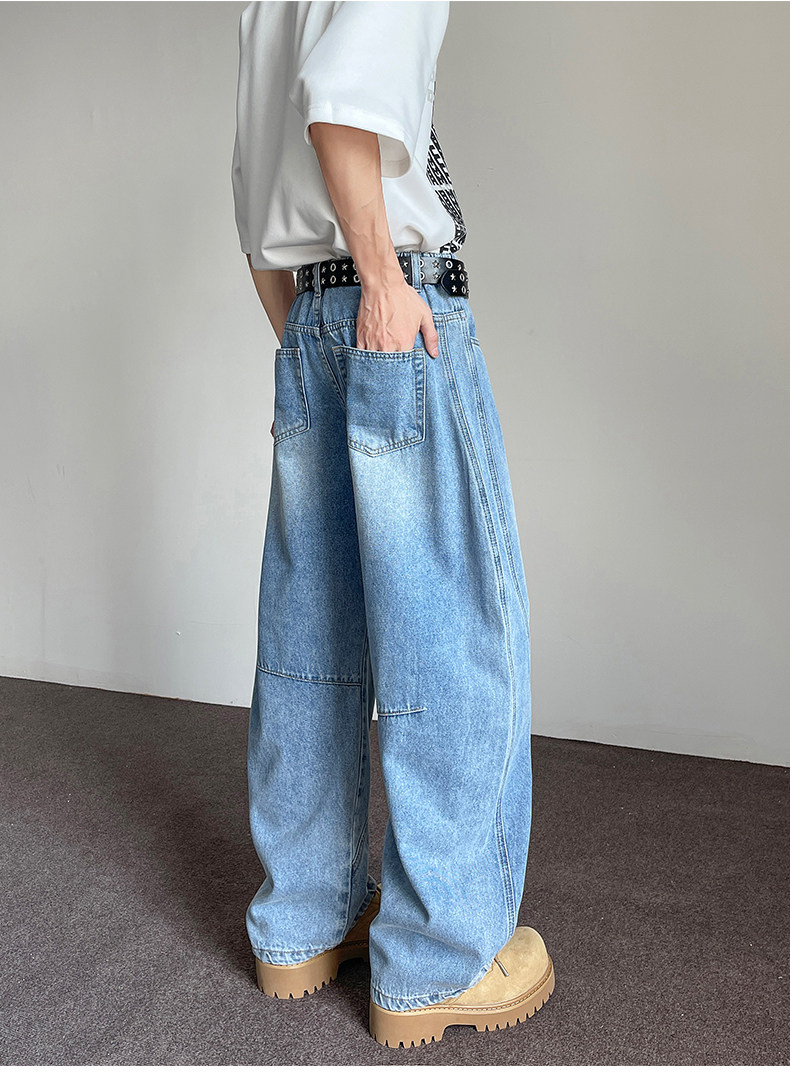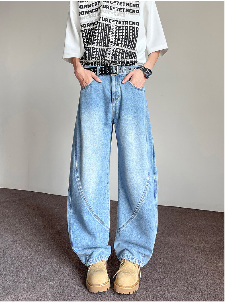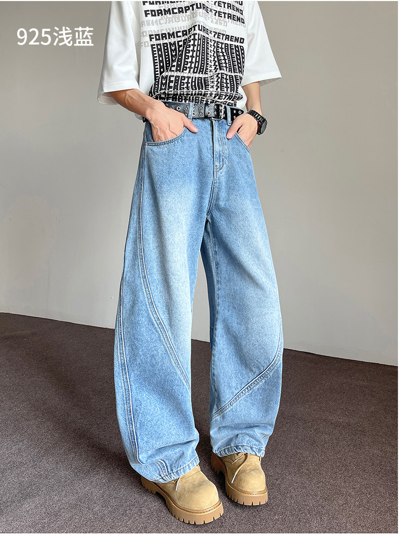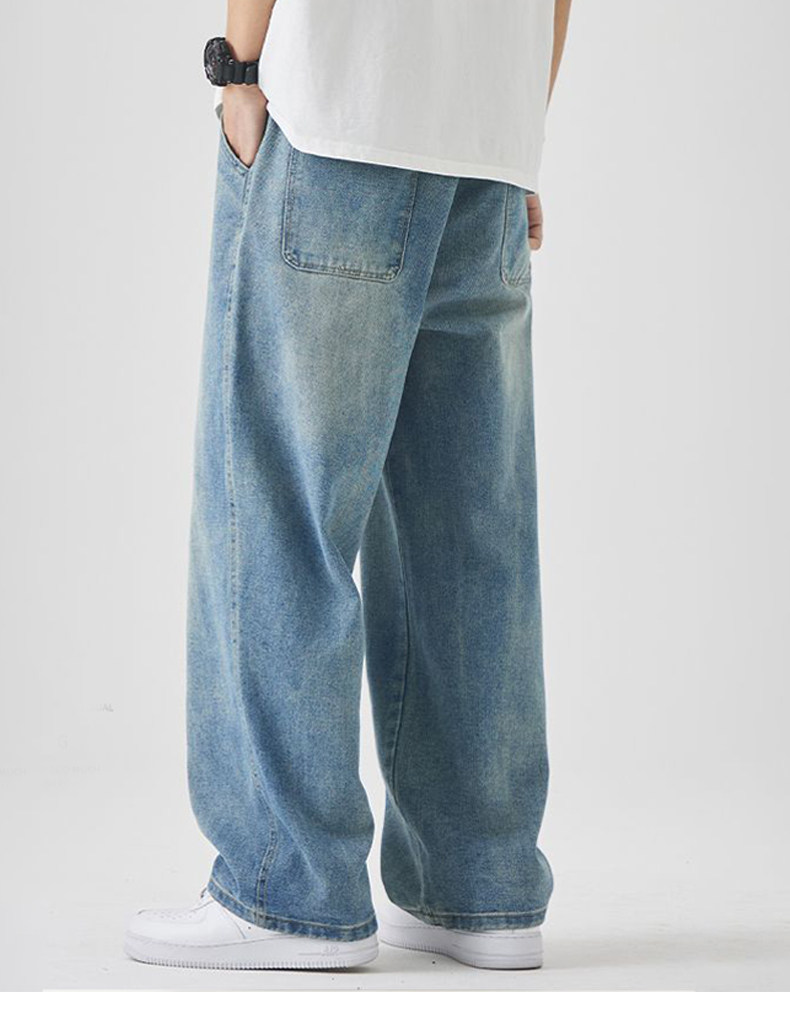 高個子加長彎刀牛仔褲男生2025秋季新款美式寬鬆濶腿休閒褲子加絨