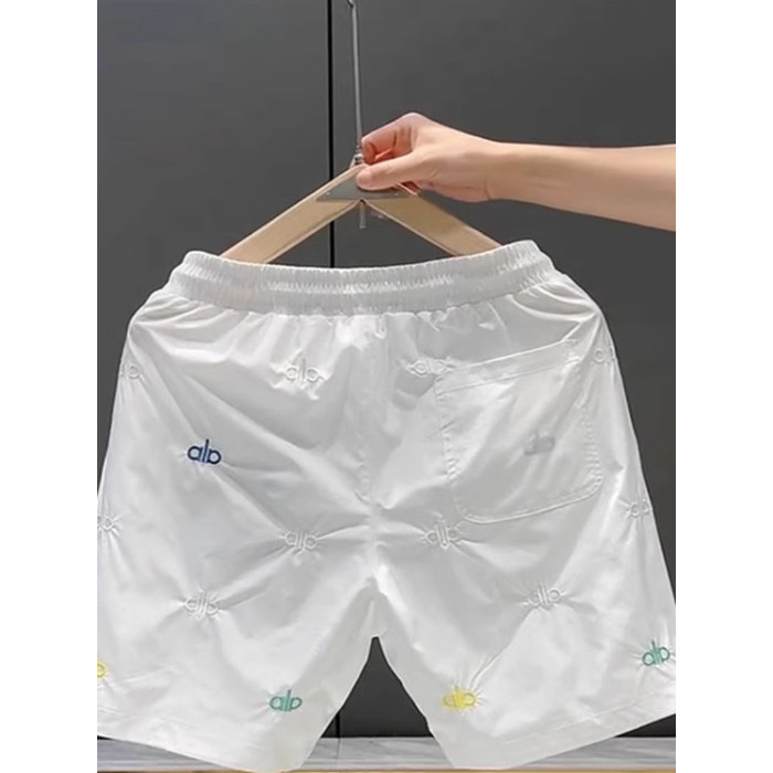 男生夏季休閒短褲歐貨寬鬆潮牌直筒褲子輕奢氣質五分褲刺綉沙灘褲