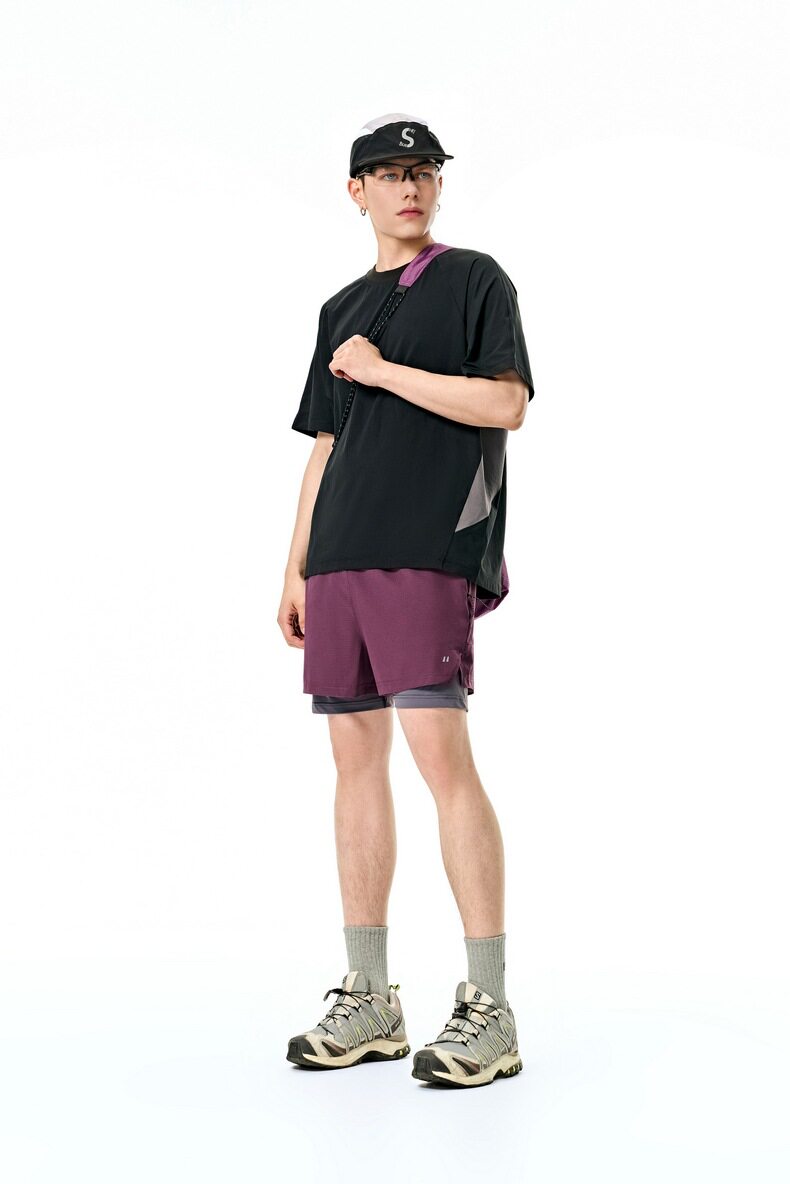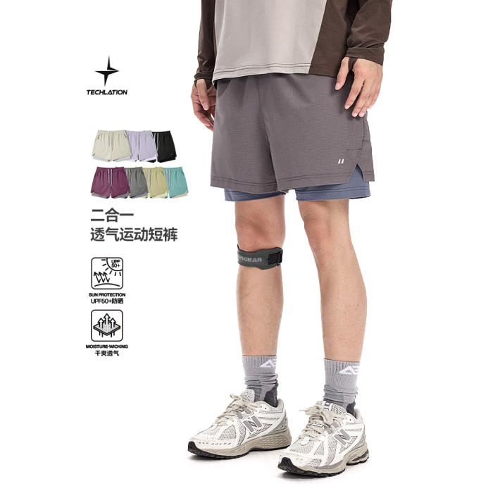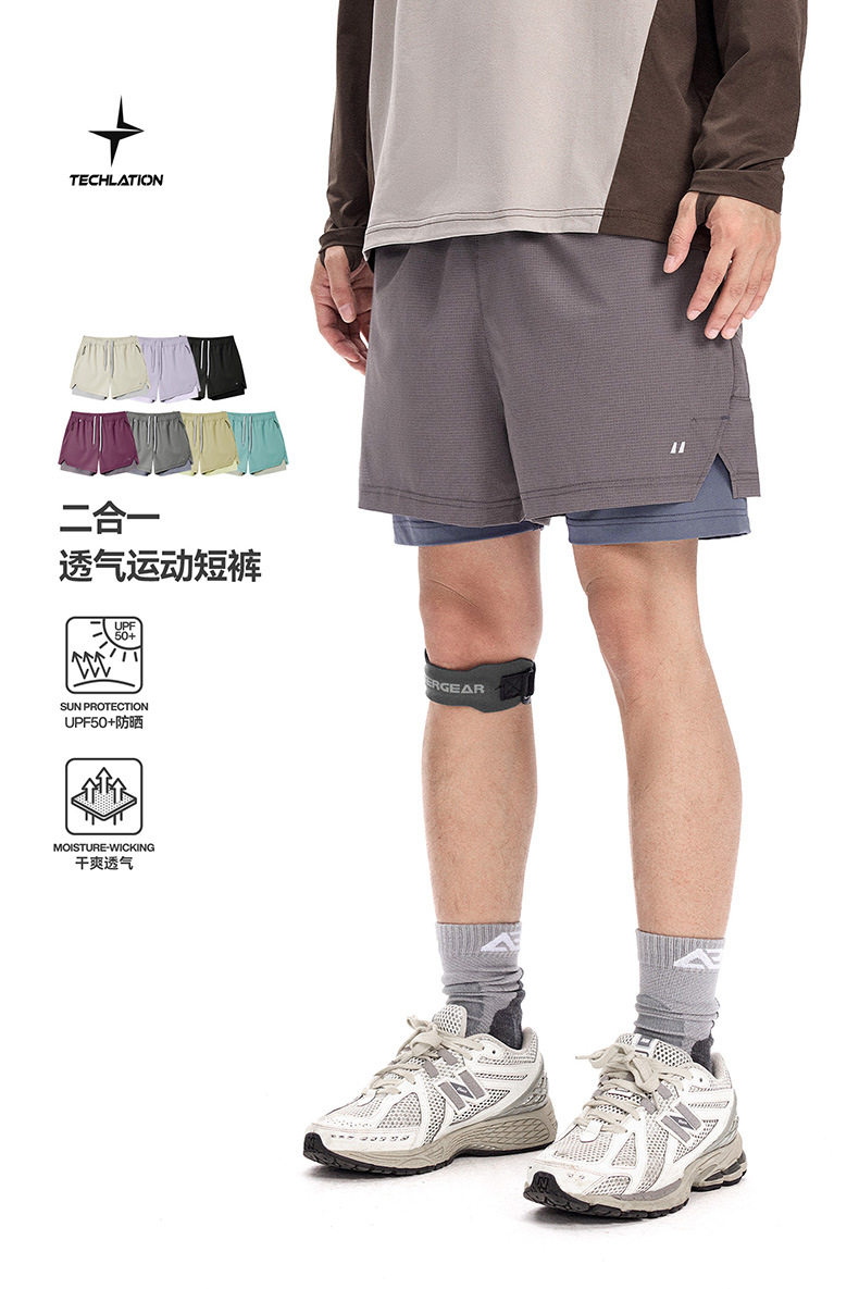 美式街頭二合一透氣運動短褲男女夏季戶外輕量upf50防曬四分褲子
