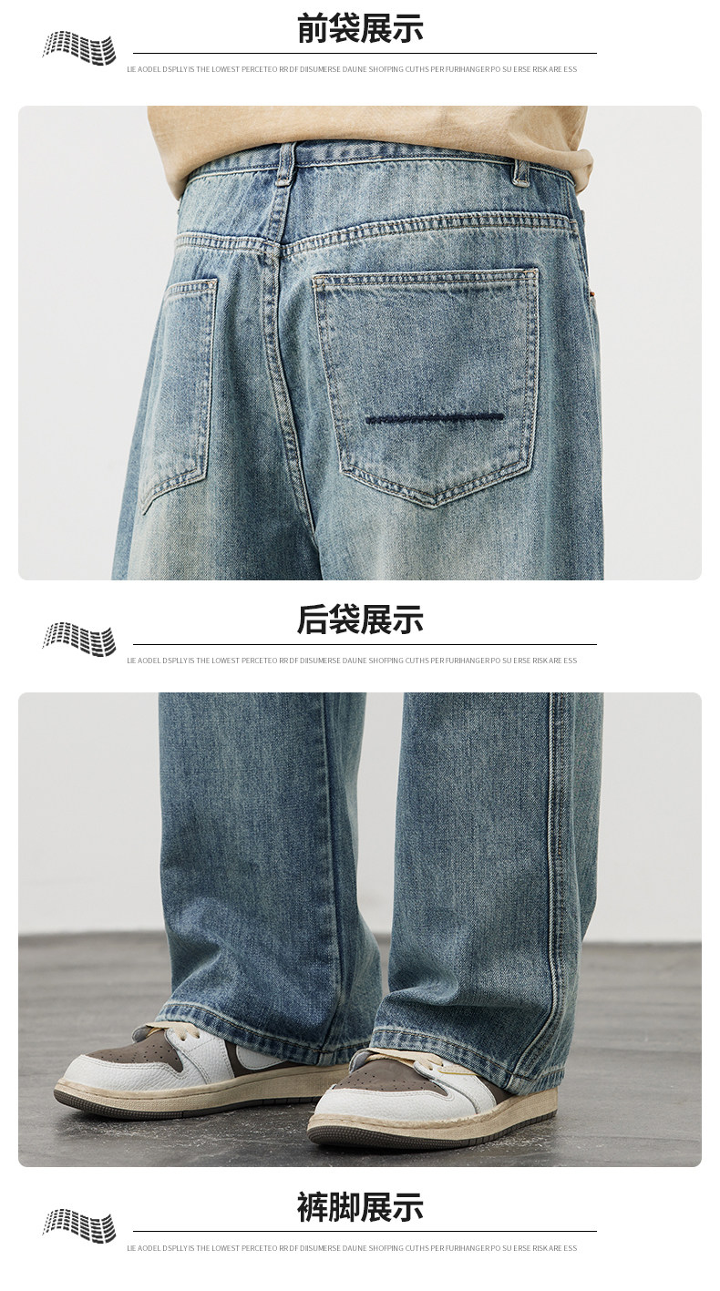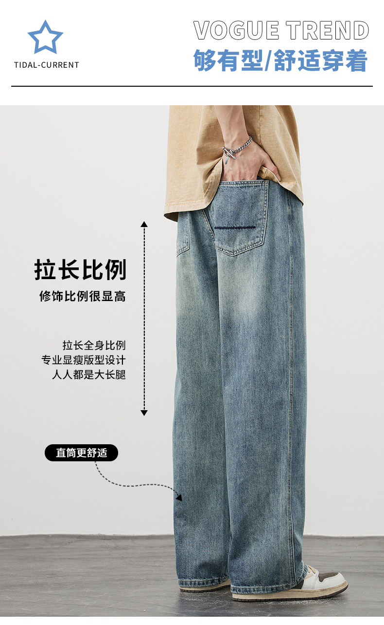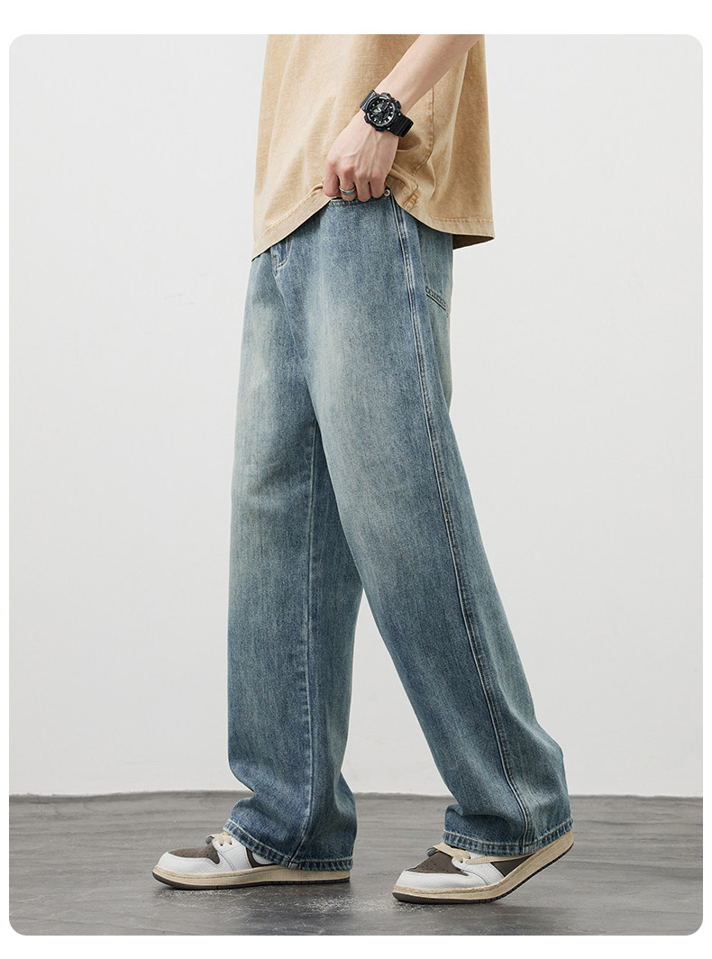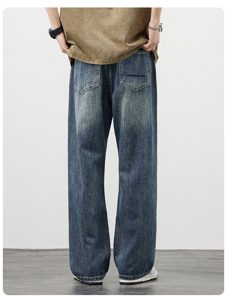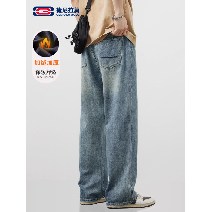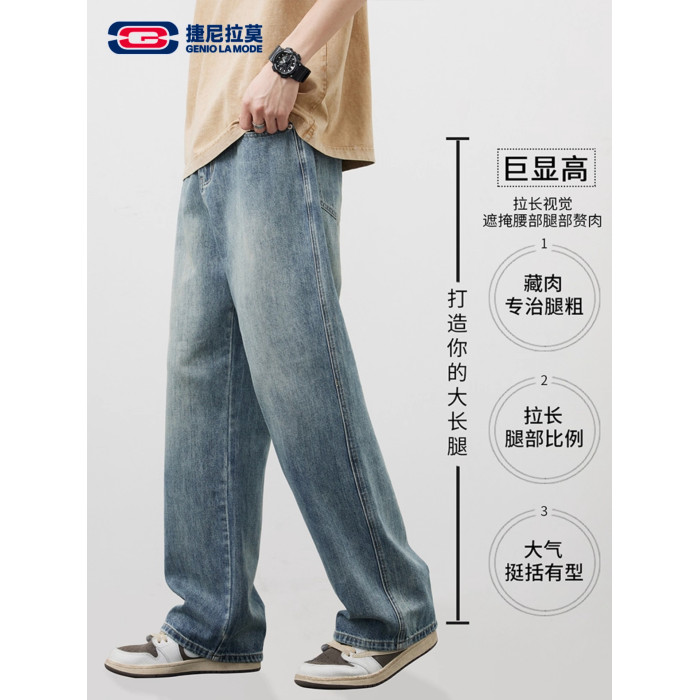 【敖瑞鵬代言】GENIOLAMODE藍色美式水洗牛仔褲男秋季新款直筒褲