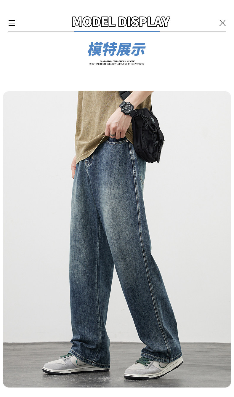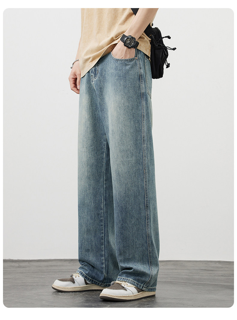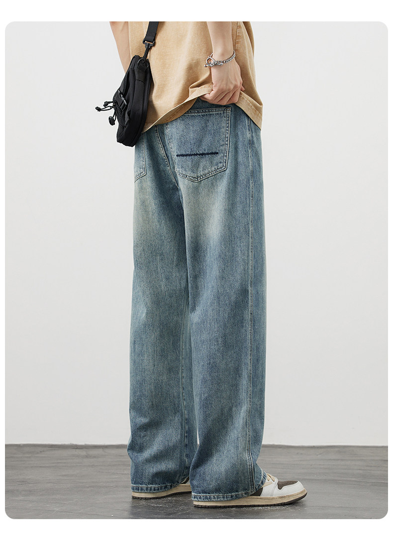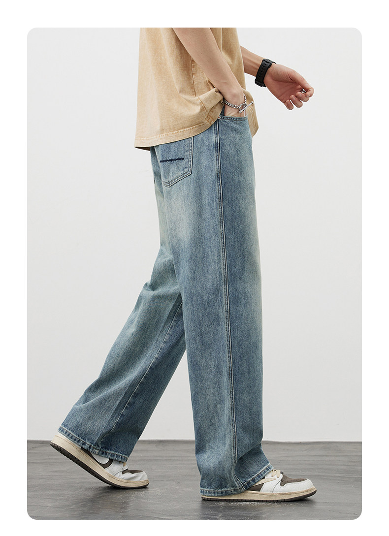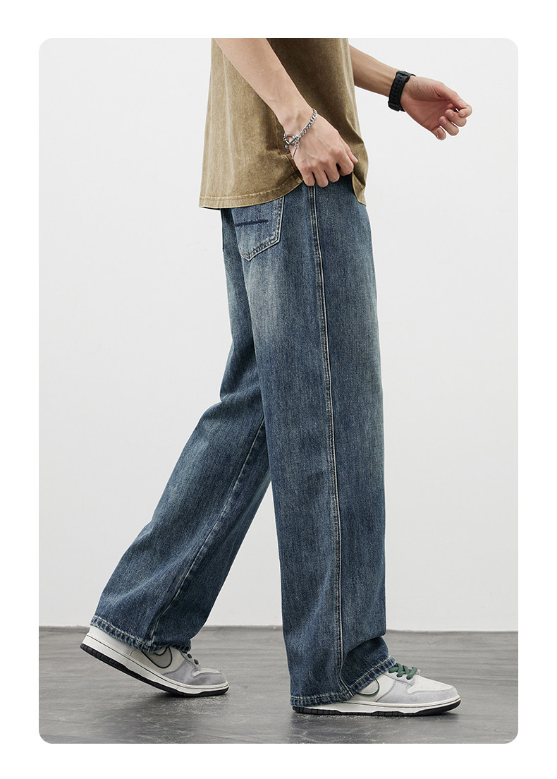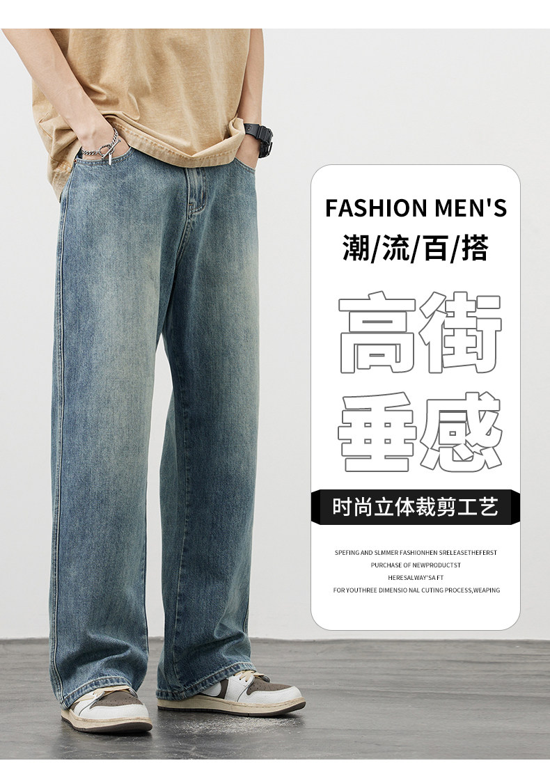 【敖瑞鵬代言】GENIOLAMODE藍色美式水洗牛仔褲男秋季新款直筒褲