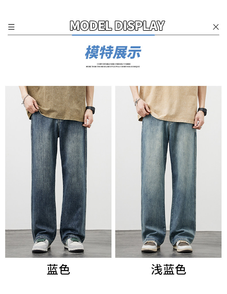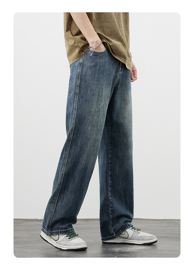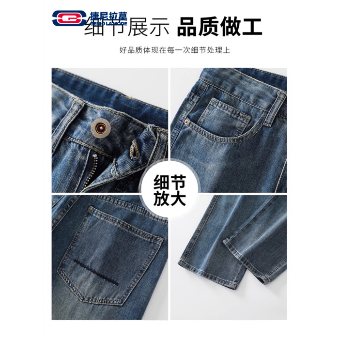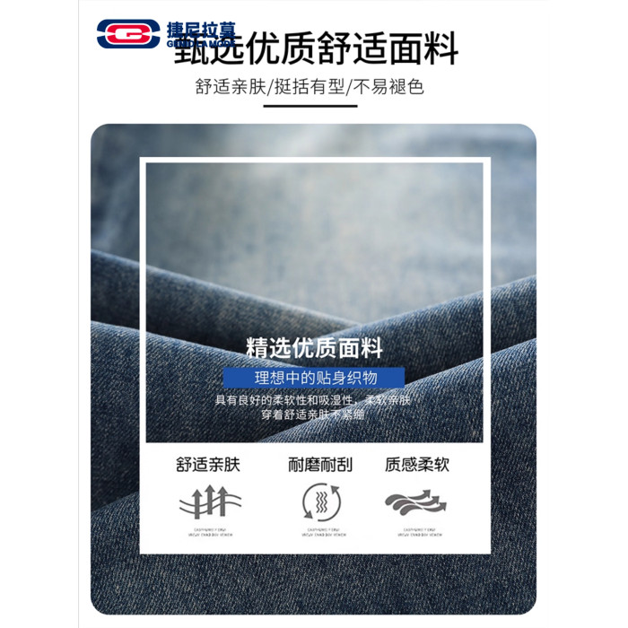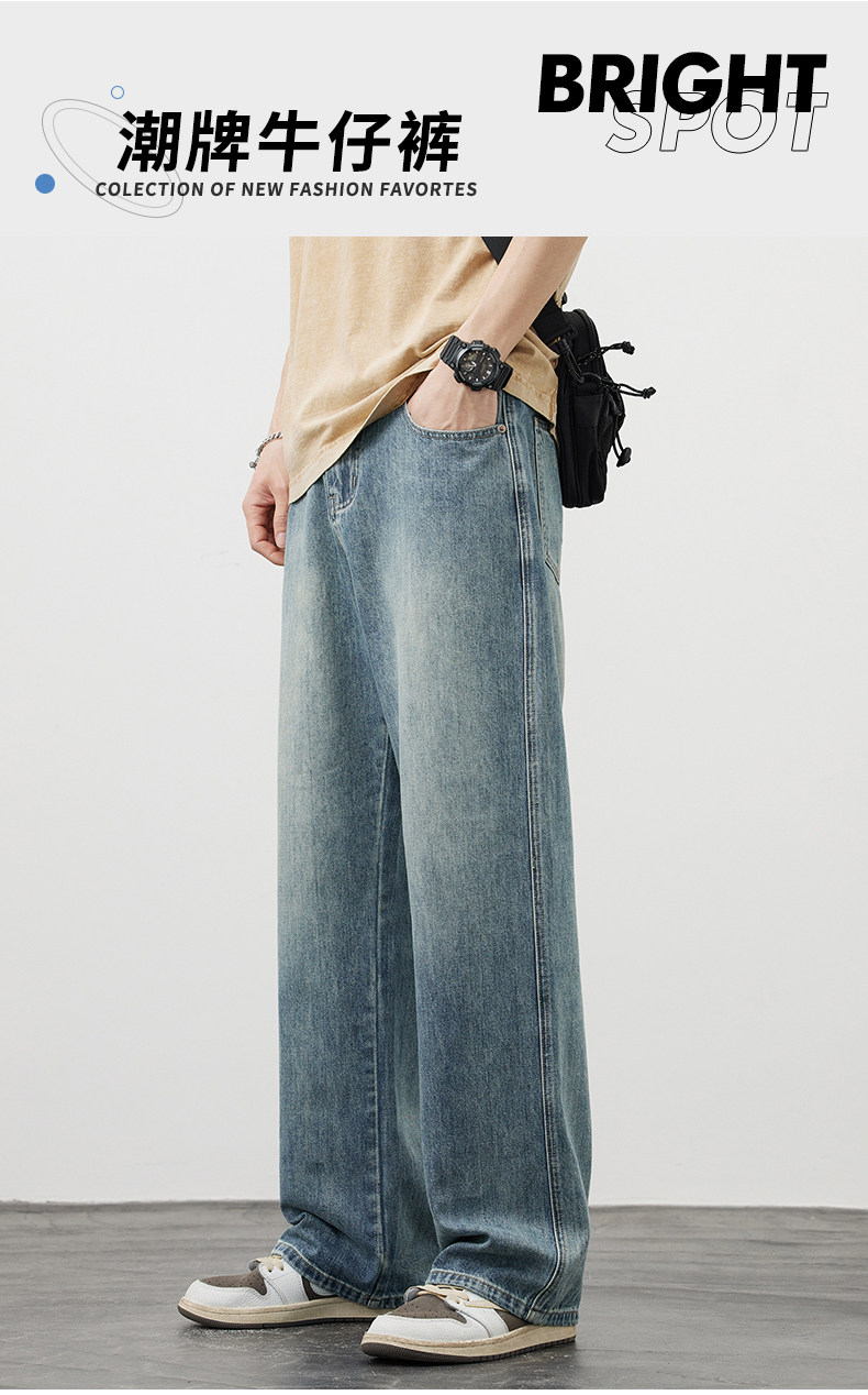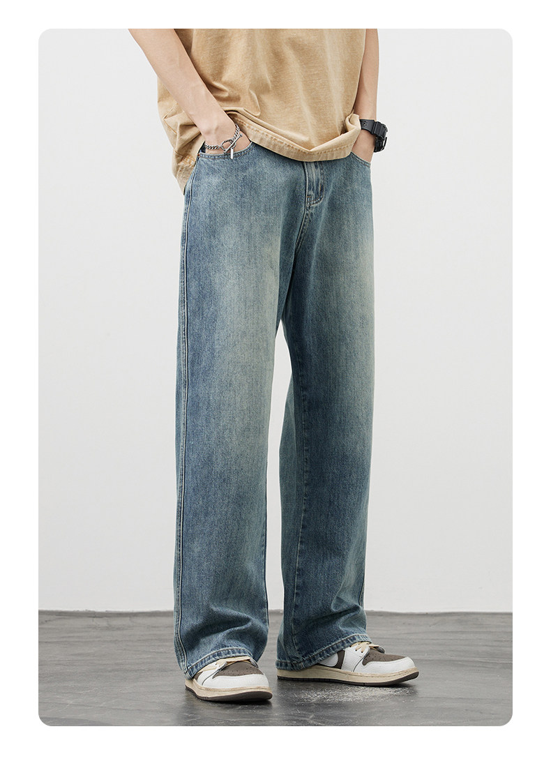 【敖瑞鵬代言】GENIOLAMODE藍色美式水洗牛仔褲男秋季新款直筒褲