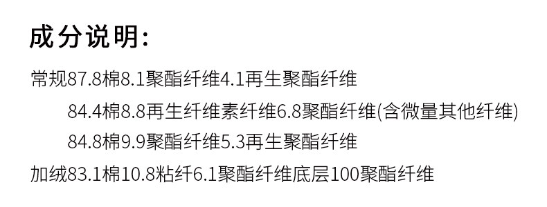 | 材質成分 | 棉87.8% 聚酯纖維8.1% 再生纖維素纖維4.1% |
