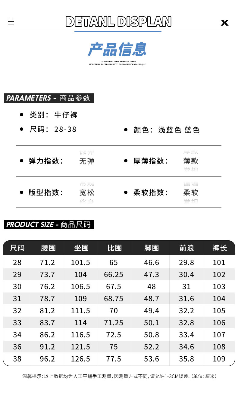 | 面料 | 牛仔布 |