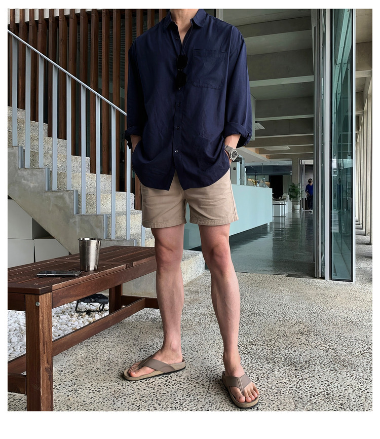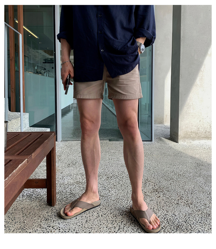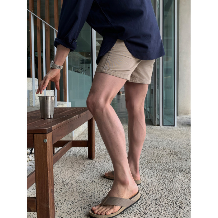 深卡其色時尚休閒短褲男款夏季美式潮流痞帥vibe風寬鬆直筒四分褲