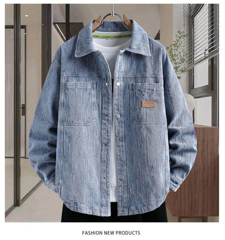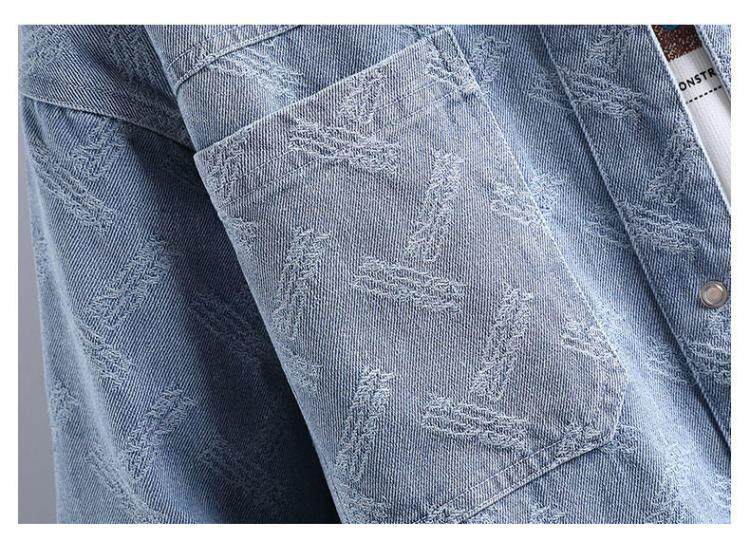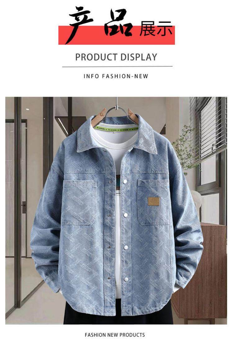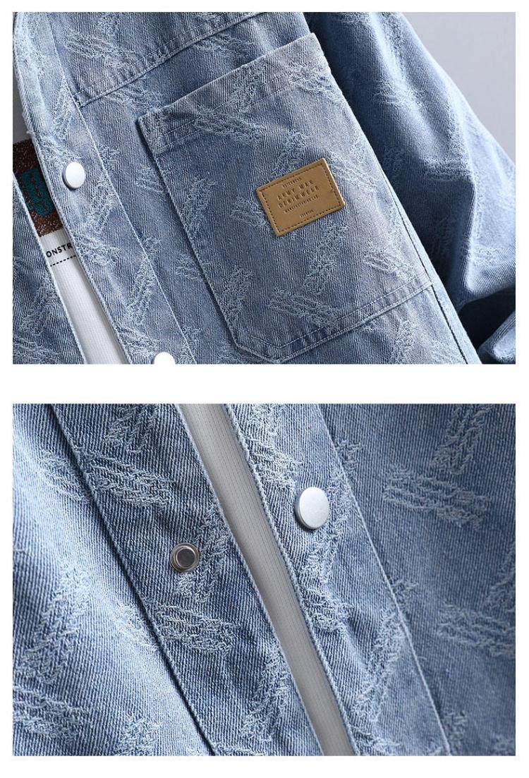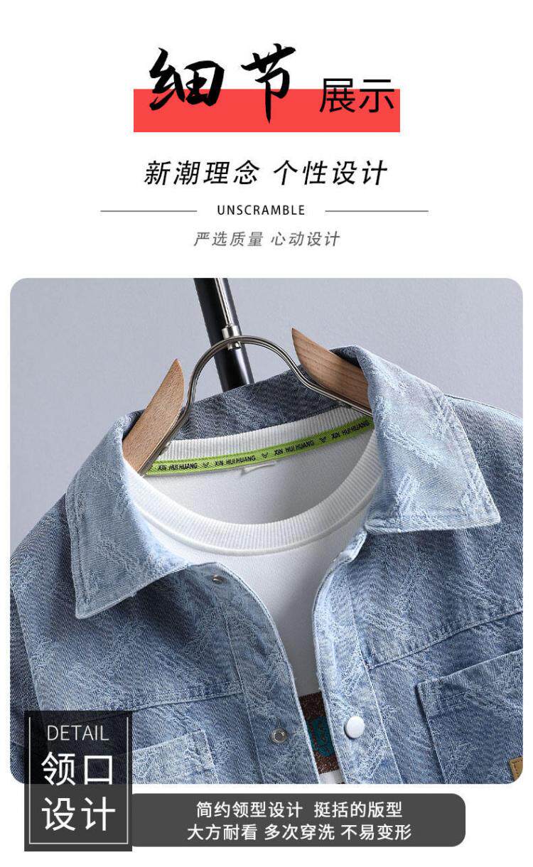 牛仔夾克男個性磨破長袖襯衫青少年學生2026春季加絨兩個口袋外套