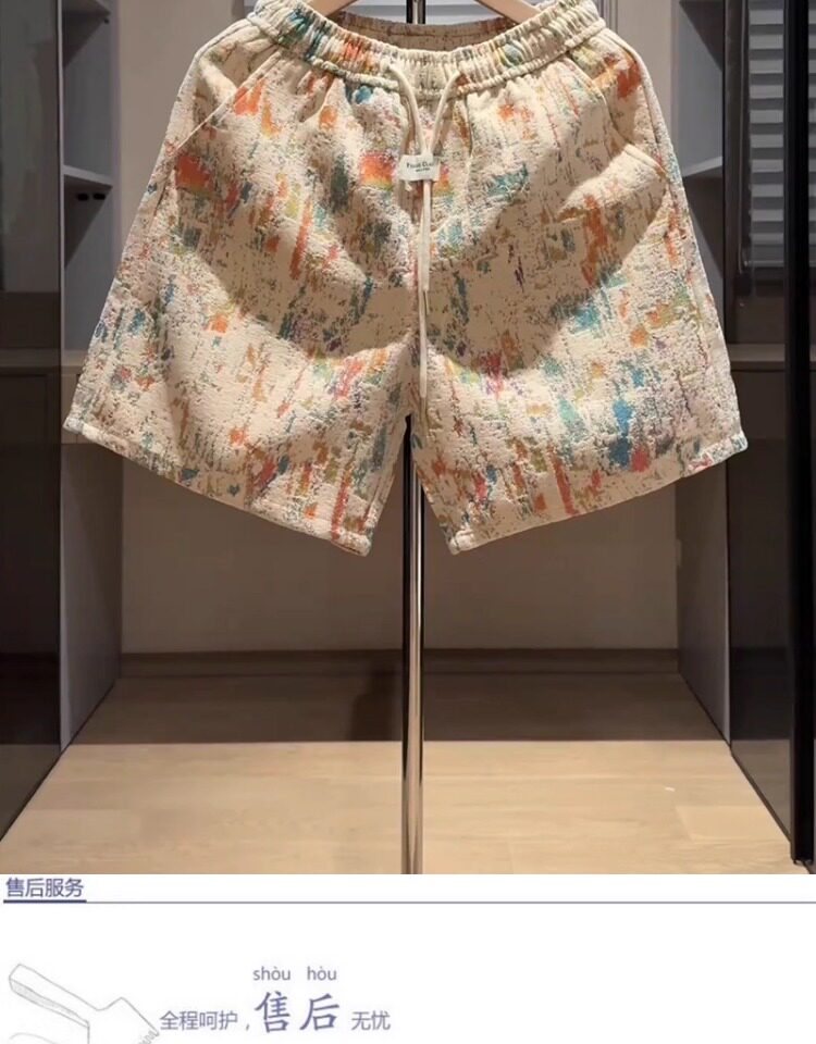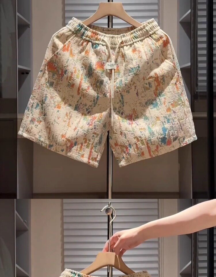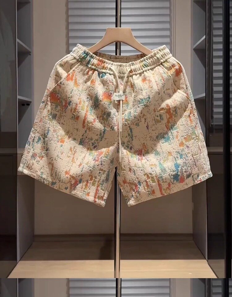 潮牌提花塗鴉休閒短褲男士2026新款夏季外穿痞帥沙灘五分褲子男款