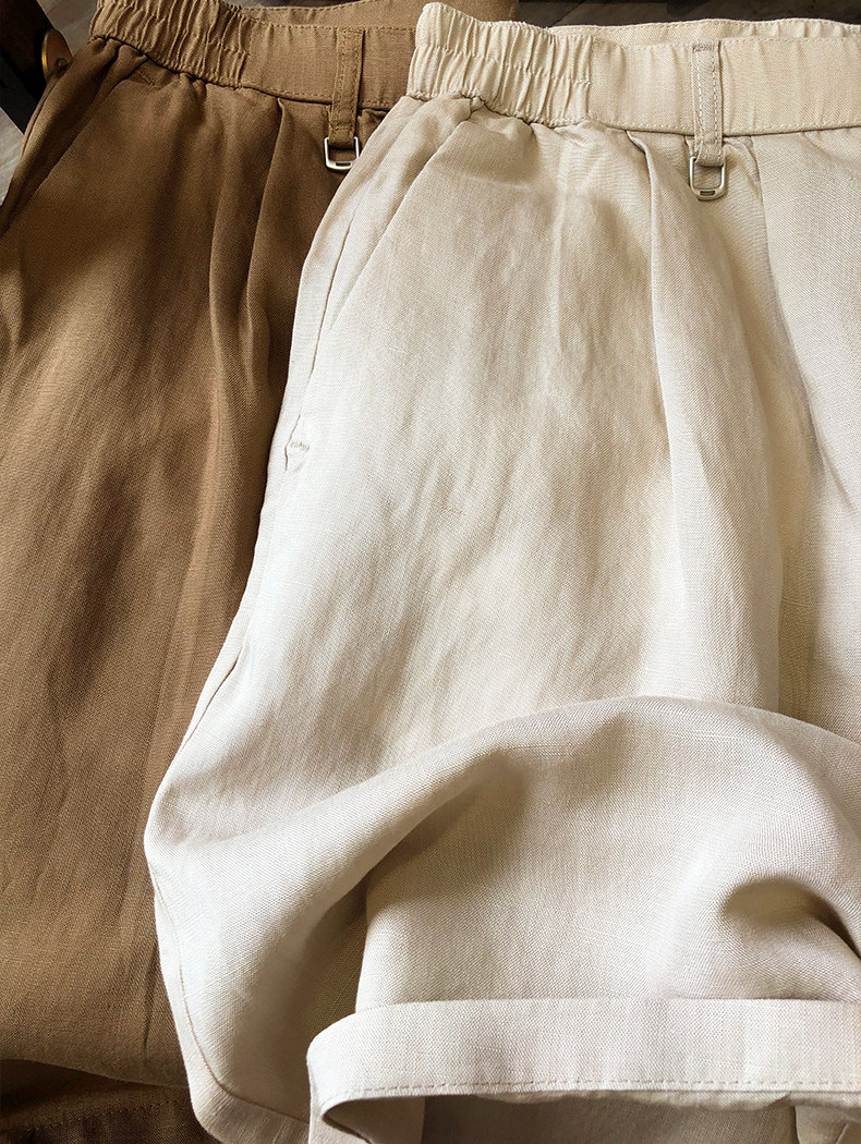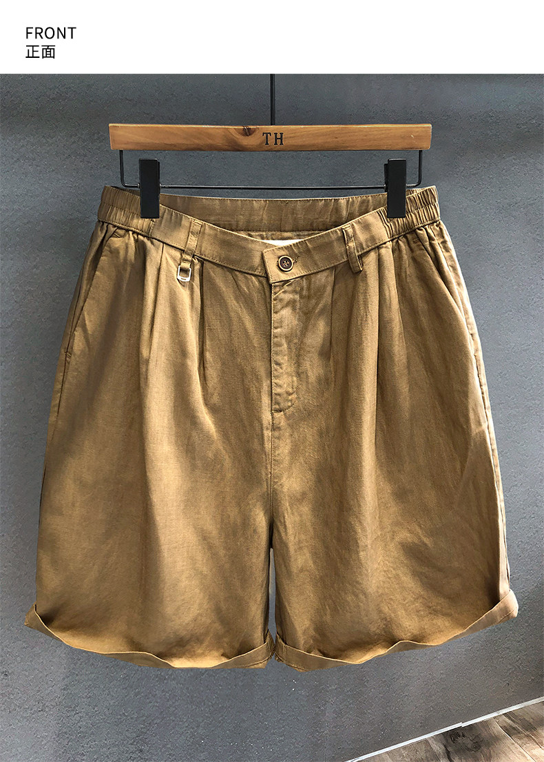160g冰涼桑絲感亞麻混紡薄款休閒短褲男士西褲2025寬鬆五分褲子男