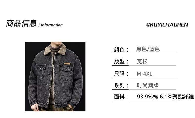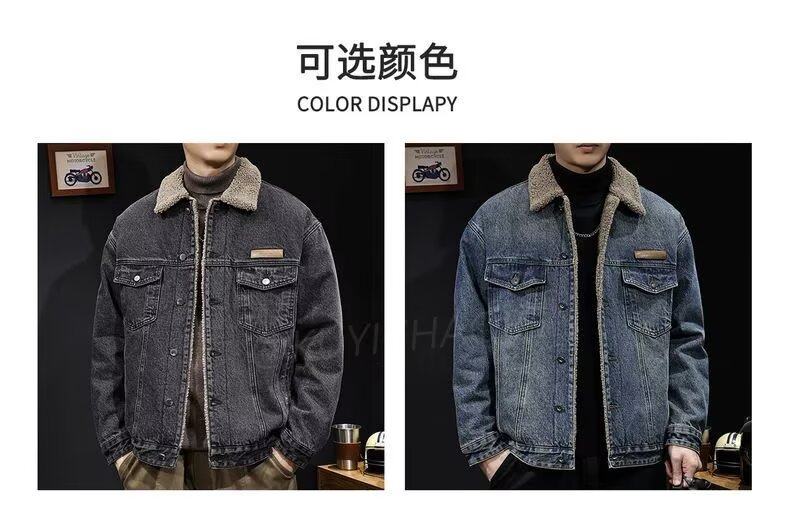 加絨加厚工裝牛仔外套男冬季潮牌寬鬆羊羔絨保暖棉服美式復古夾克