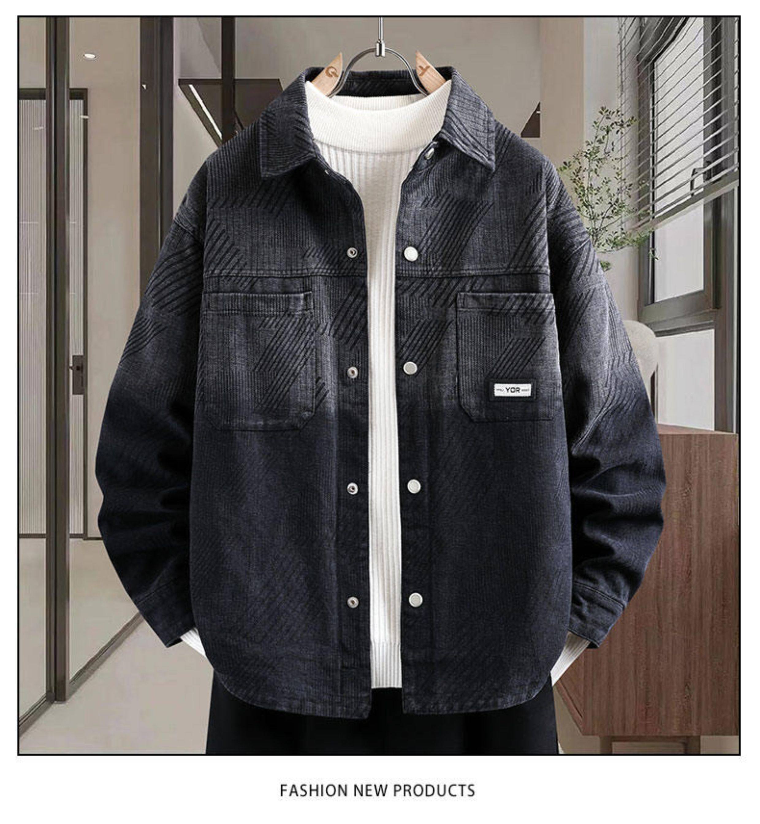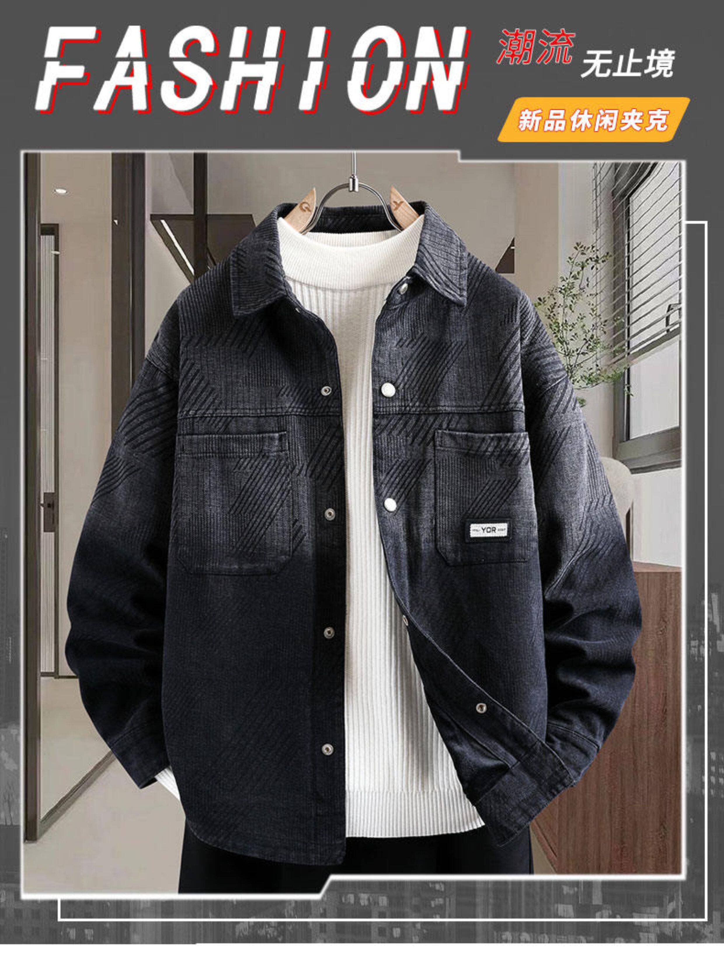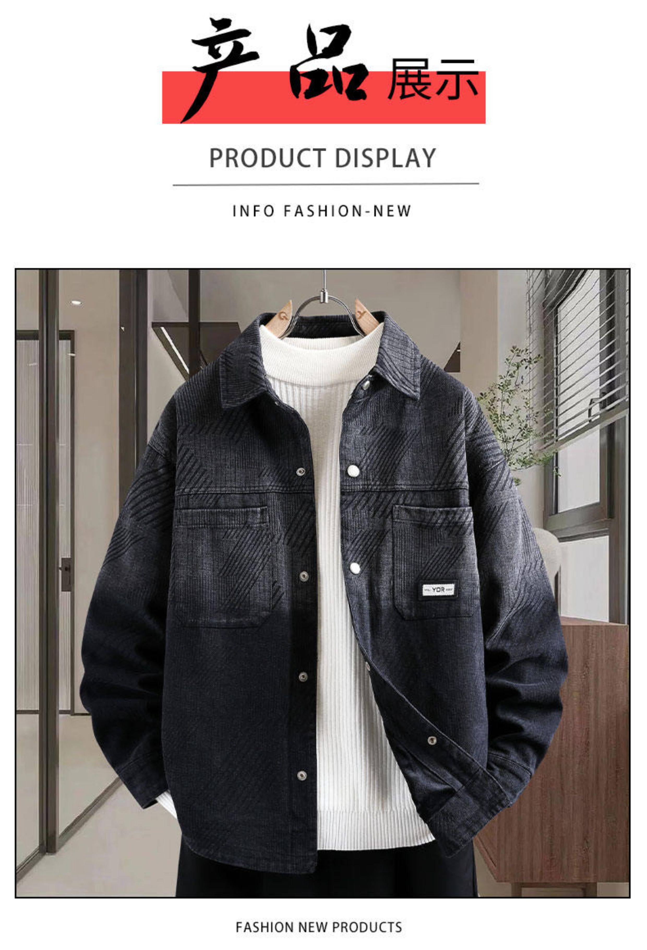 美式復古漸變色牛仔外套冬季加絨加厚高級感痞帥青少年保暖夾克