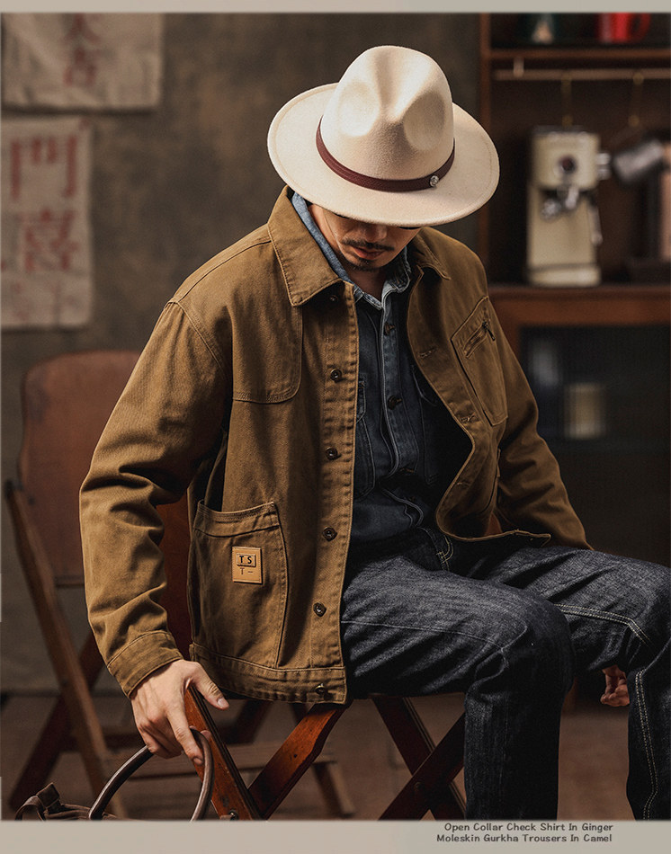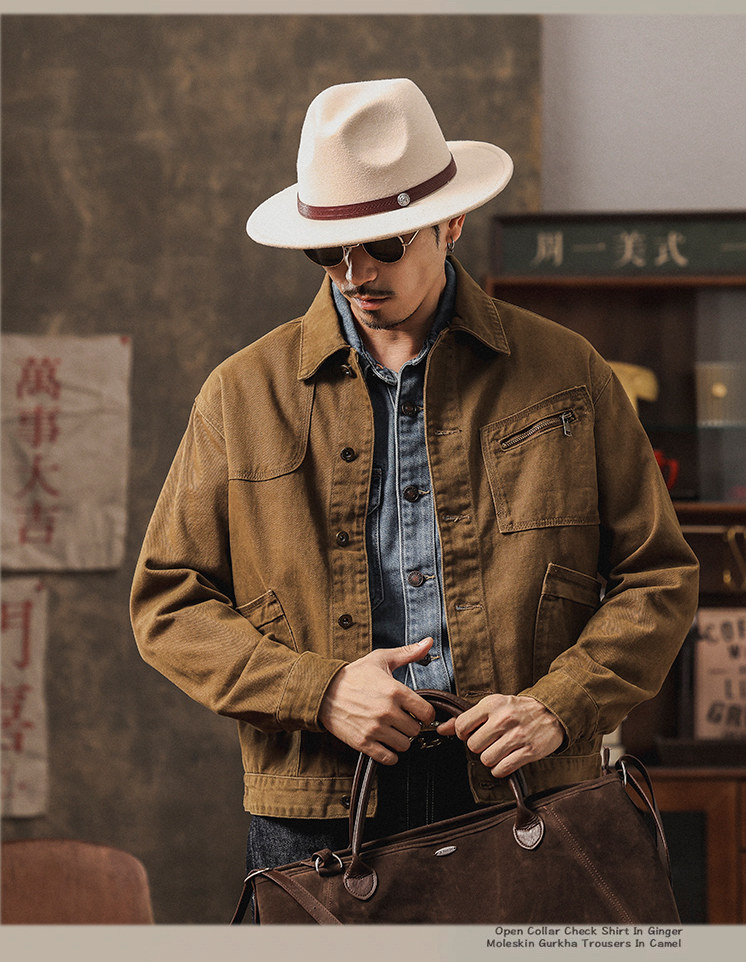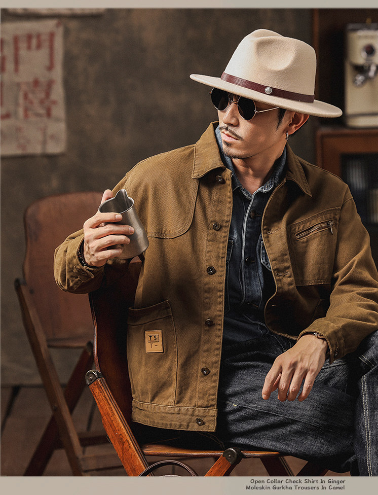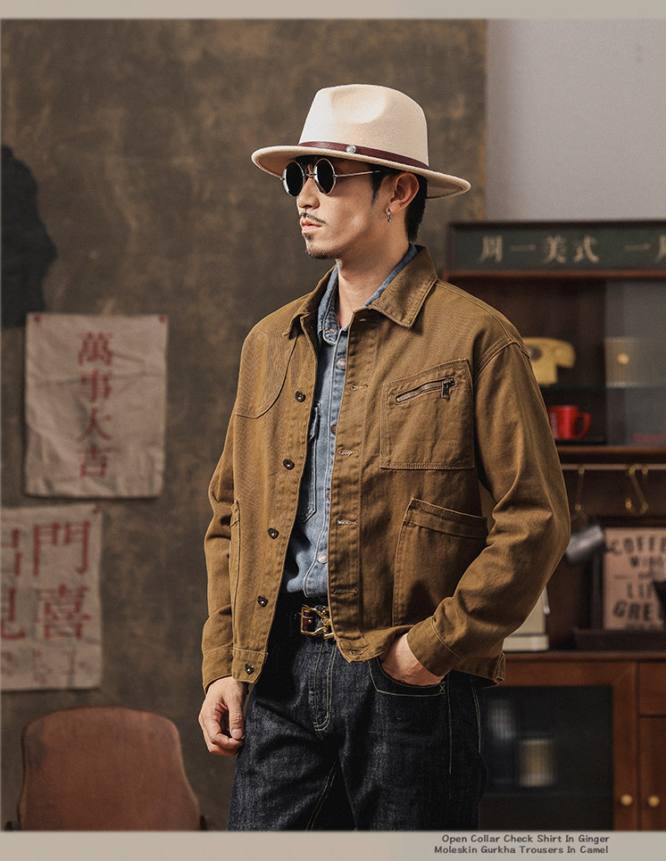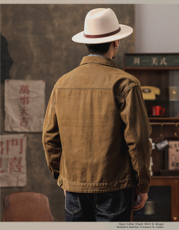 橡木棕美式硬漢工裝牛仔外套男春秋季新款寬鬆休閒潮痞帥夾克男士