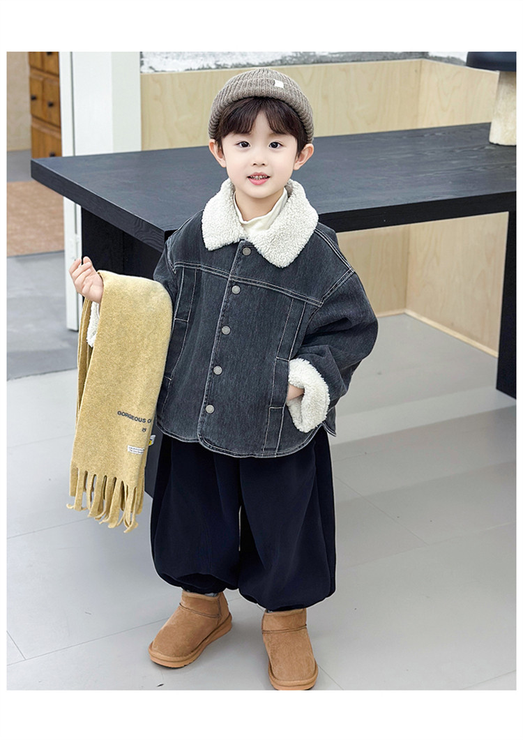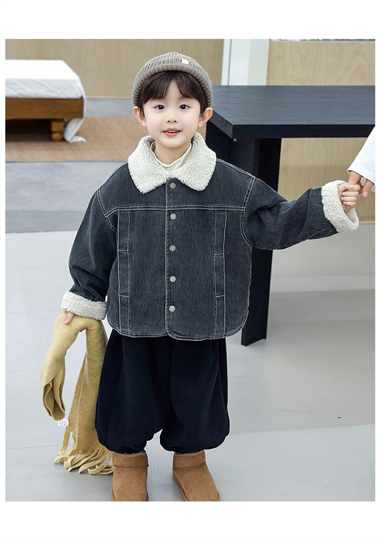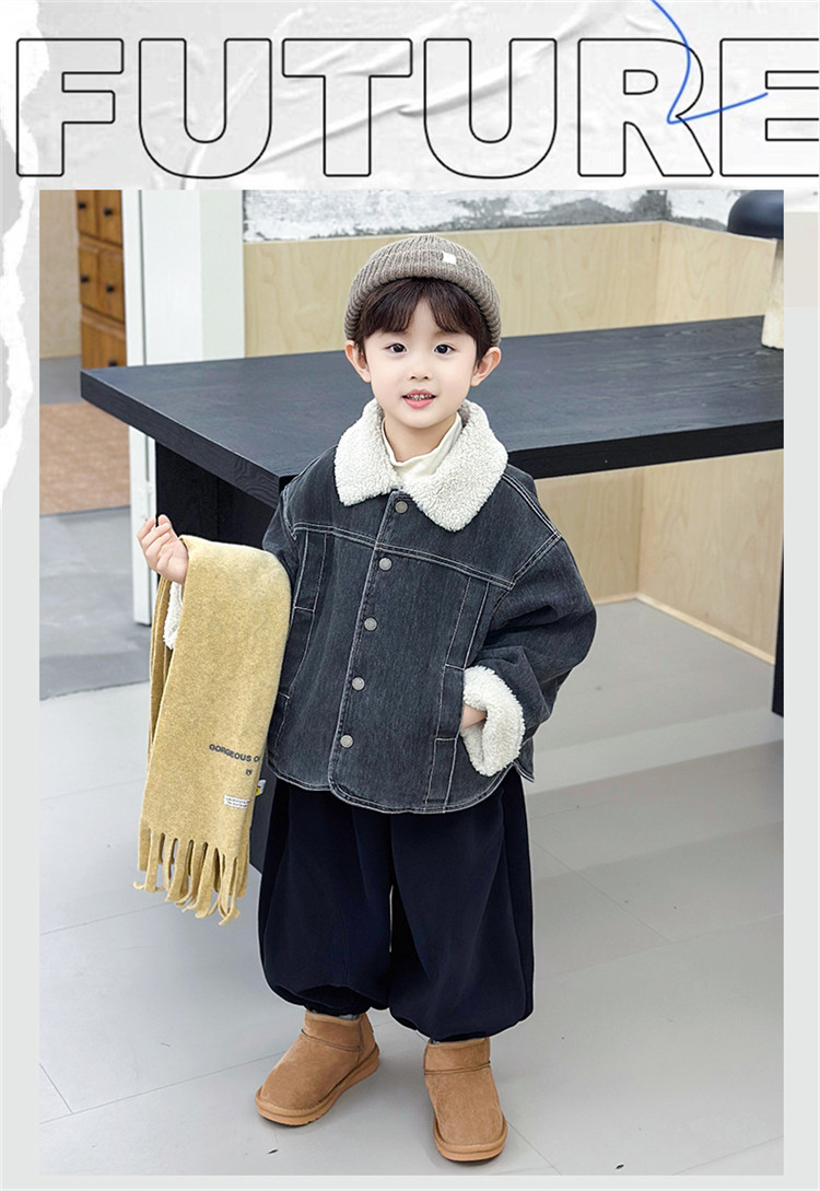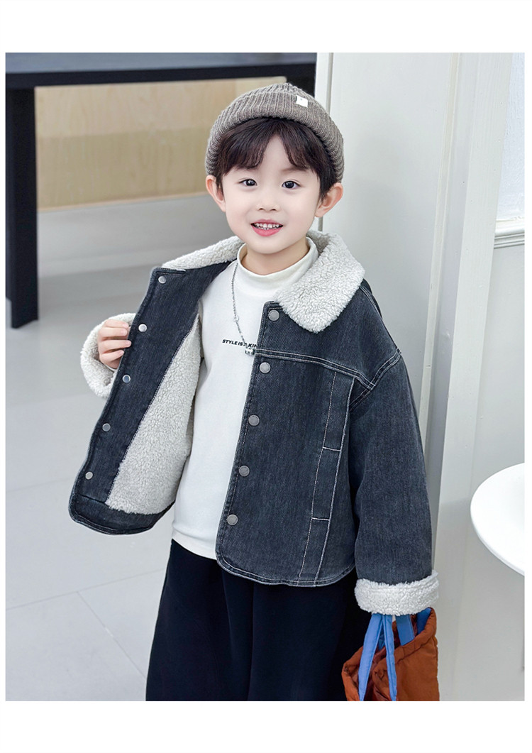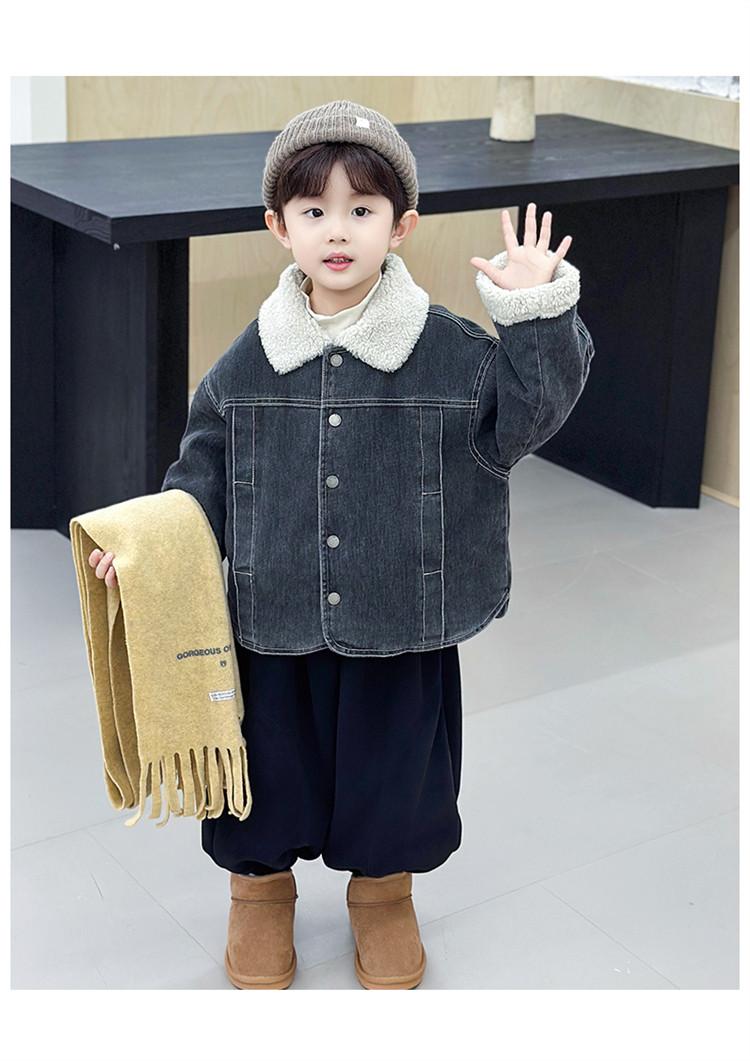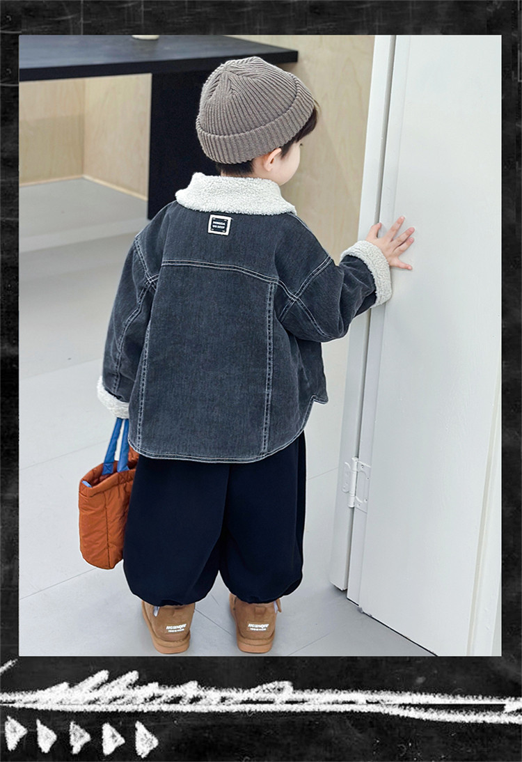 男童秋冬款加絨牛仔外套2025新款兒童加厚上衣男孩寶寶洋氣衣服潮