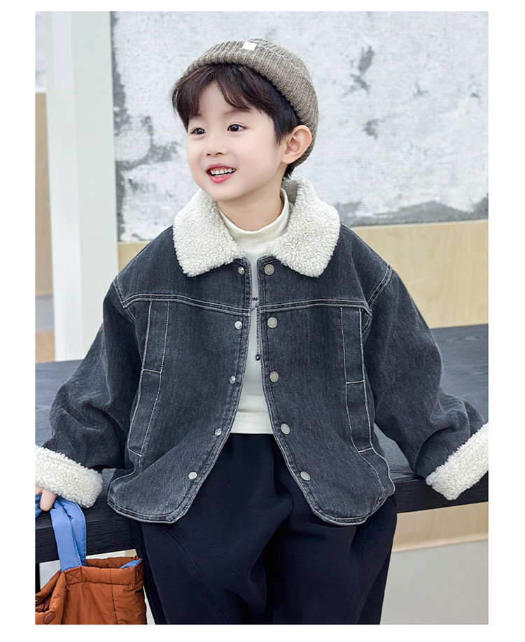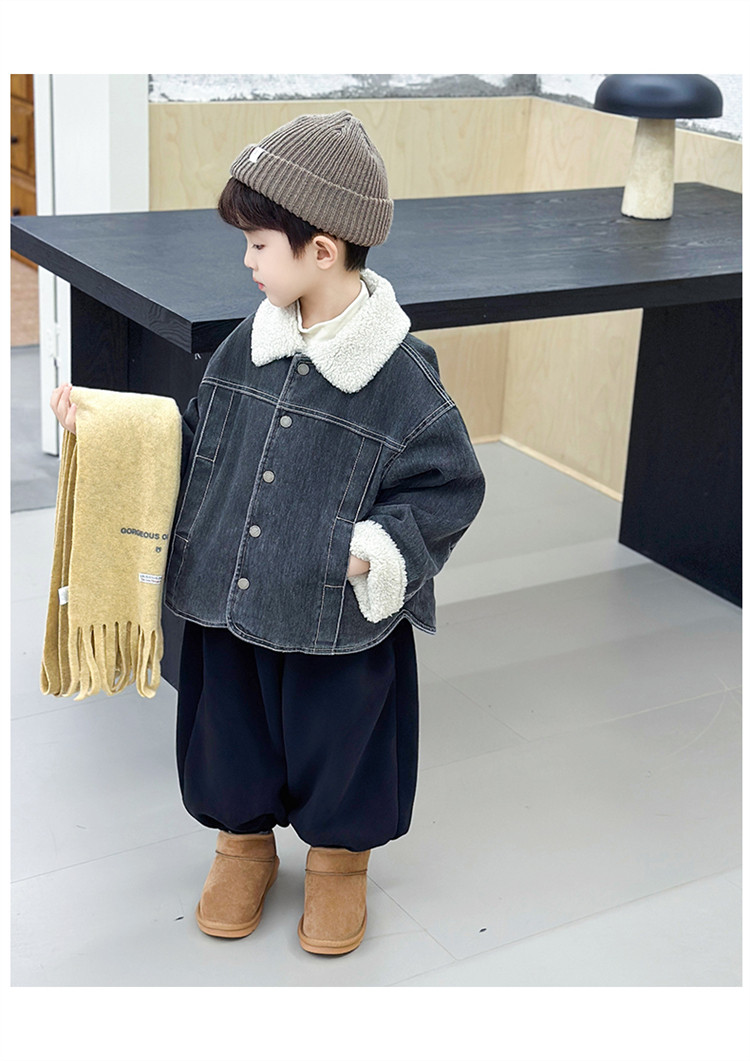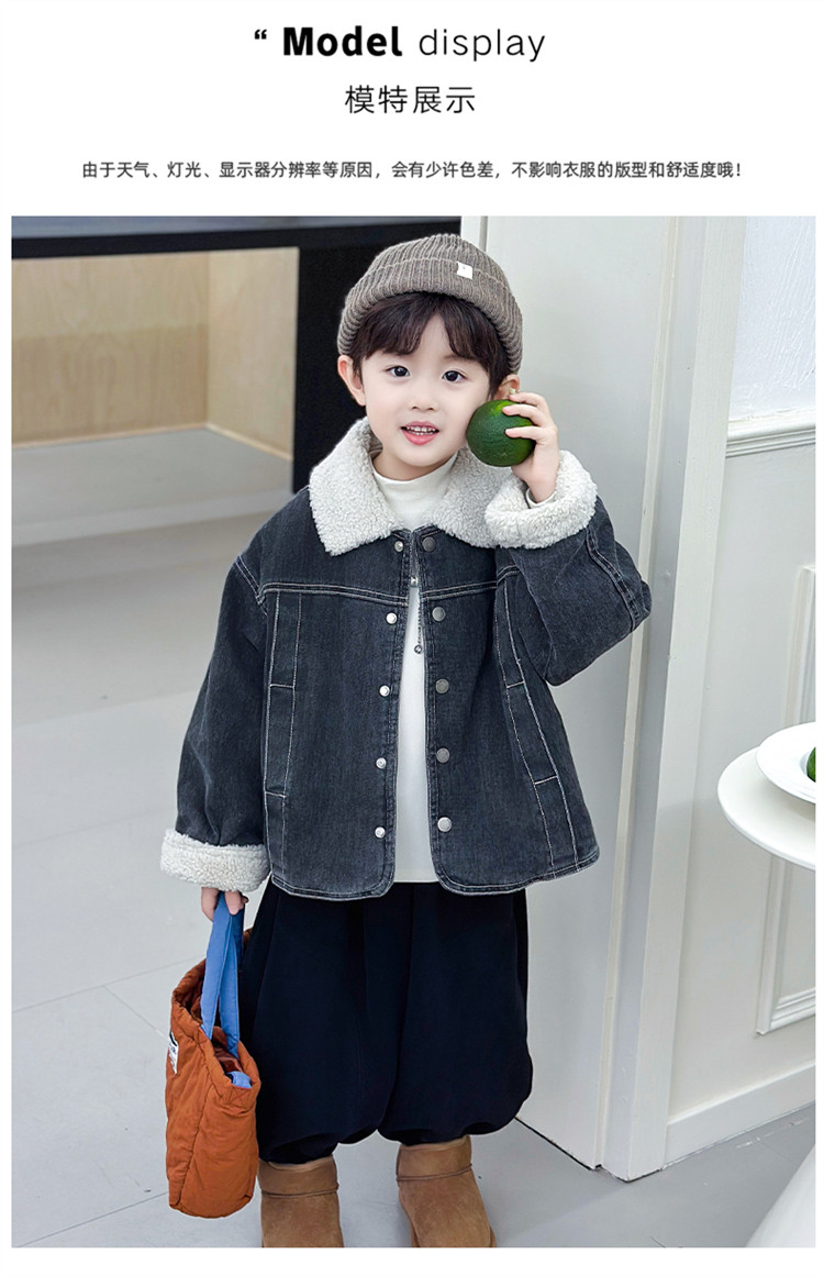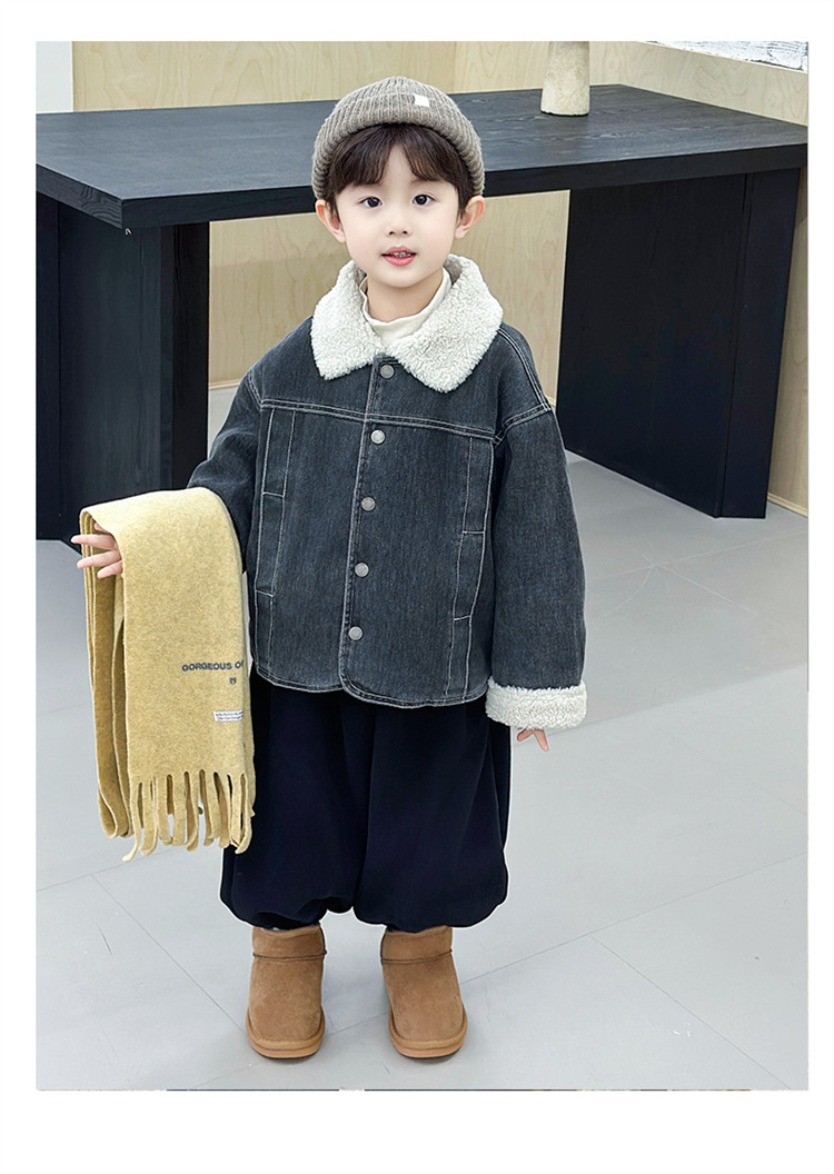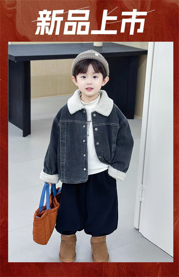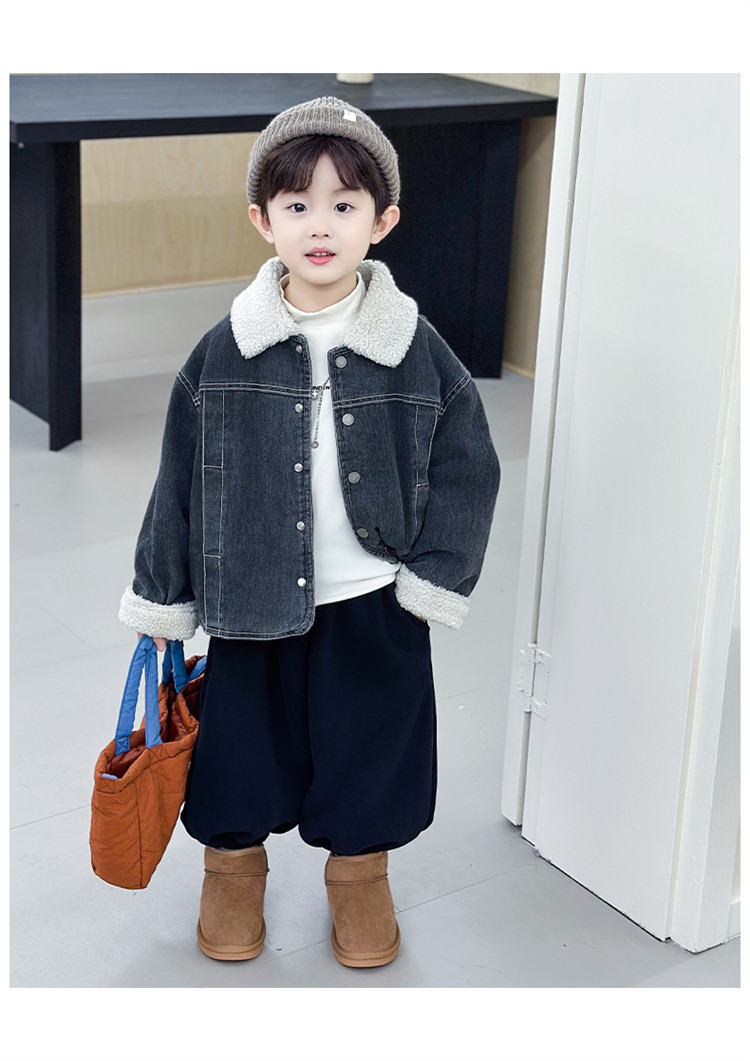 男童秋冬款加絨牛仔外套2025新款兒童加厚上衣男孩寶寶洋氣衣服潮
