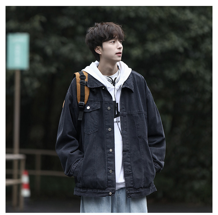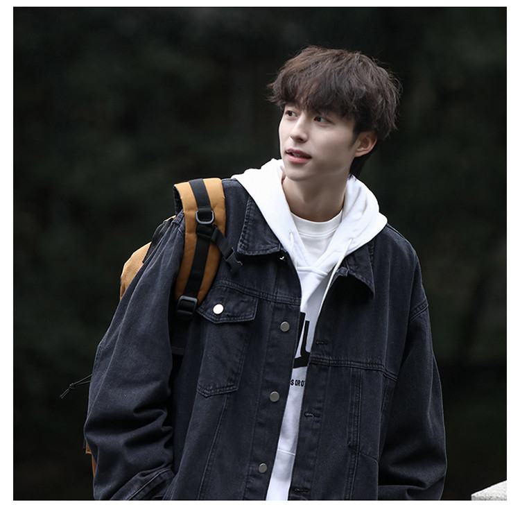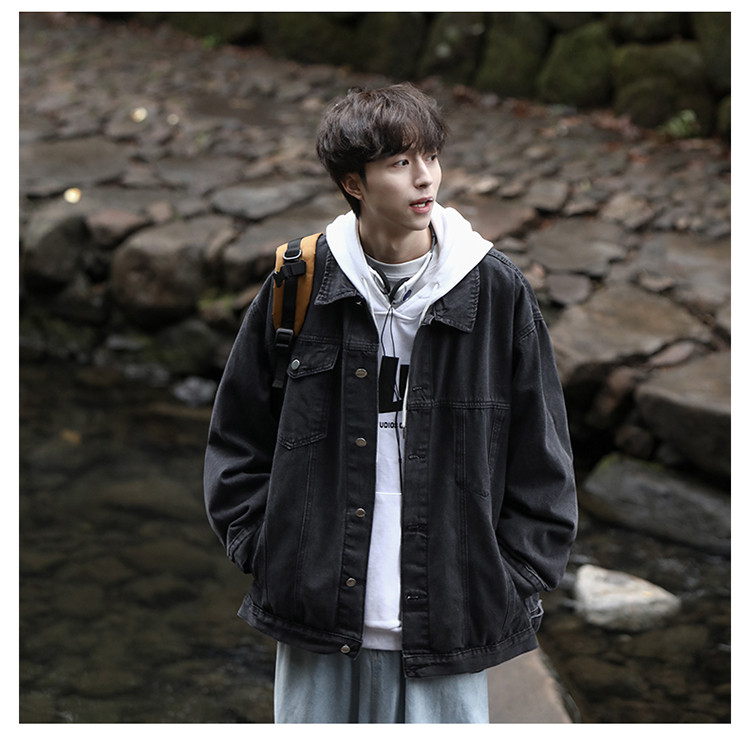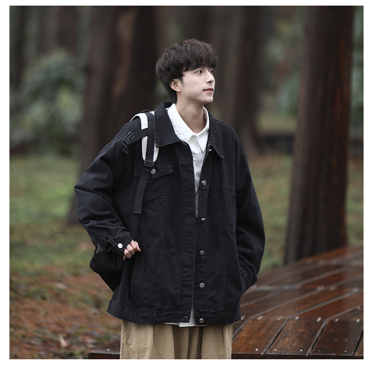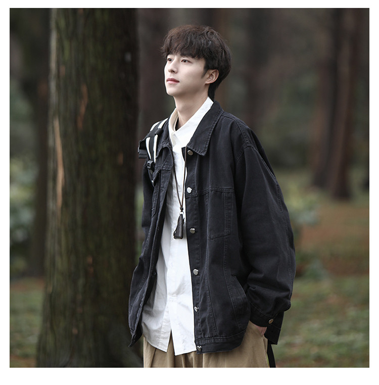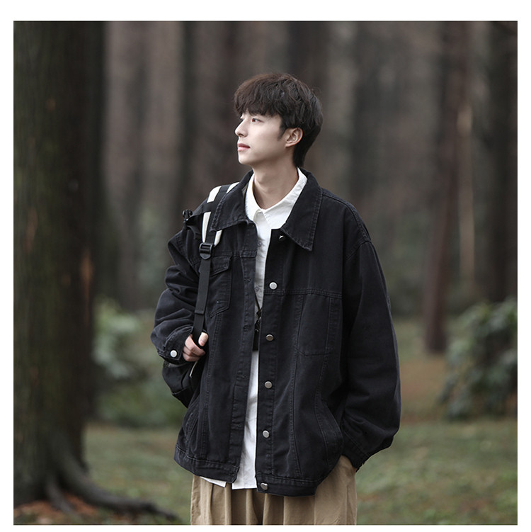 GENIOLAMODE黑色牛仔外套男士秋季新款日系cityboy工裝夾克潮上衣