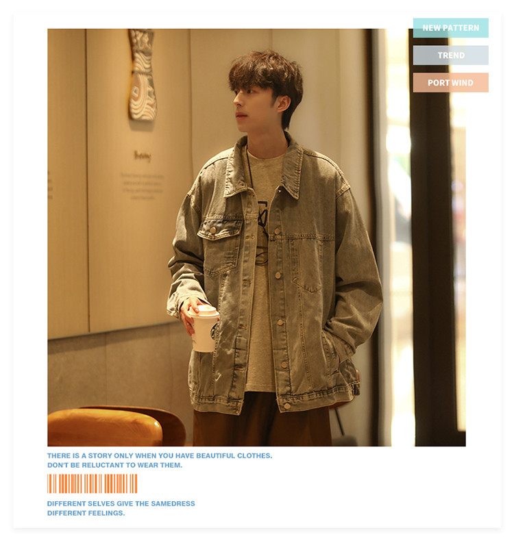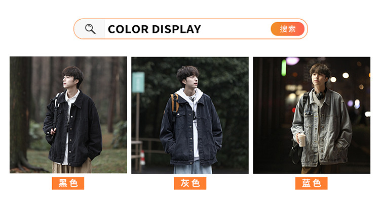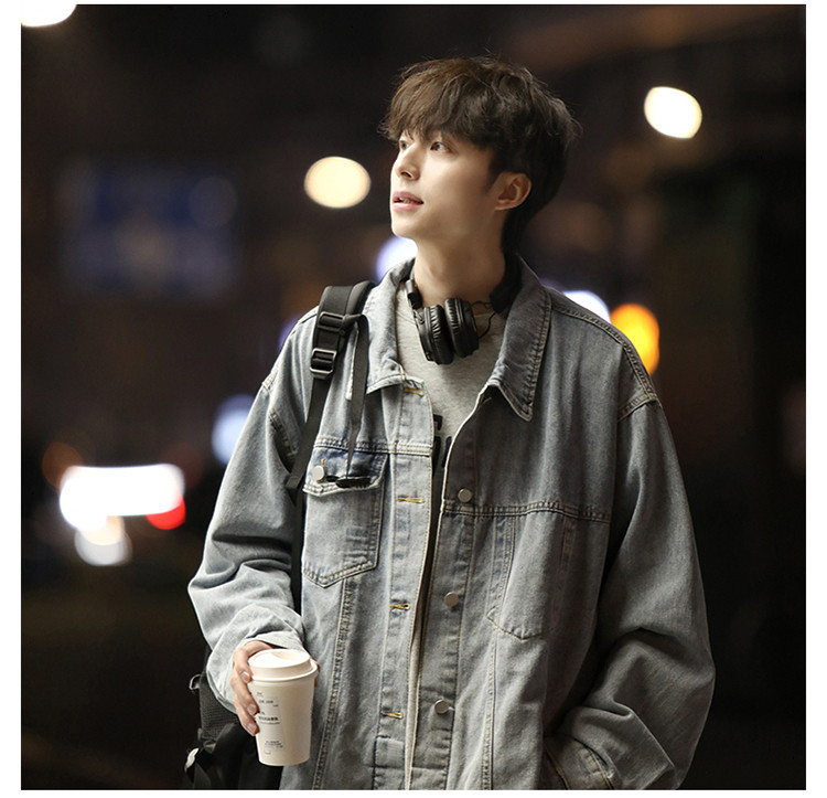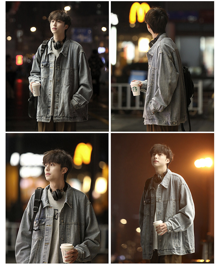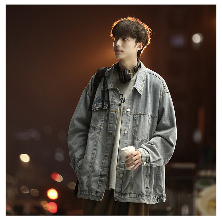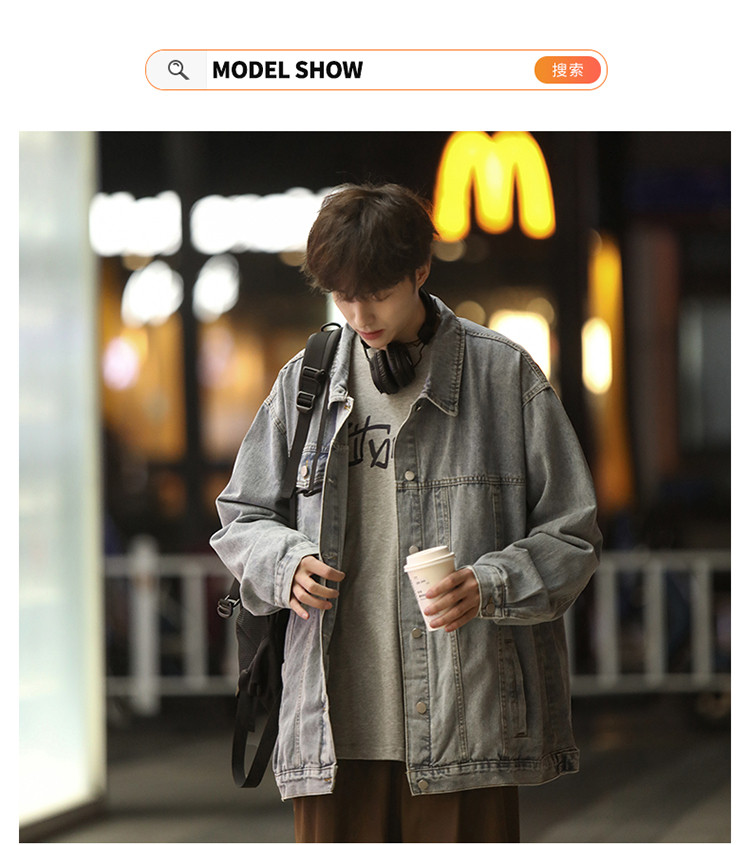 GENIOLAMODE黑色牛仔外套男士秋季新款日系cityboy工裝夾克潮上衣