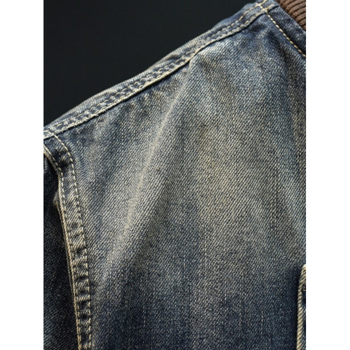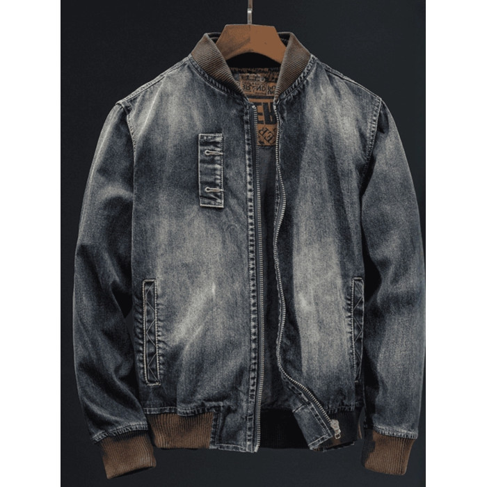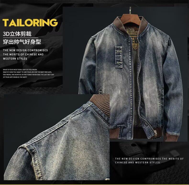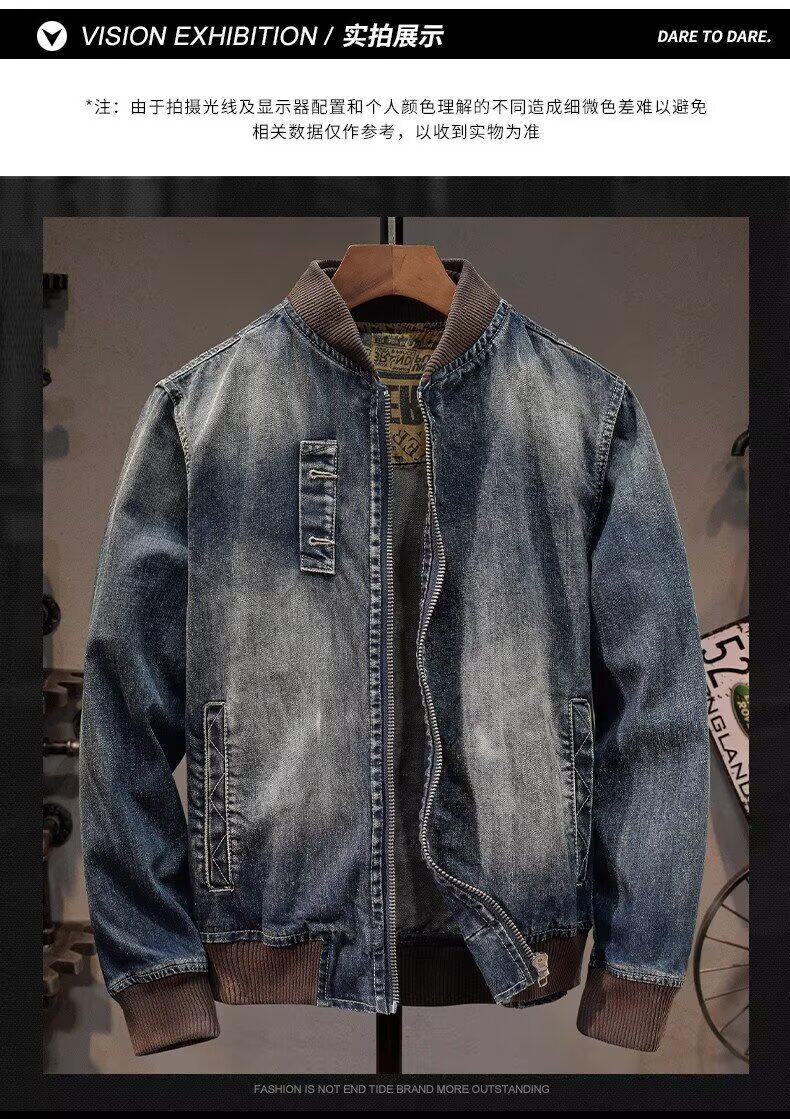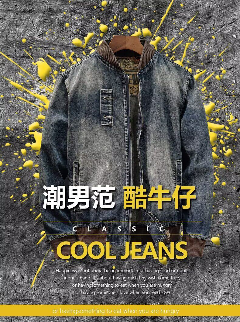 帥氣拉鍊牛仔外套男秋季潮流美式復古棒球領百搭騎行機車夾克上衣