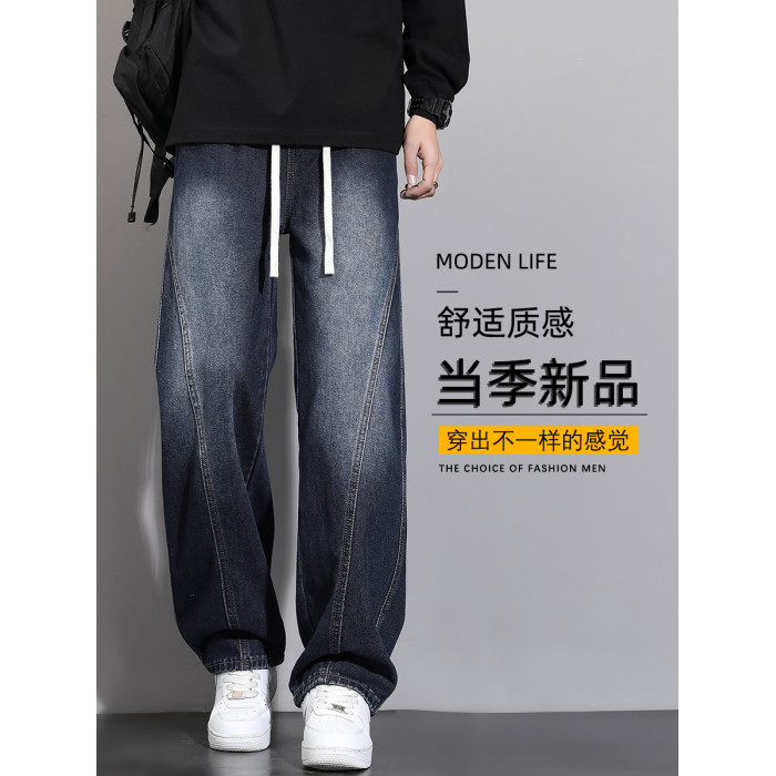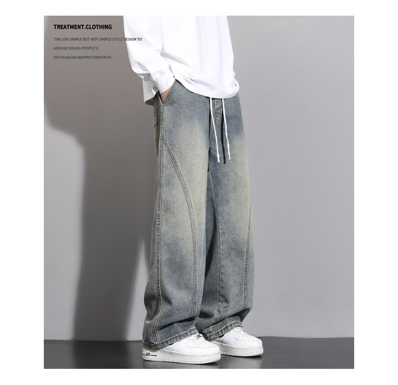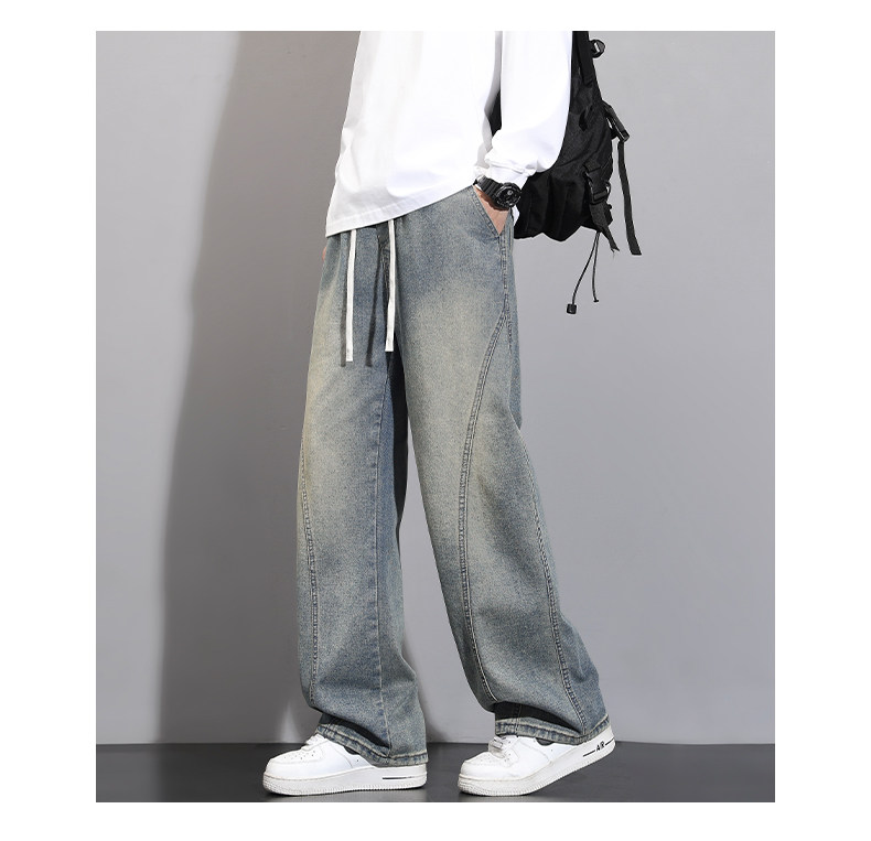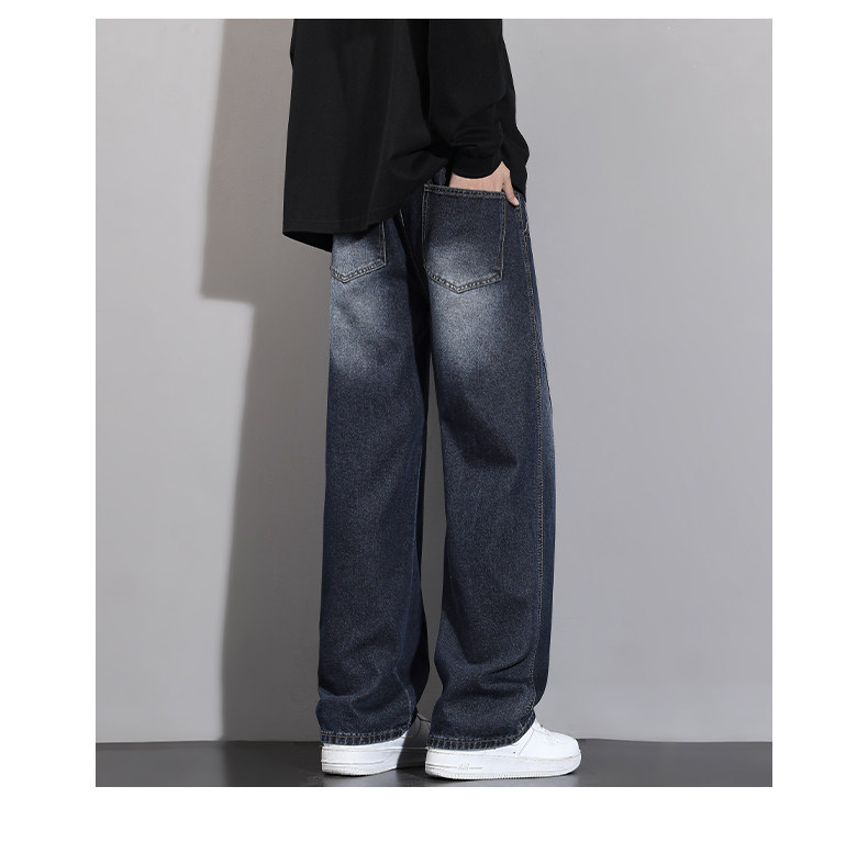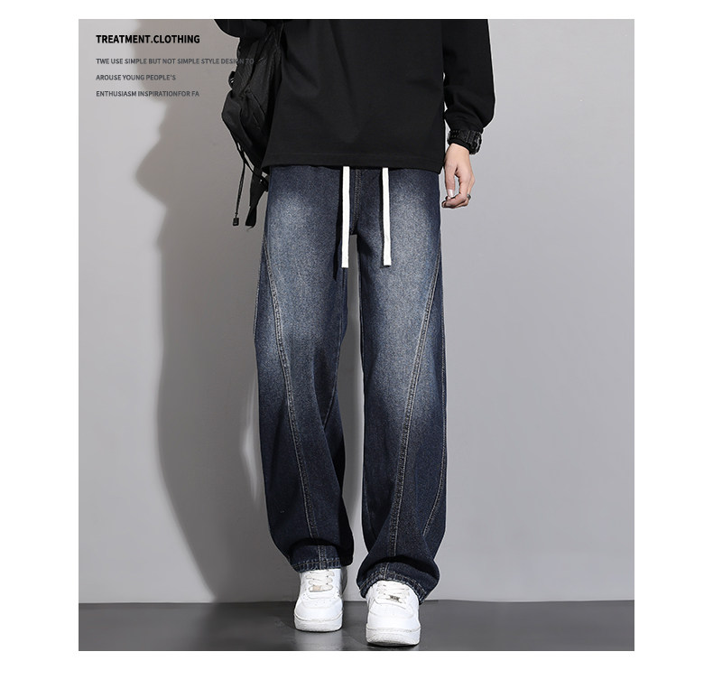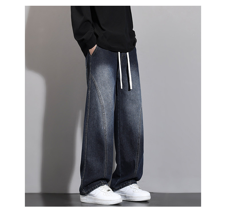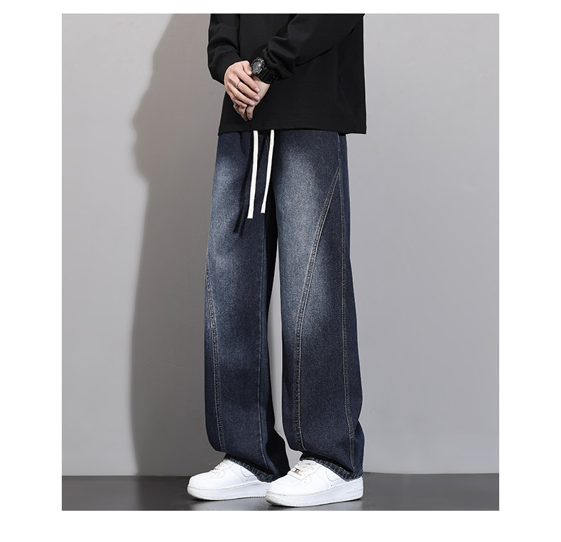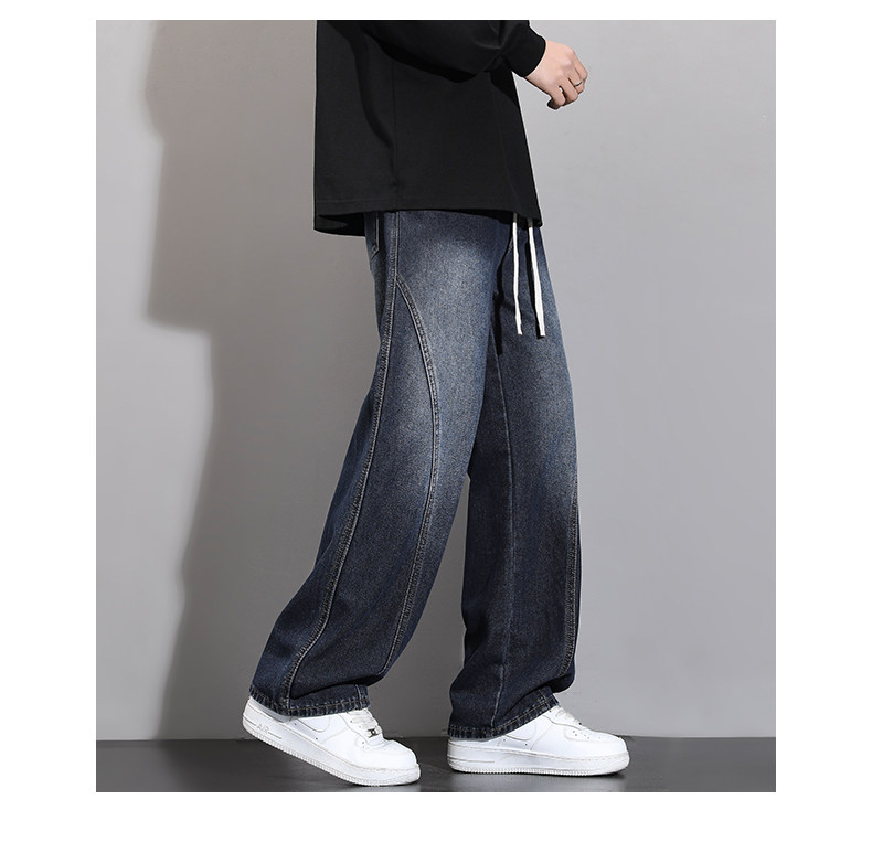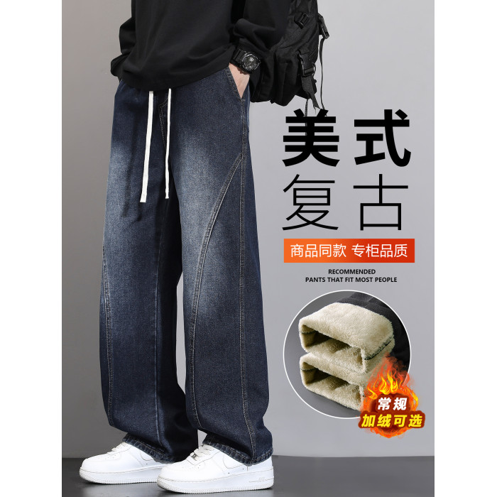 加絨加厚彎刀牛仔褲男士2025秋冬新款美式高街潮流寬鬆直筒長褲子