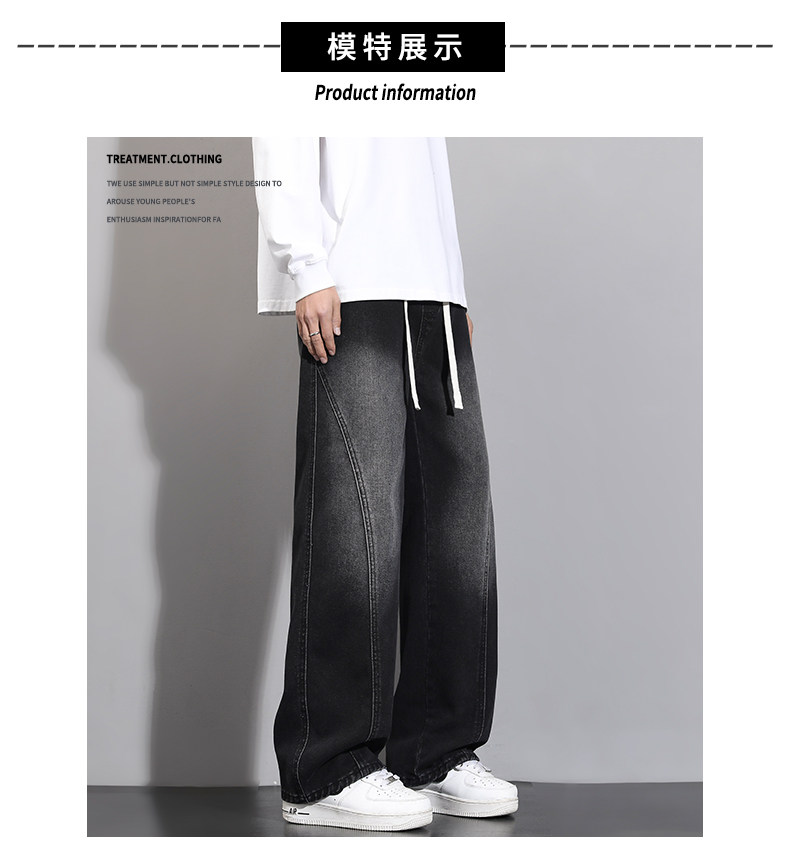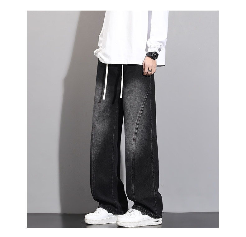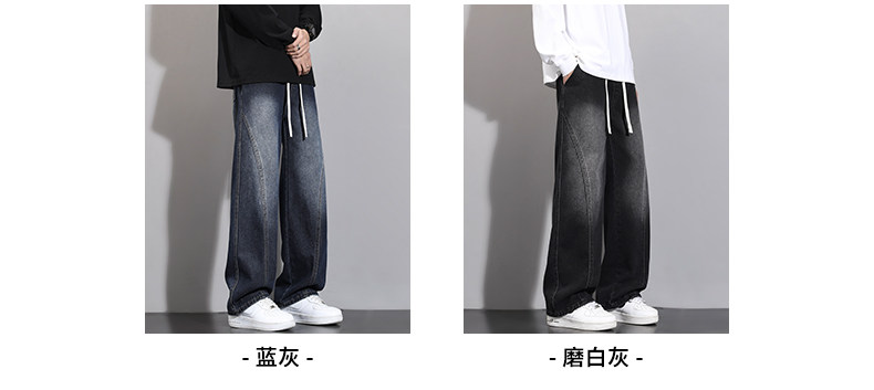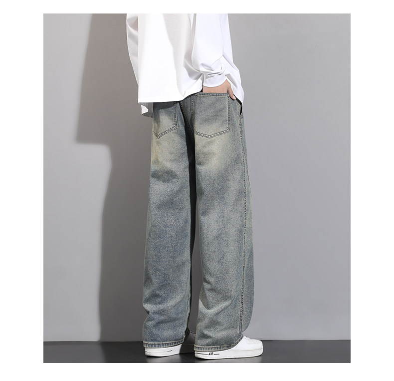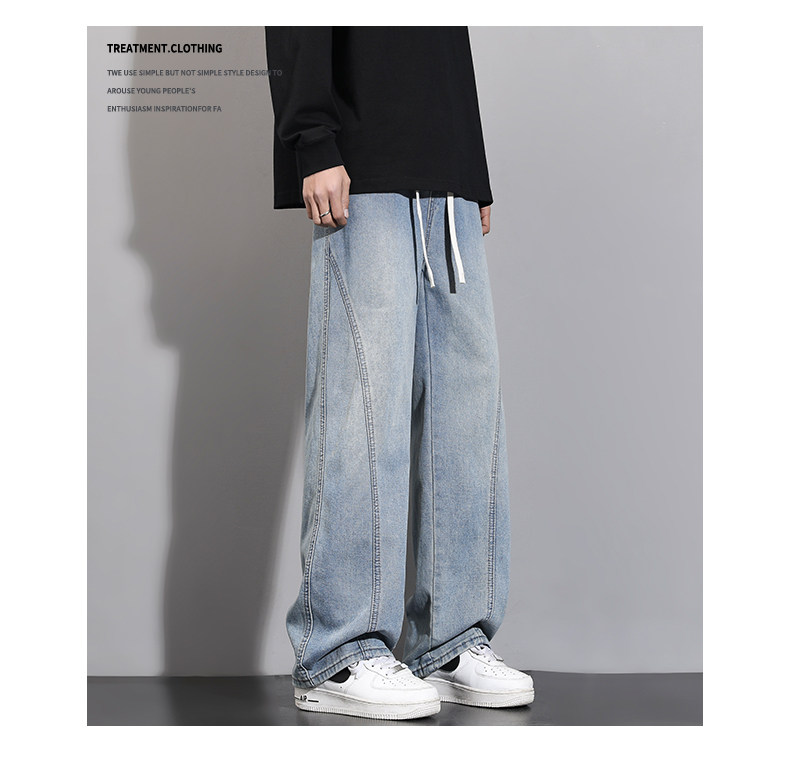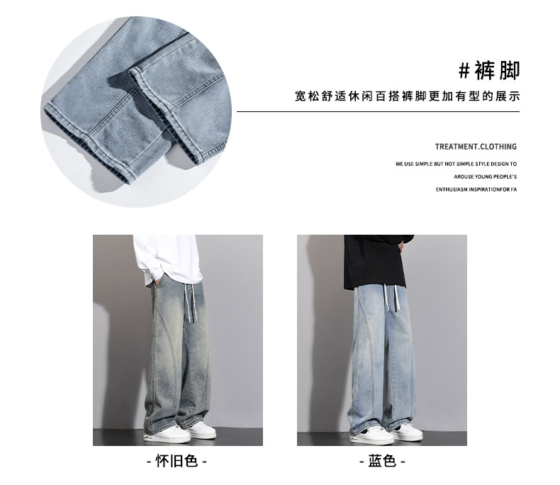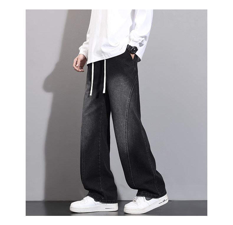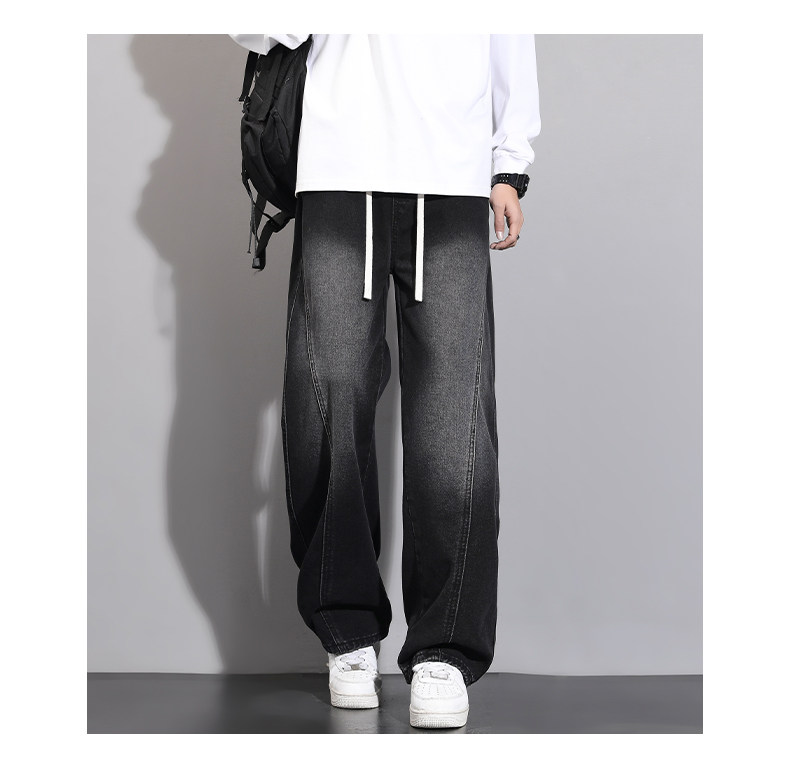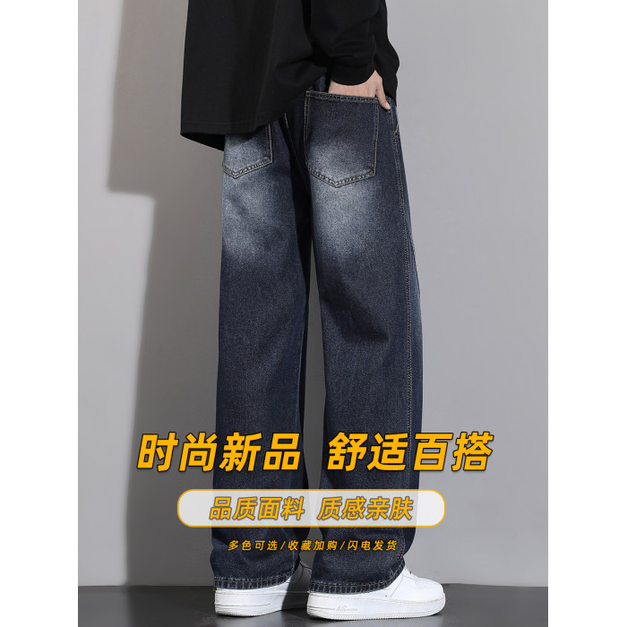 加絨加厚彎刀牛仔褲男士2025秋冬新款美式高街潮流寬鬆直筒長褲子