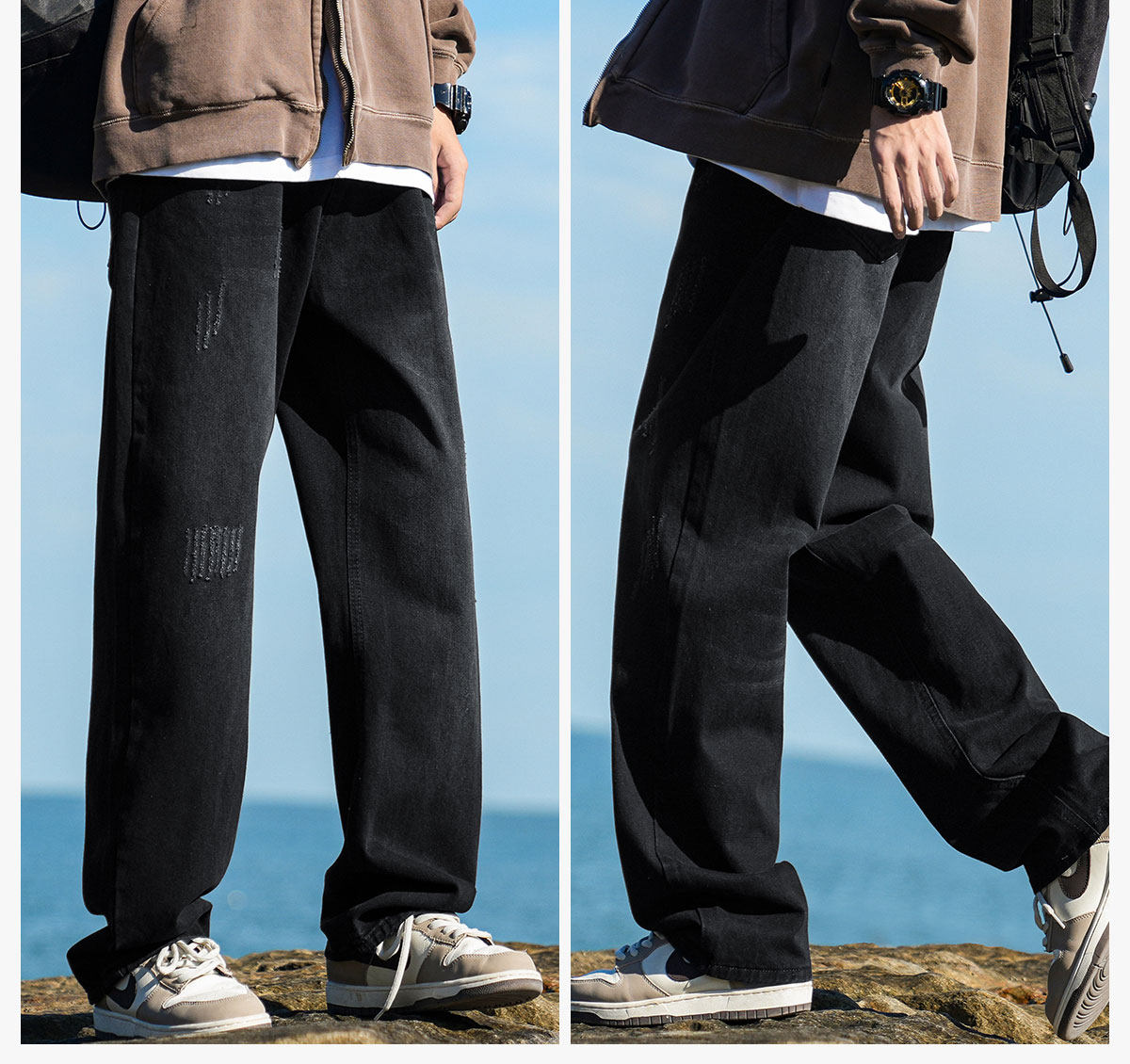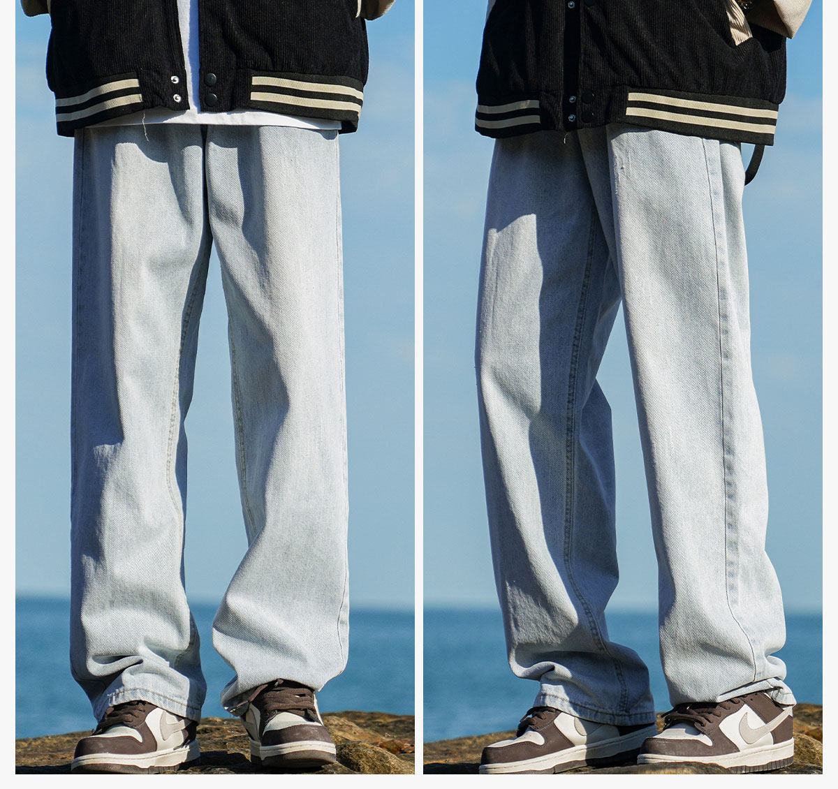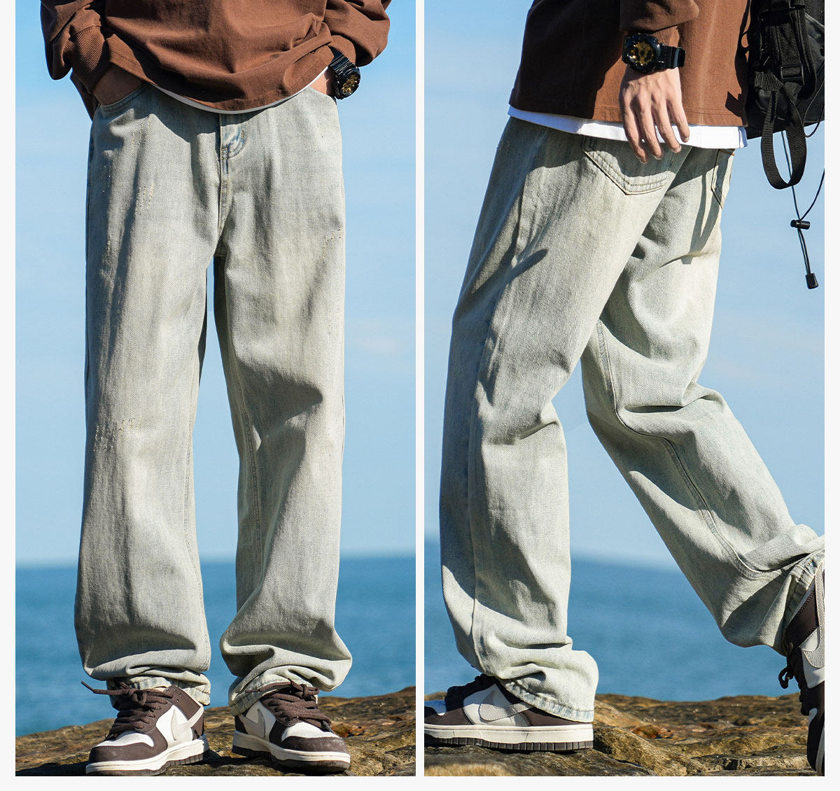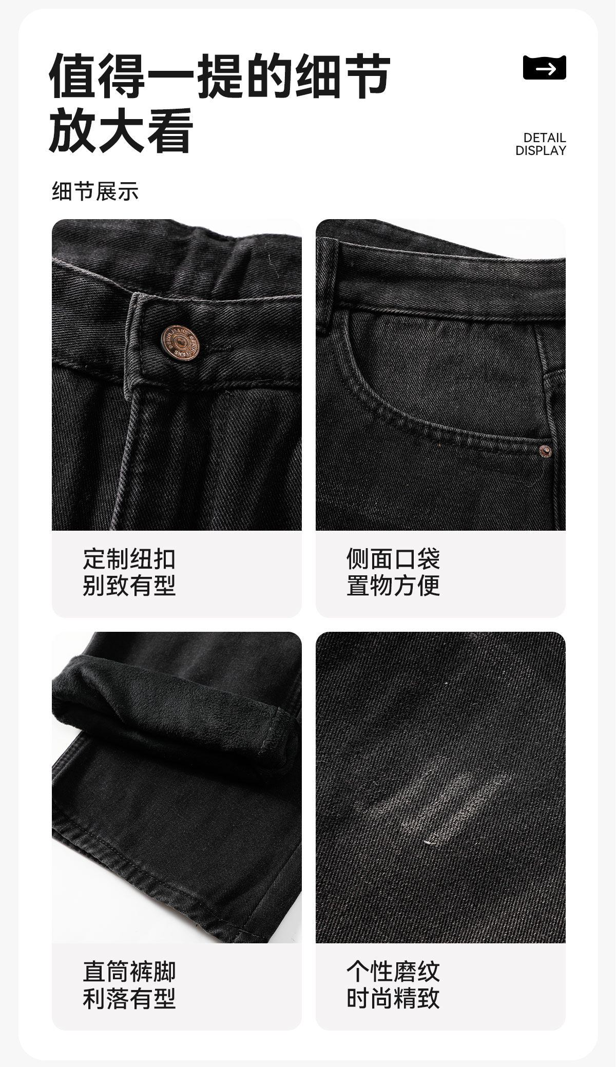 貓人直筒加絨復古牛仔褲男款冬季美式濶腿休閒褲防風加厚保暖褲子