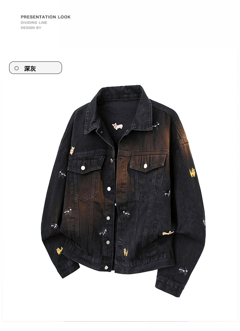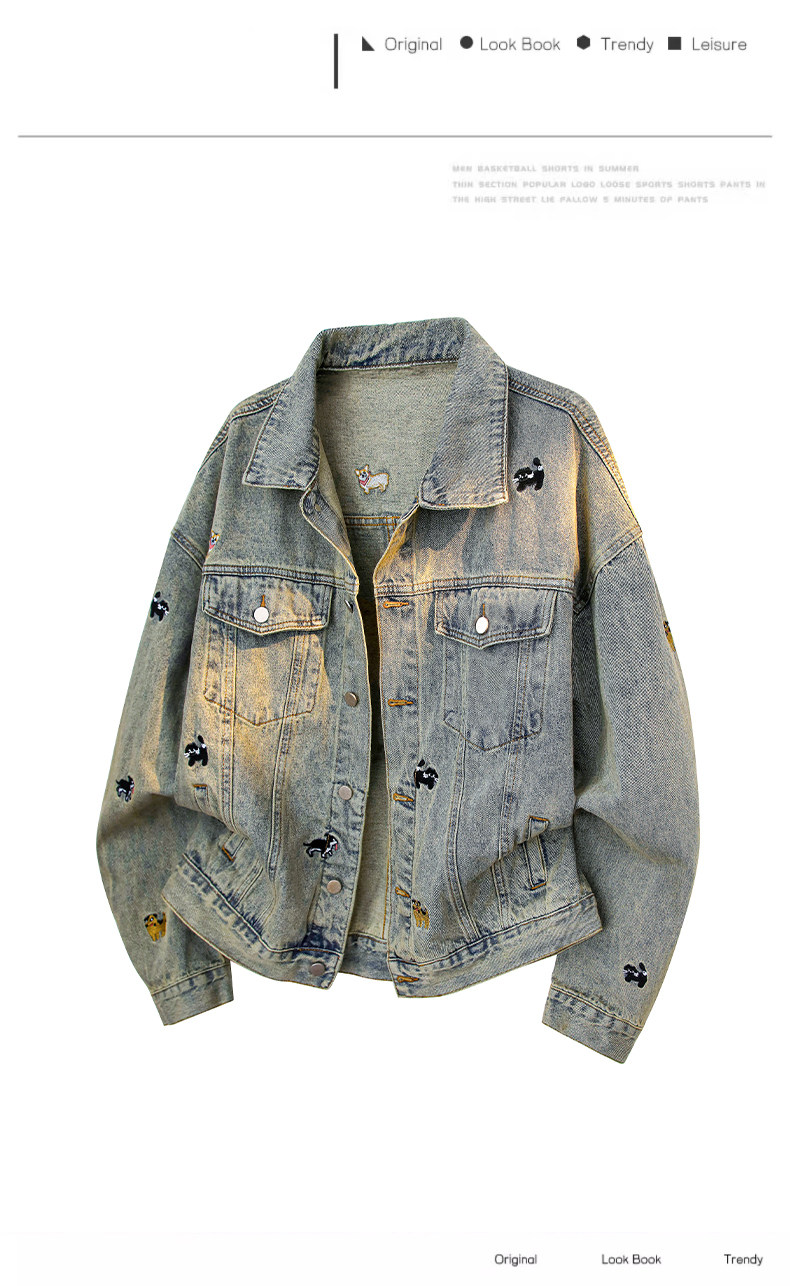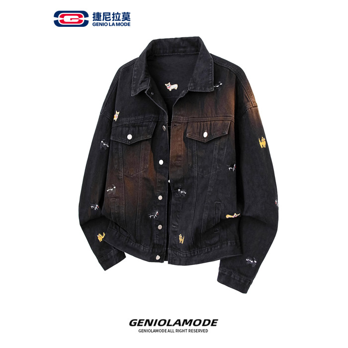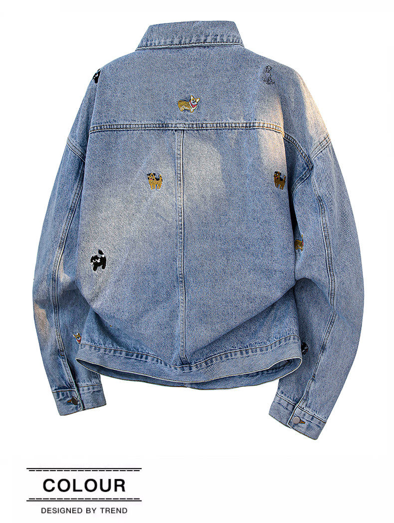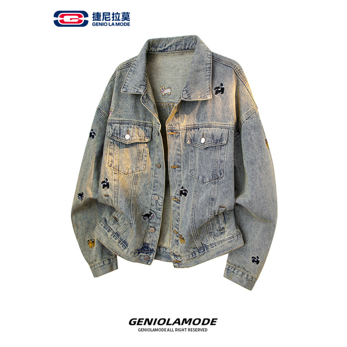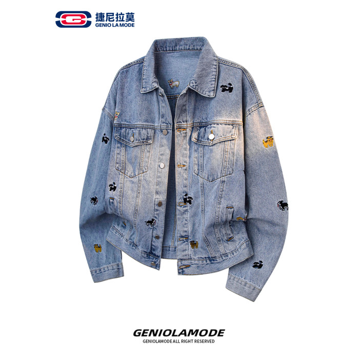 【敖瑞鵬代言】GENIOLAMODE刺綉小狗牛仔外套男女秋季學院風休閒