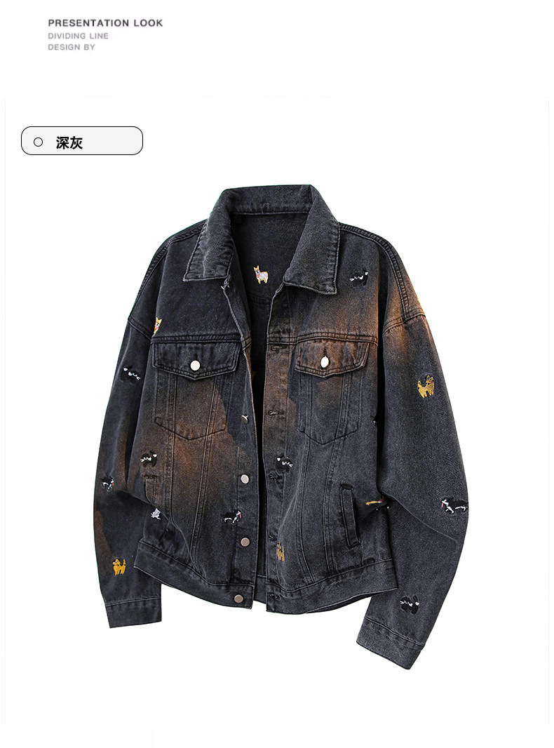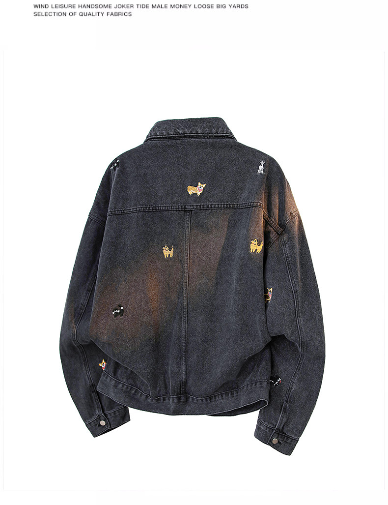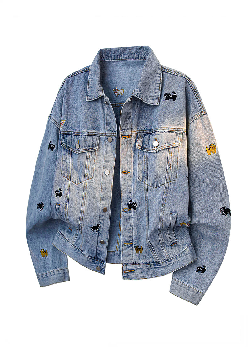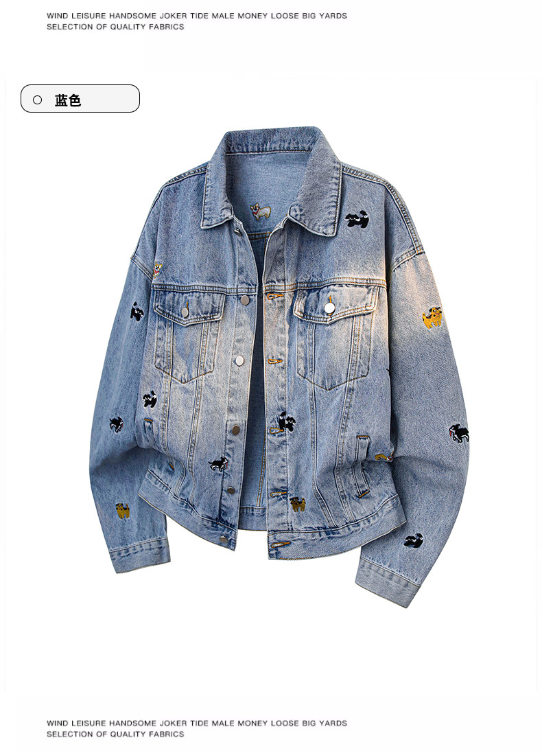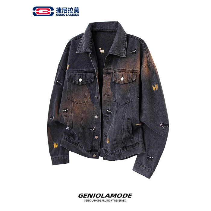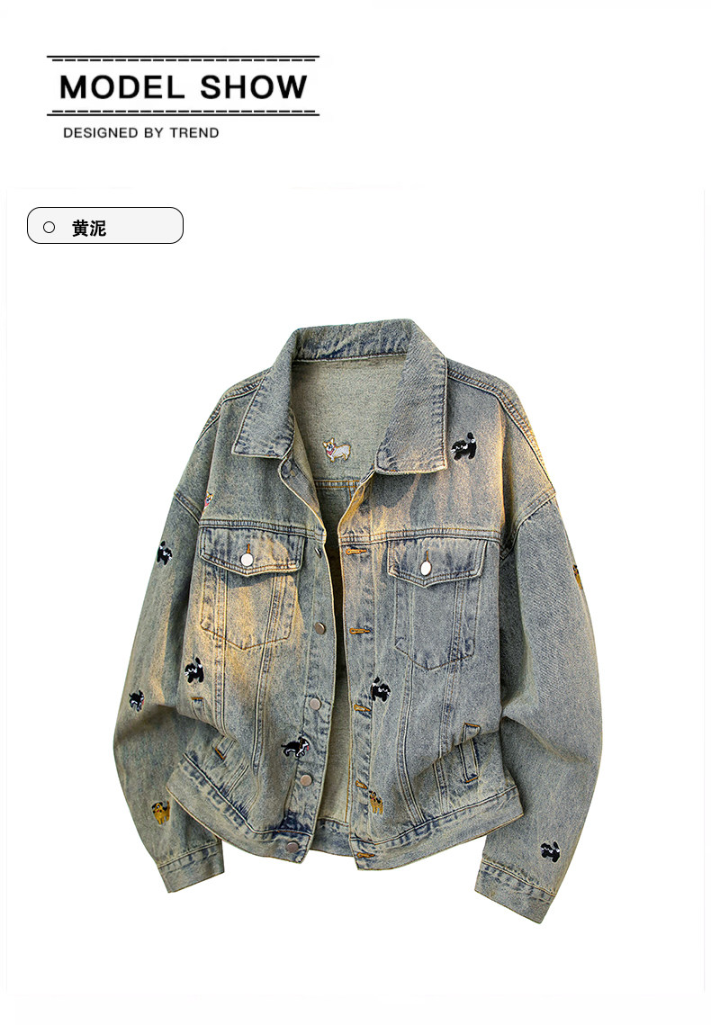 【敖瑞鵬代言】GENIOLAMODE刺綉小狗牛仔外套男女秋季學院風休閒