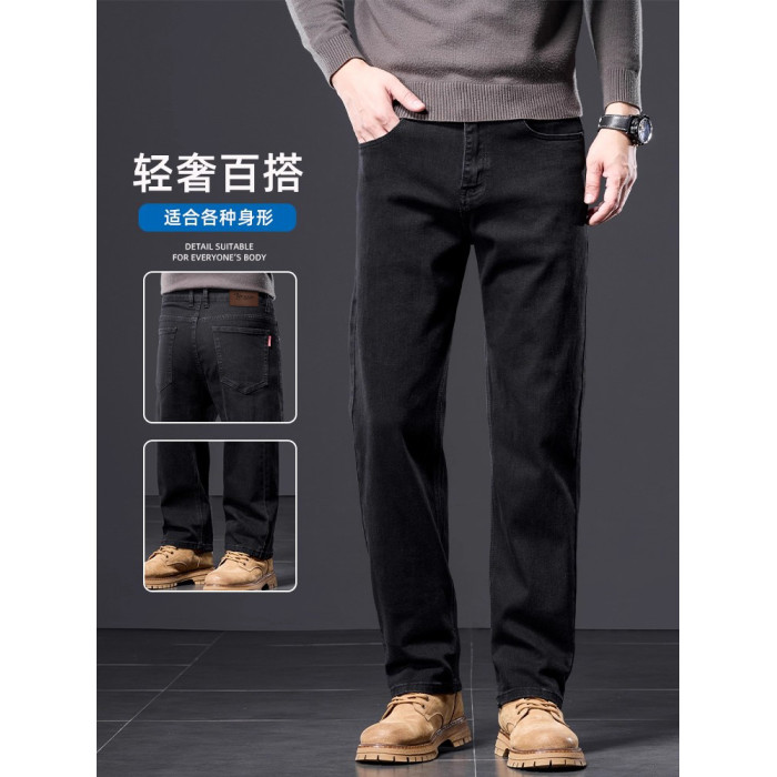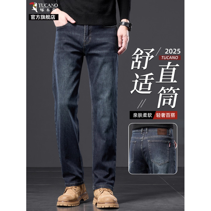 啄木鳥官方旗艦牛仔褲男士秋冬季寬鬆直筒中年爸爸加絨加厚褲子K