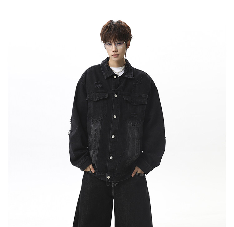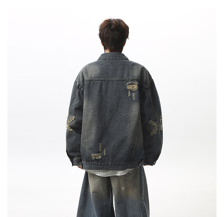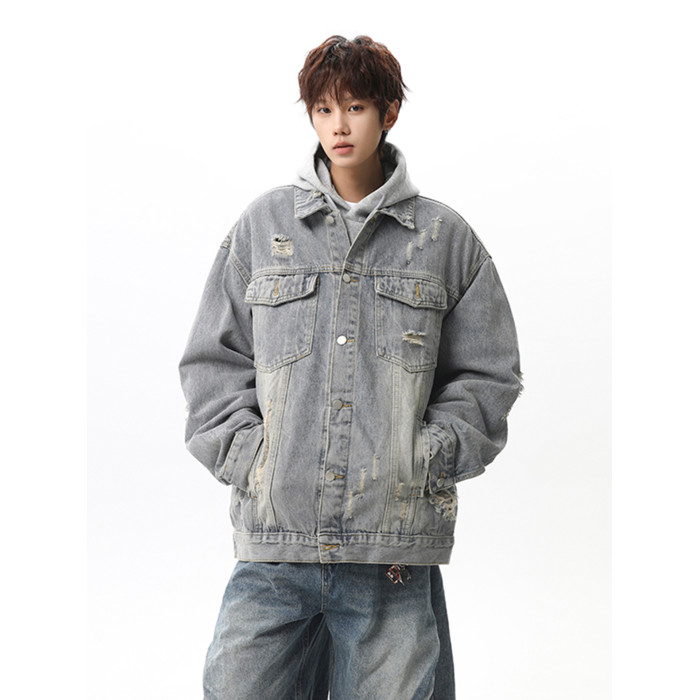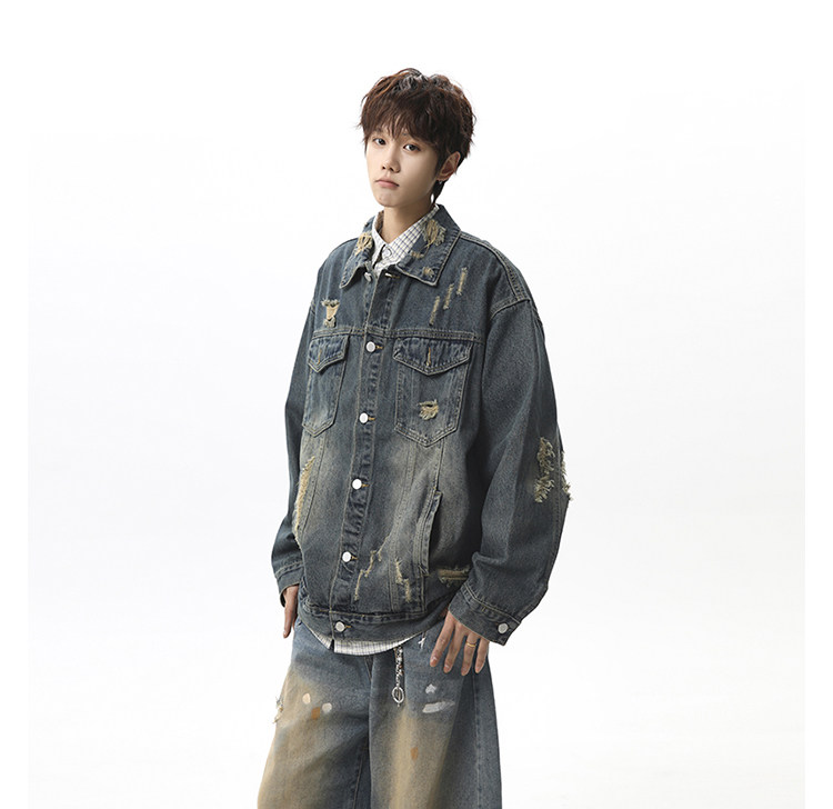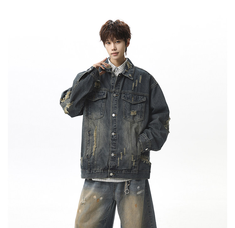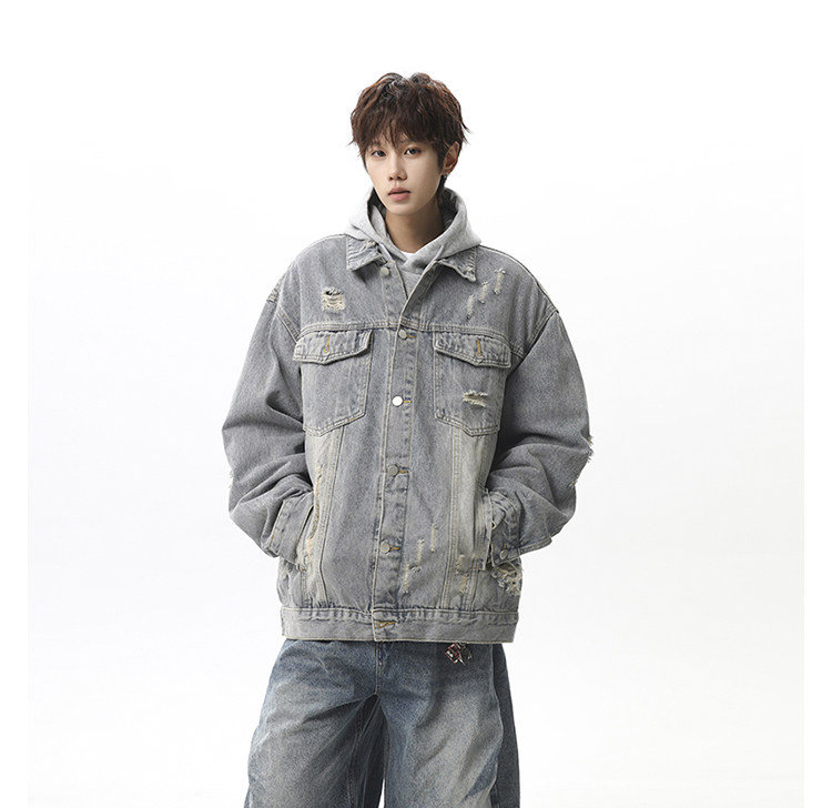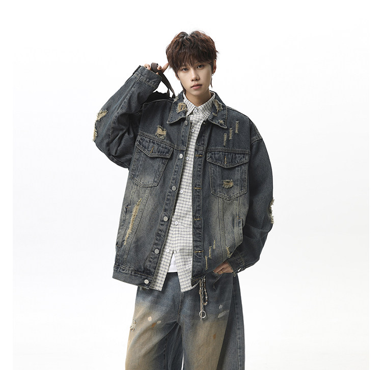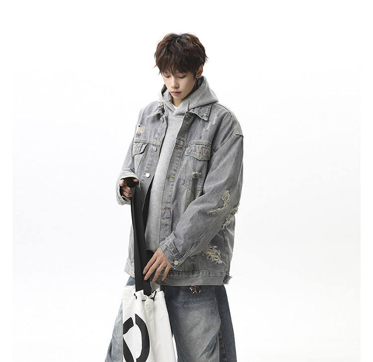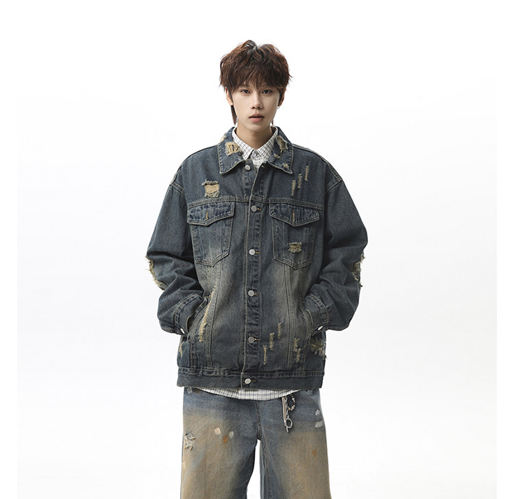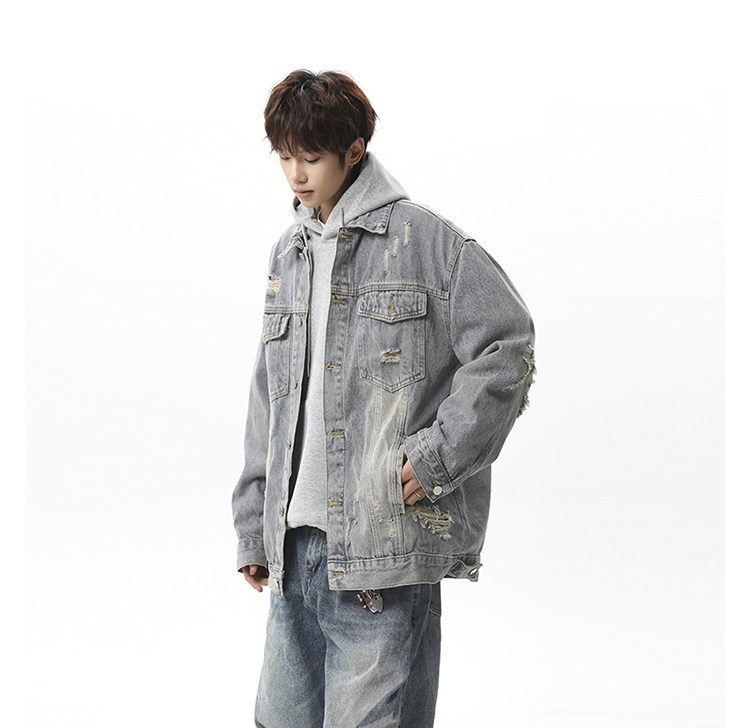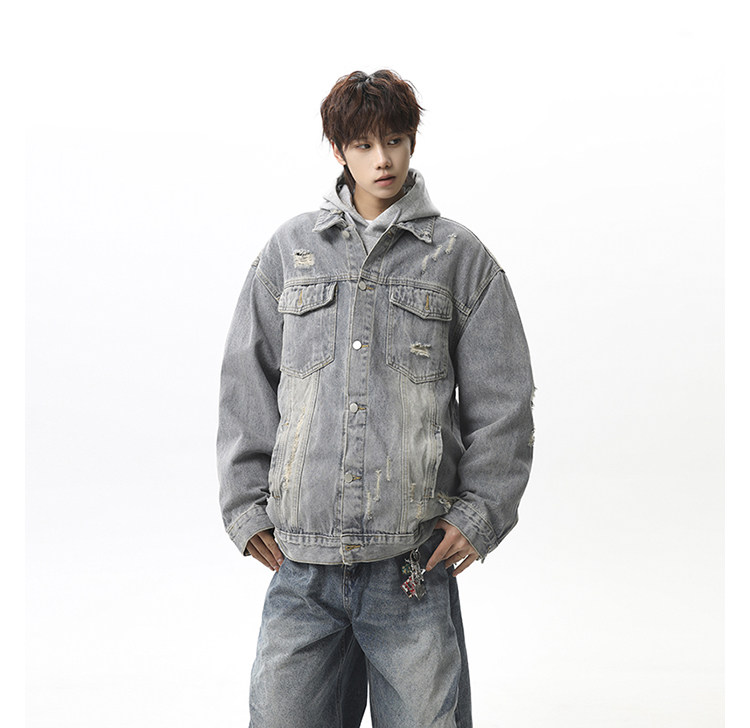 美式水洗破洞牛仔外套男春高街痞帥vibe外套復古設計感青少年夾克