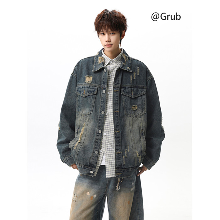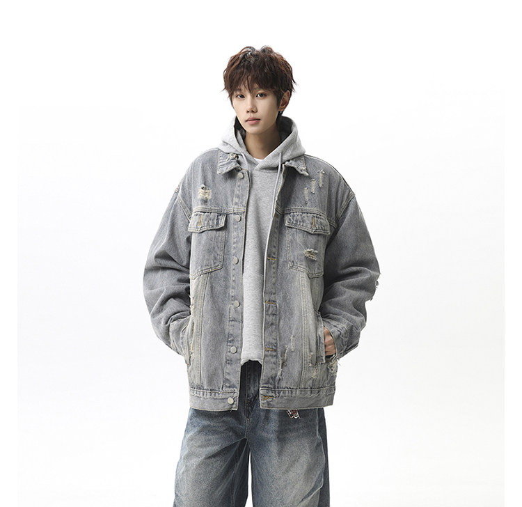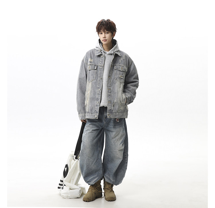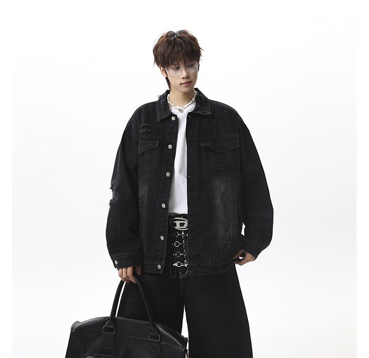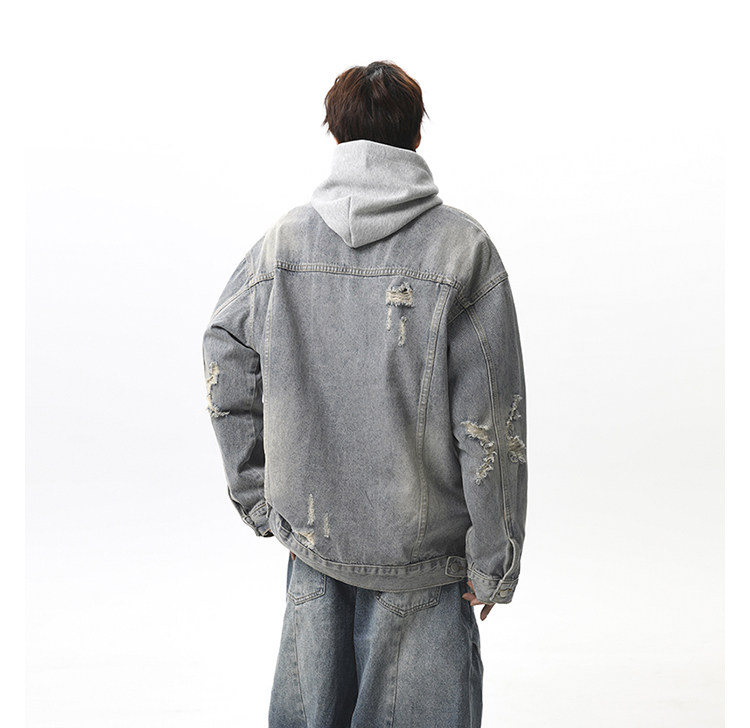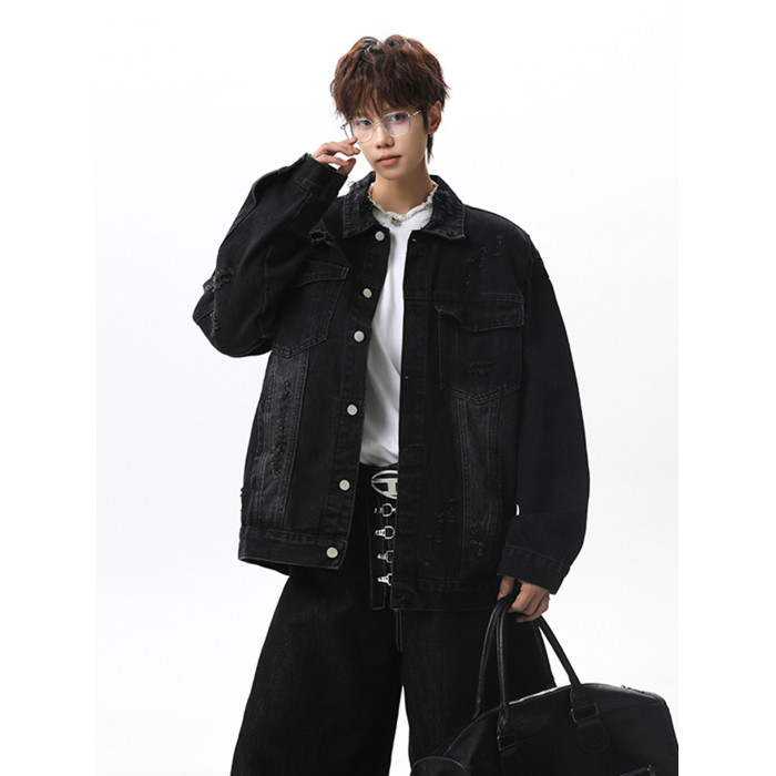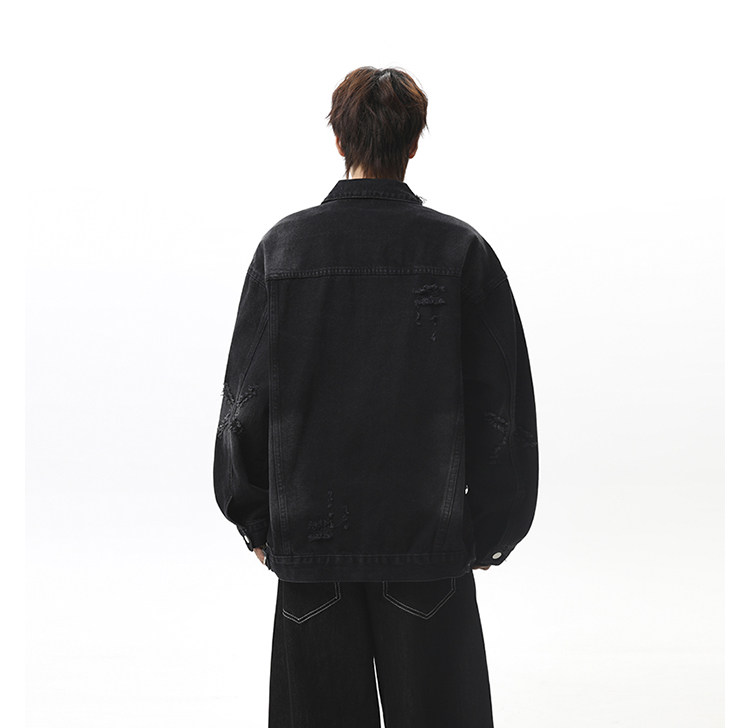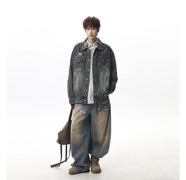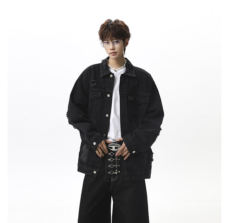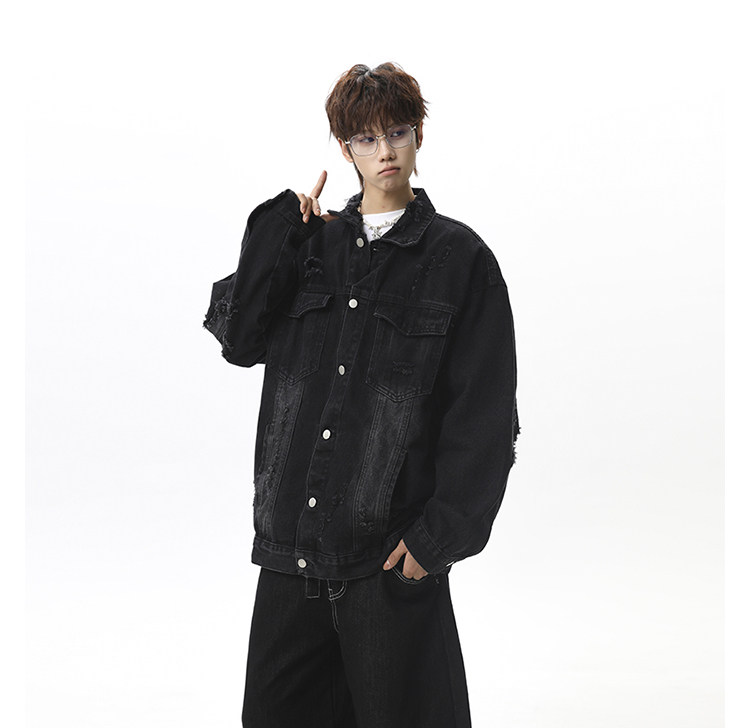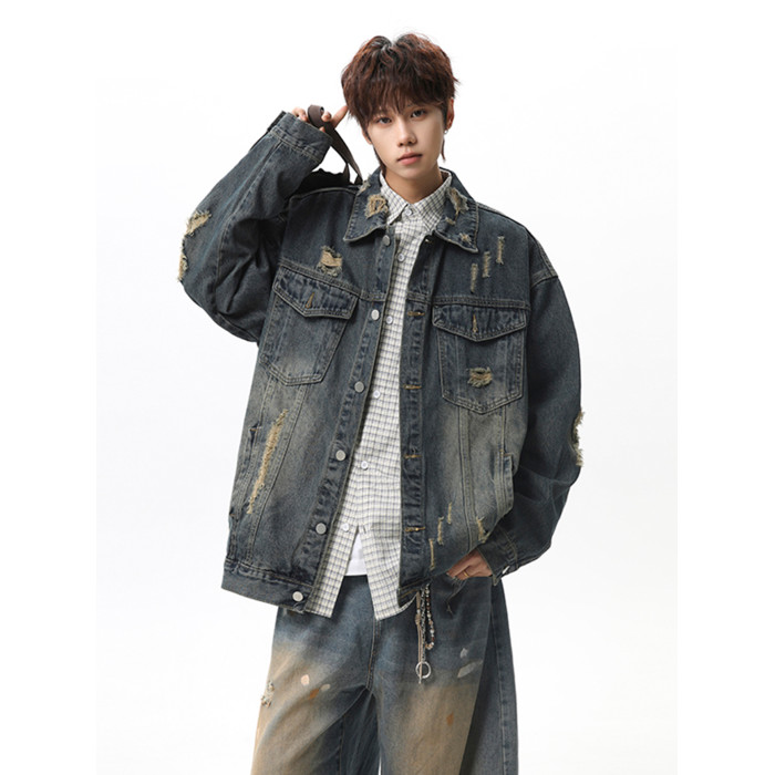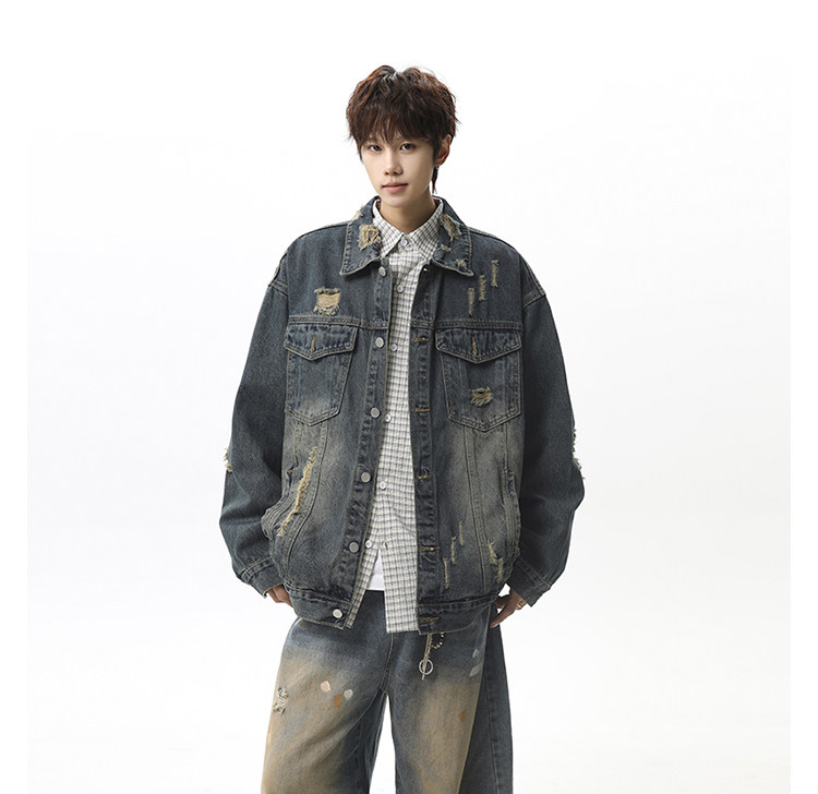 美式水洗破洞牛仔外套男春高街痞帥vibe外套復古設計感青少年夾克