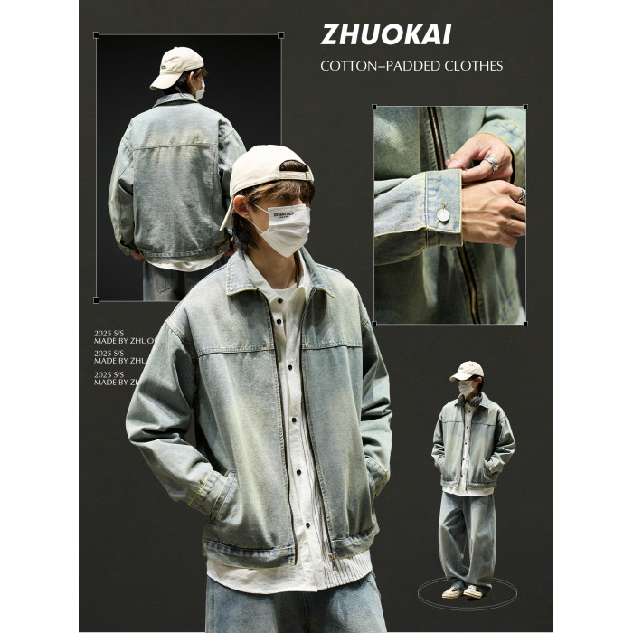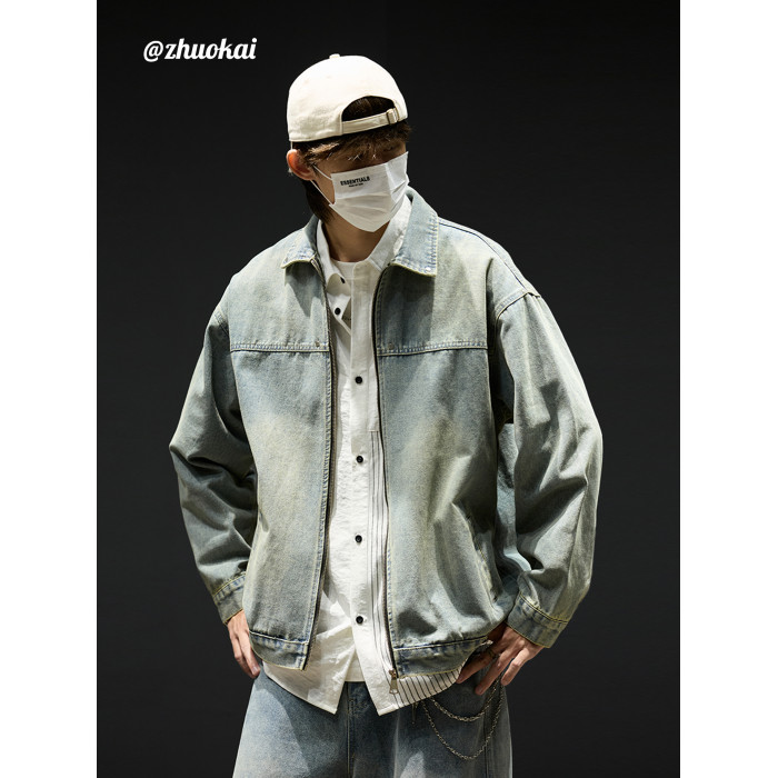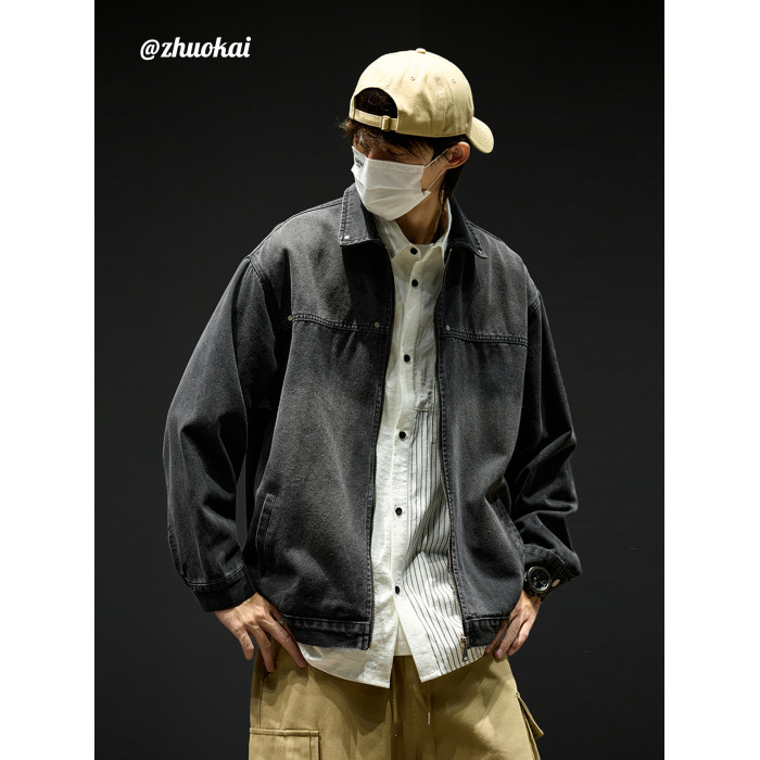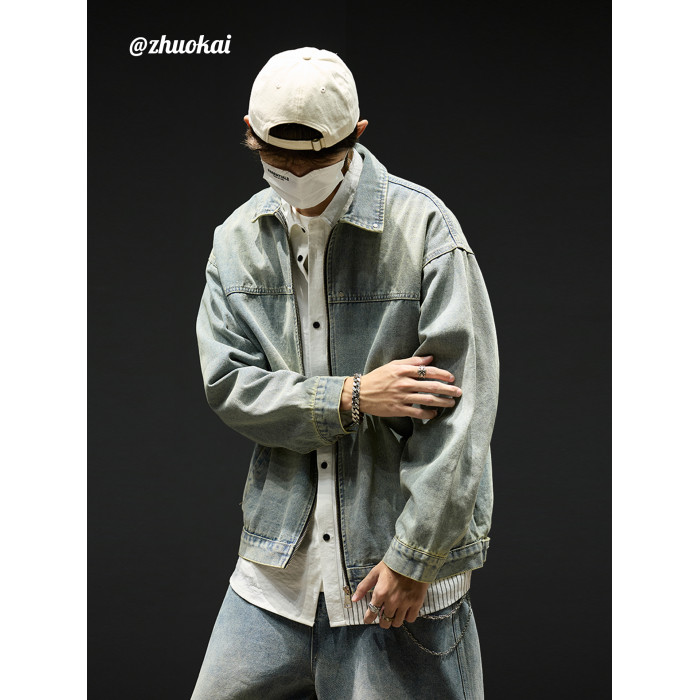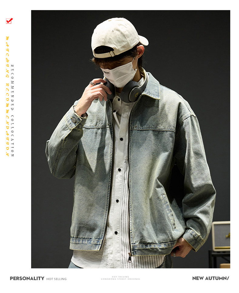 水洗牛仔外套男款秋季美式短款飛行員夾克男生工裝衣服痞帥潮男裝