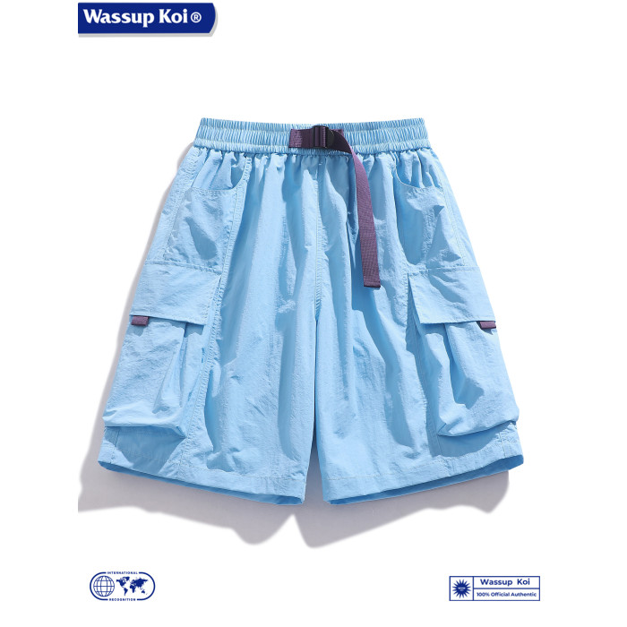 WASSUP KOI聯名冰絲工裝短褲男夏季多巴胺沙灘短褲薄款休閒五分褲