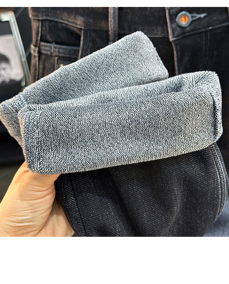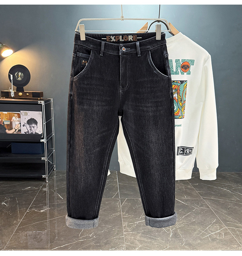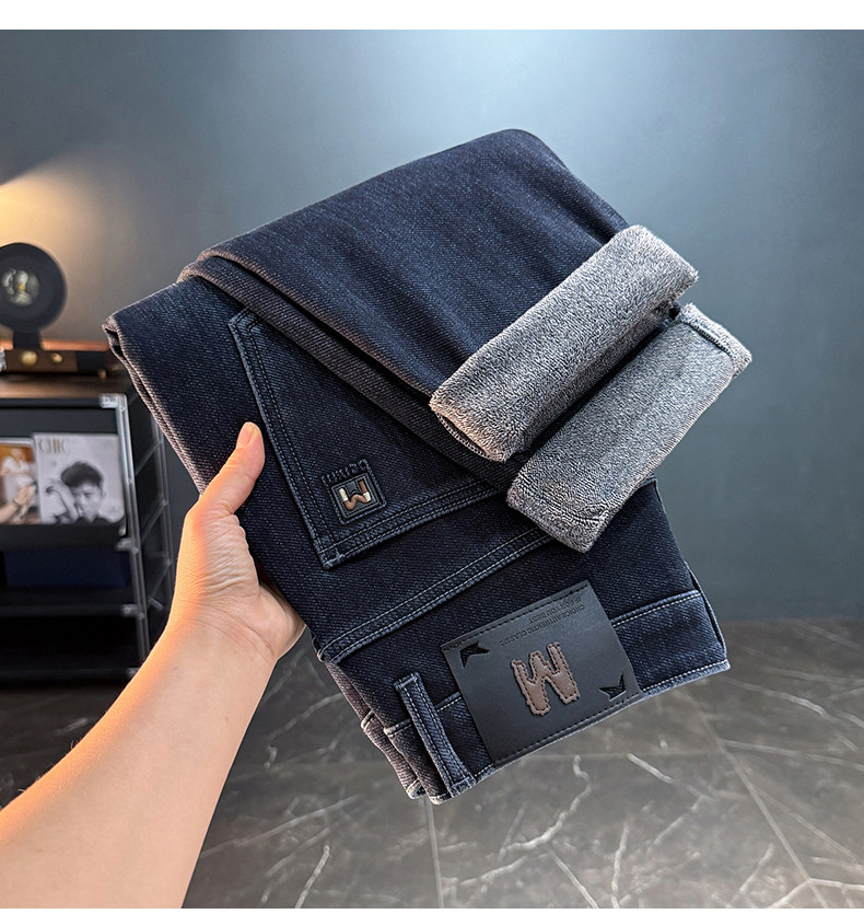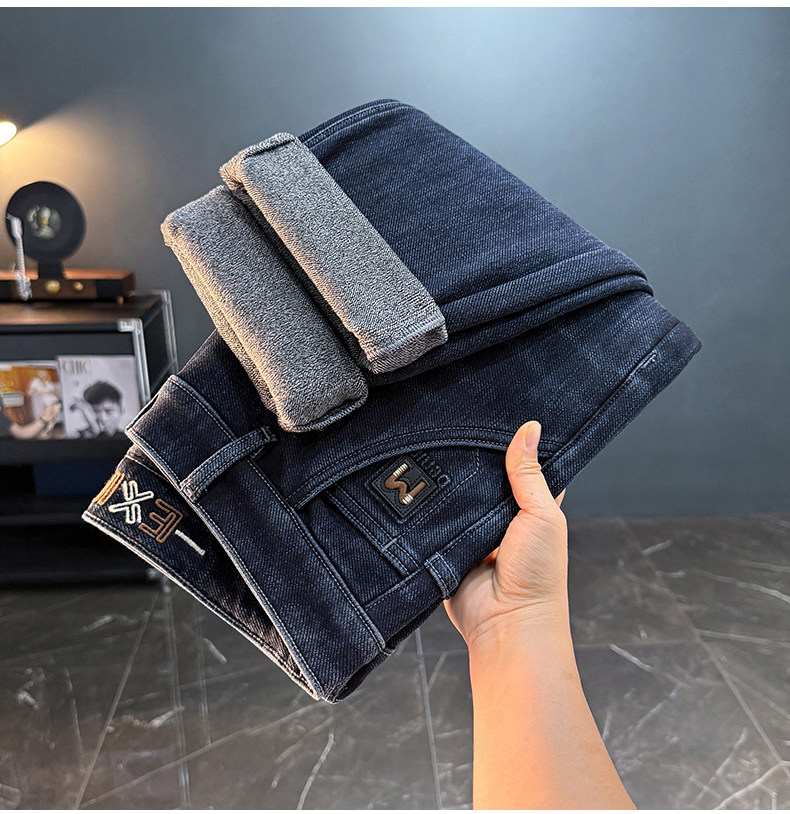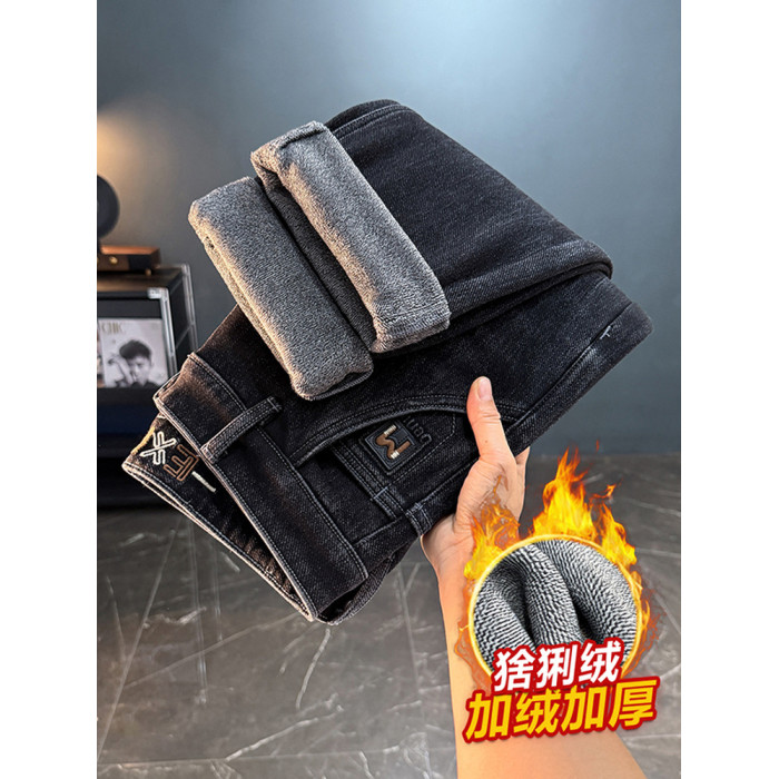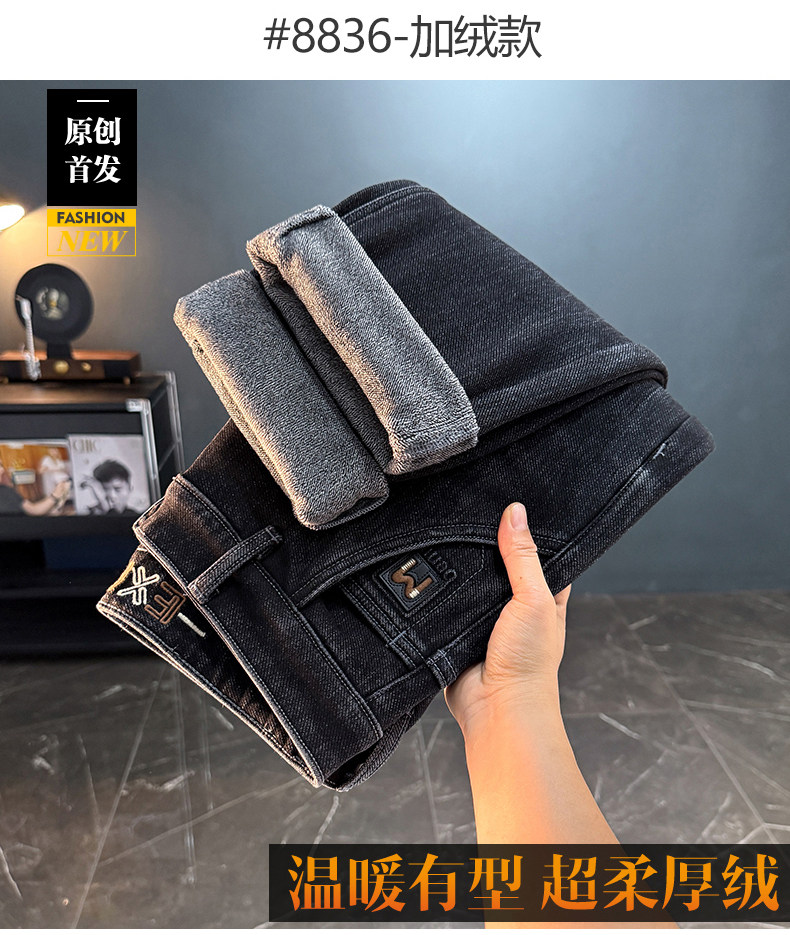 秋冬加絨加厚男士牛仔褲高彈力水洗直筒褲休閒百搭男款長褲子8836