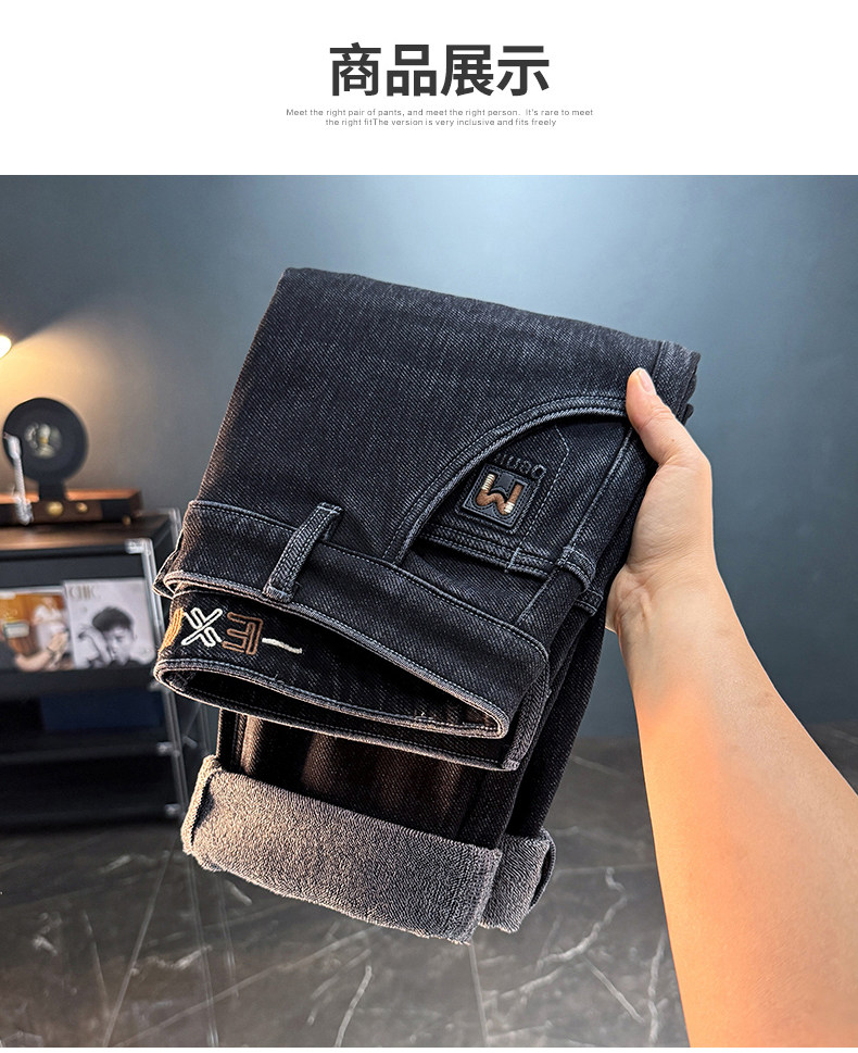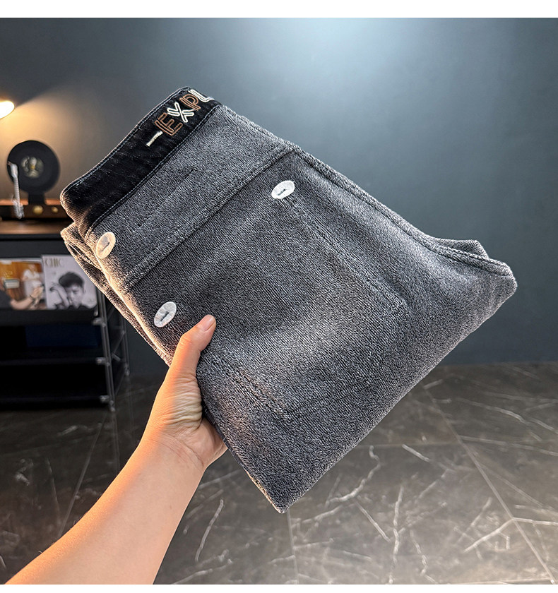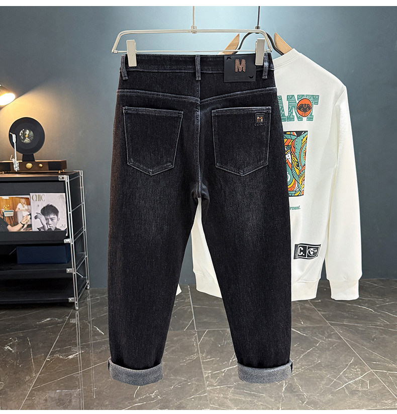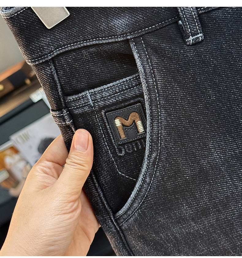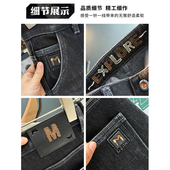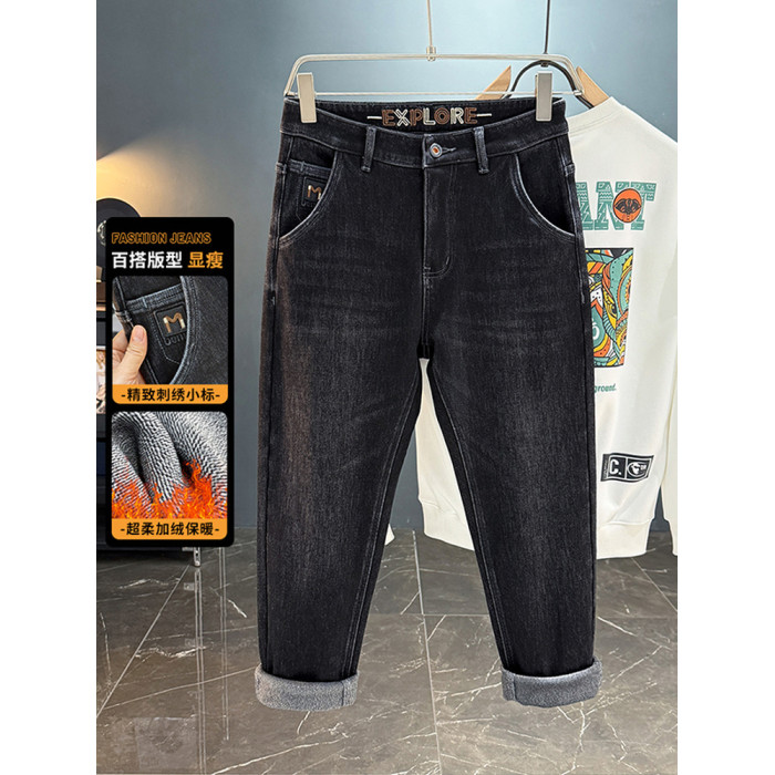 秋冬加絨加厚男士牛仔褲高彈力水洗直筒褲休閒百搭男款長褲子8836