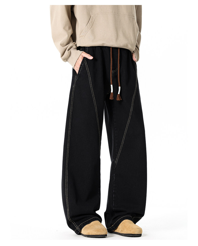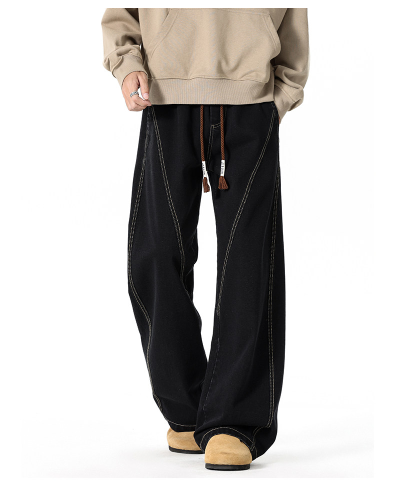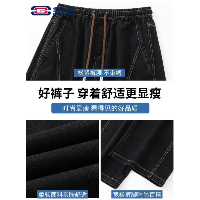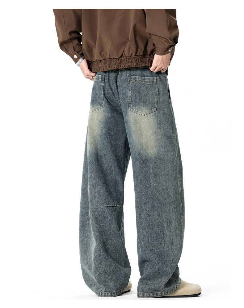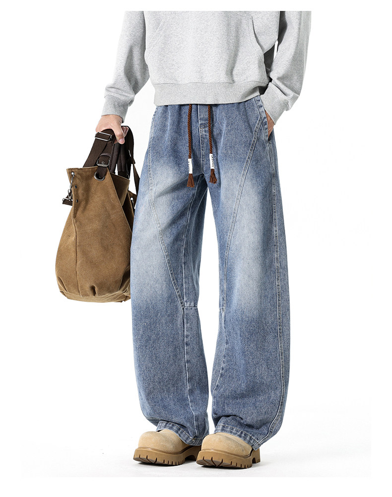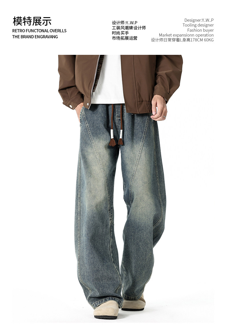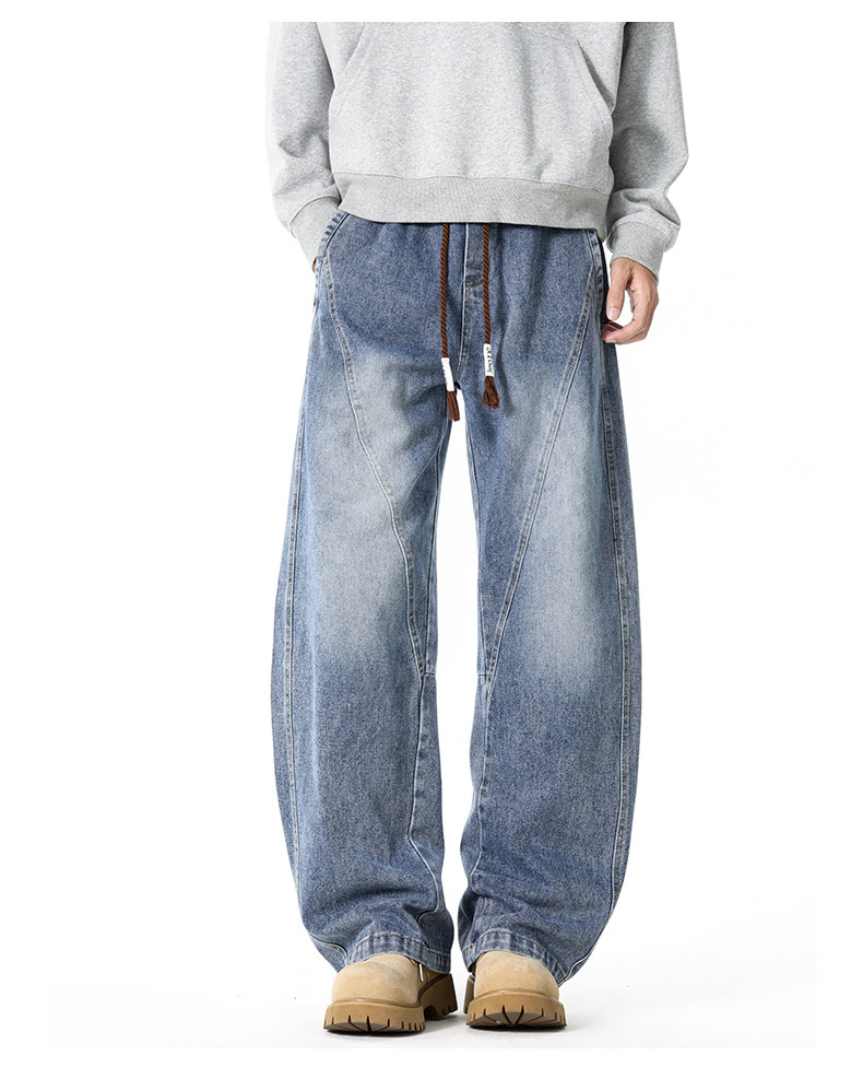 GENIOLAMODE復古水洗濶腿牛仔褲男士秋冬新款美式風寬鬆彎刀長褲