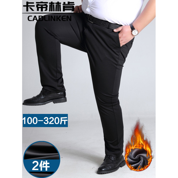 褲子男西褲商務寬鬆直筒秋季秋冬加絨加厚加肥加大碼胖子休閒長褲